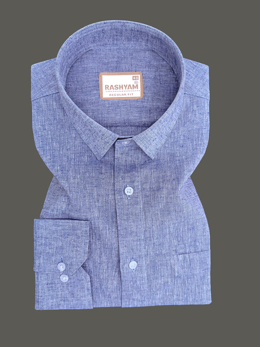Velmora Luxurious Linen Cotton Soft Denim Blue Formal Shirt For Men