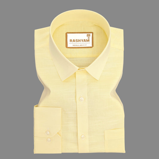 Luxurious Italian Linen Cotton Creamy Yellow With Flower Printed Shirt