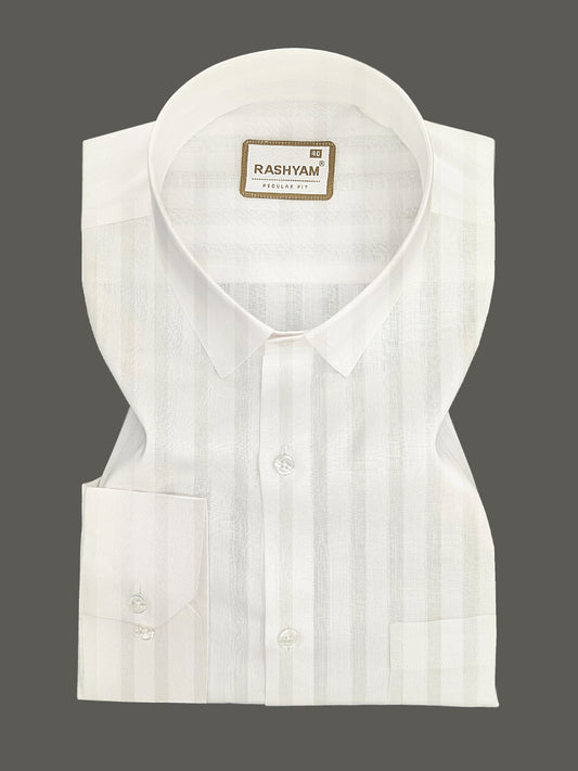 Arezzo Italian Premium Linen Thistle Green Line On White Formal Shirt For Men
