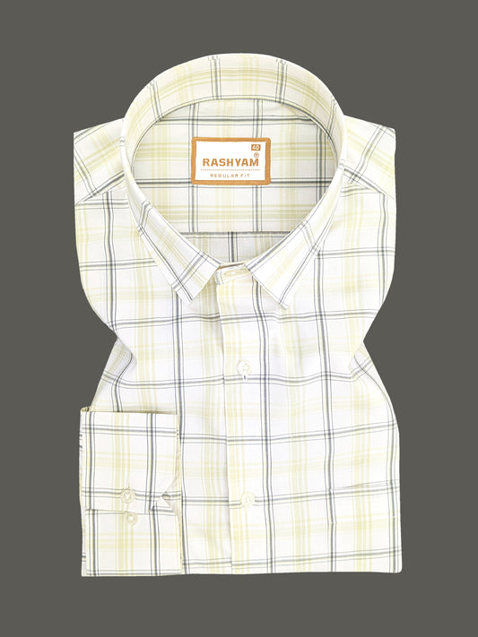 Faenza Premium Cotton Black And White Checks On Butter Cream Formal Shirt For men
