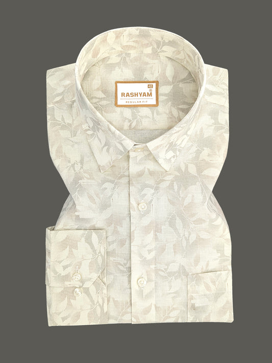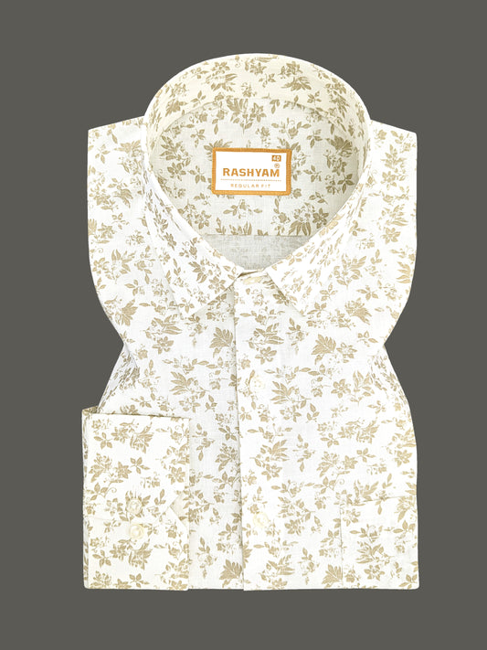 Pescara Italian Linen Cotton Creamy Elegant Foliage Printed Shirt