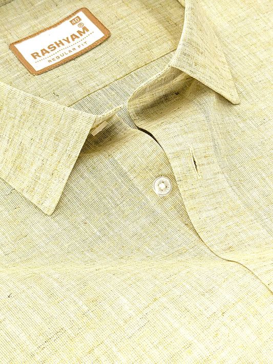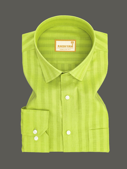 Positano Luxurious Linen Cotton Olivine Green With White Line Formal Shirt