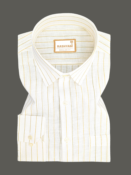 Beige And White Narrow Stripes On White Premium Linen Shirt