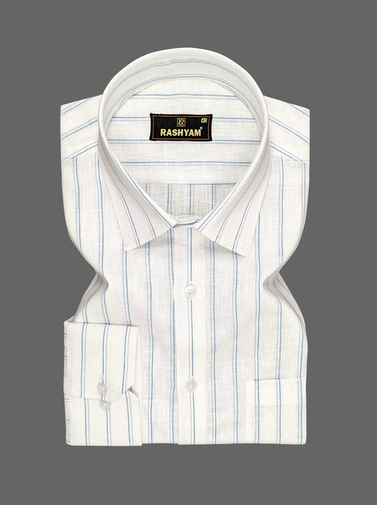 Bright White With Blue Line Luxurious Italian Linen Cotton Shirt