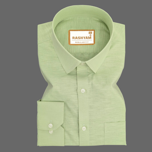 Marzeno Luxurious Linen Cotton Leaf Green Formal Shirt For Men