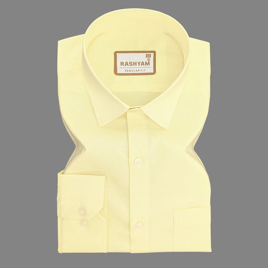 Rashyam Premium Cotton Light Lemon Yellow Plain Formal Shirt for Men