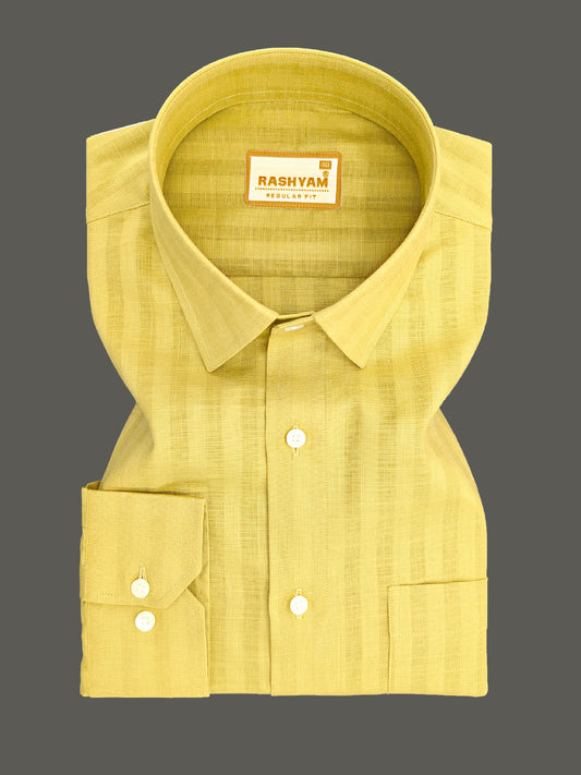 Premium Linen Cotton Greyish Line On Yellow Formal Shirt For Men