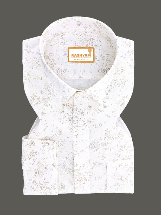 Premium Linen Cotton Micro Dot Abstract Print on Milky Cream Shirt For Men