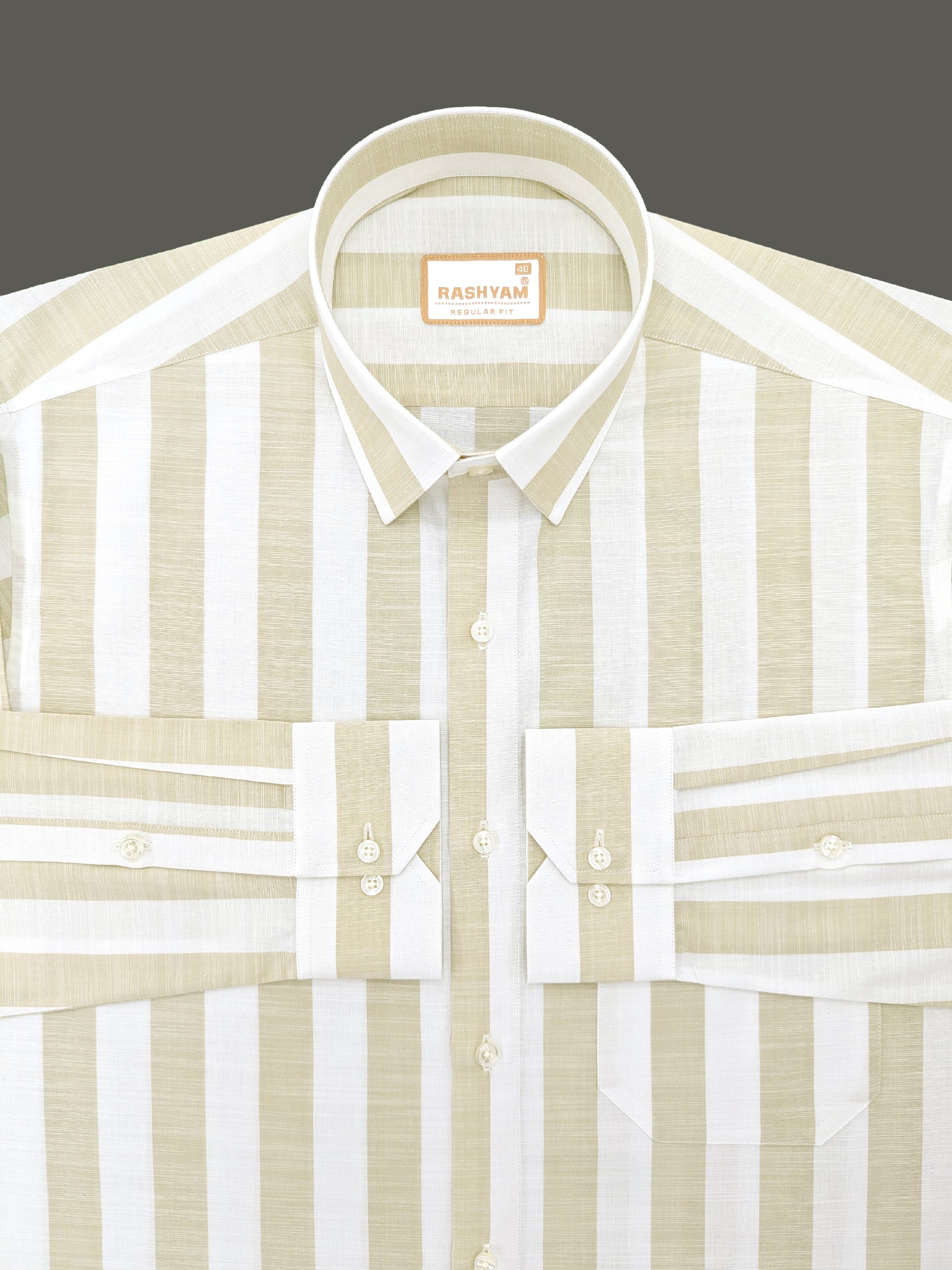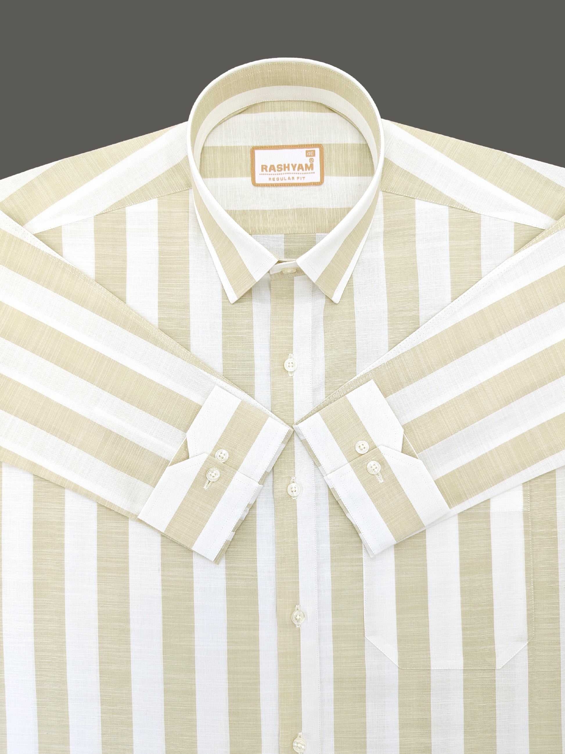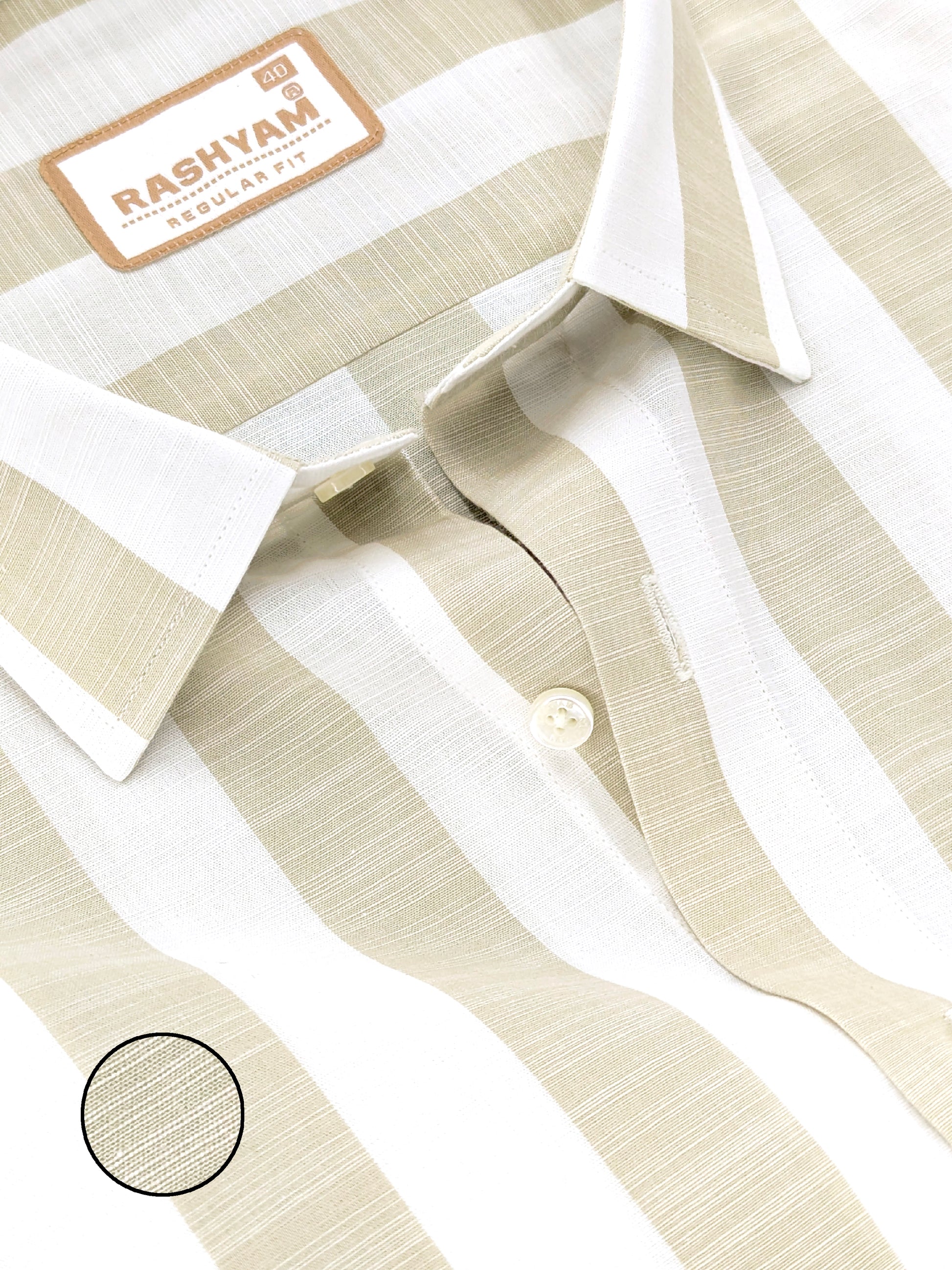 Positano Luxurious Linen Cotton Soft Almond Stripe Formal Shirt