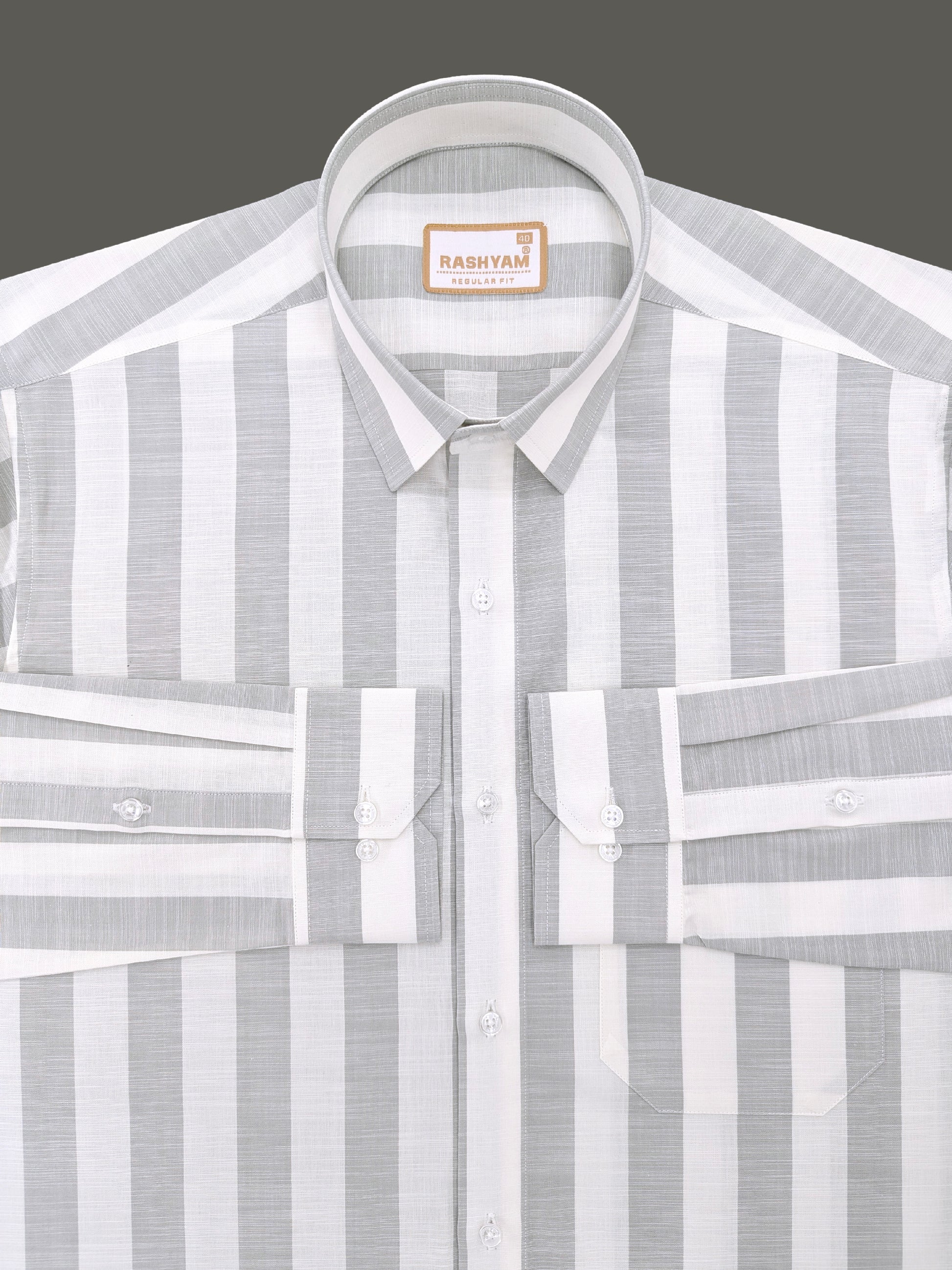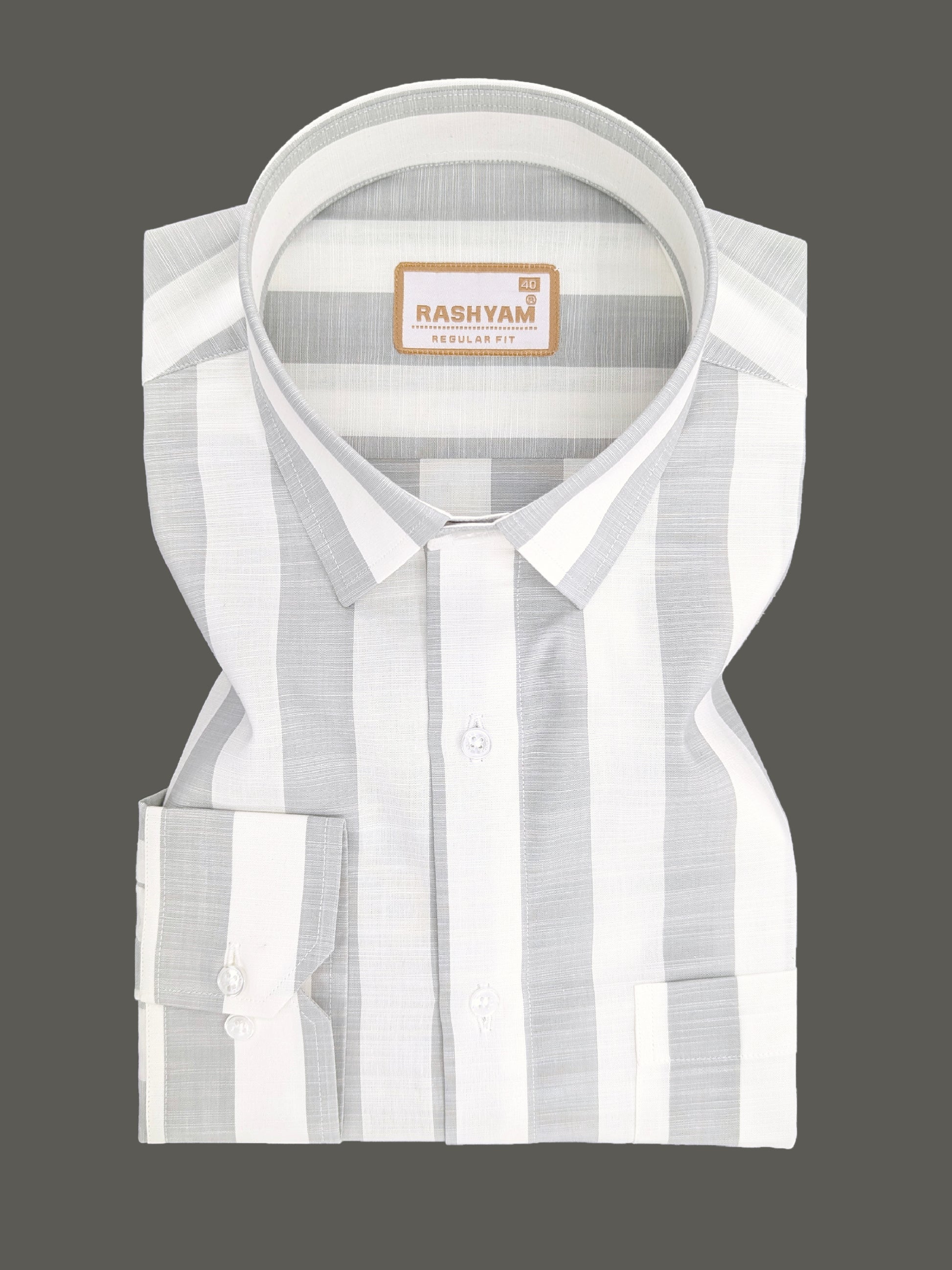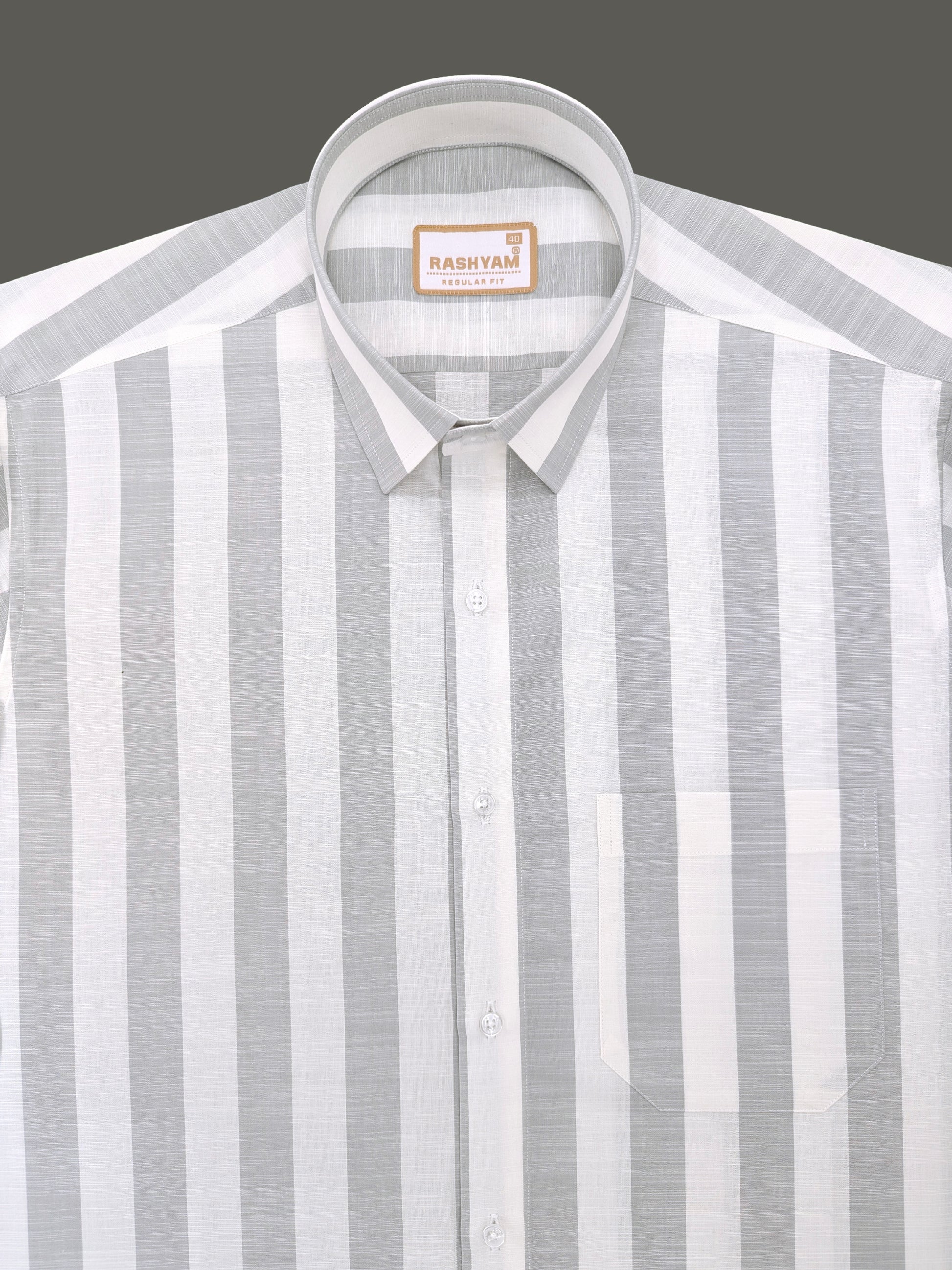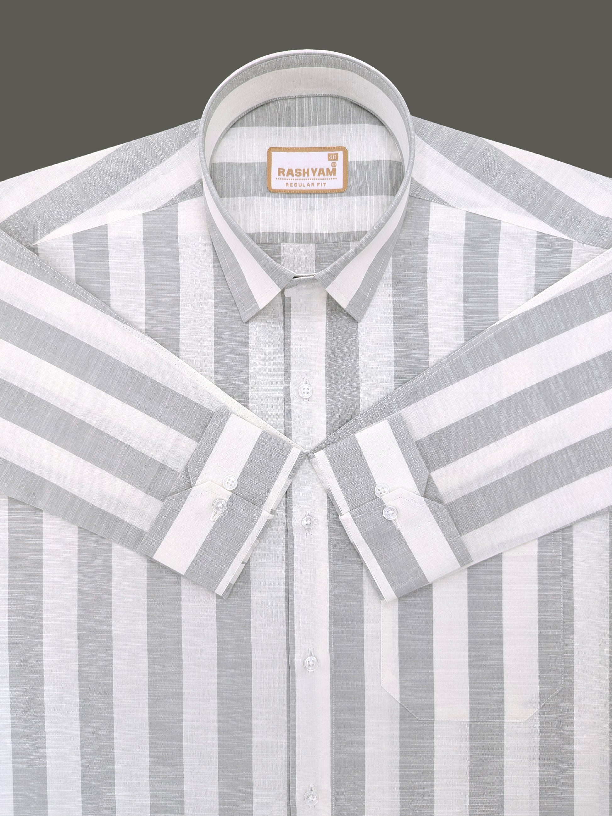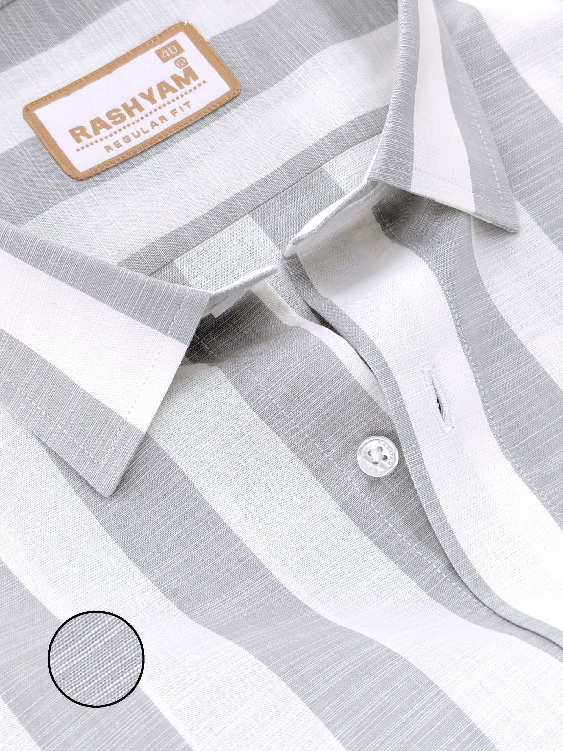 Abruzzo Premium Linen Cotton Light Gray And White Stripes Formal Shirt