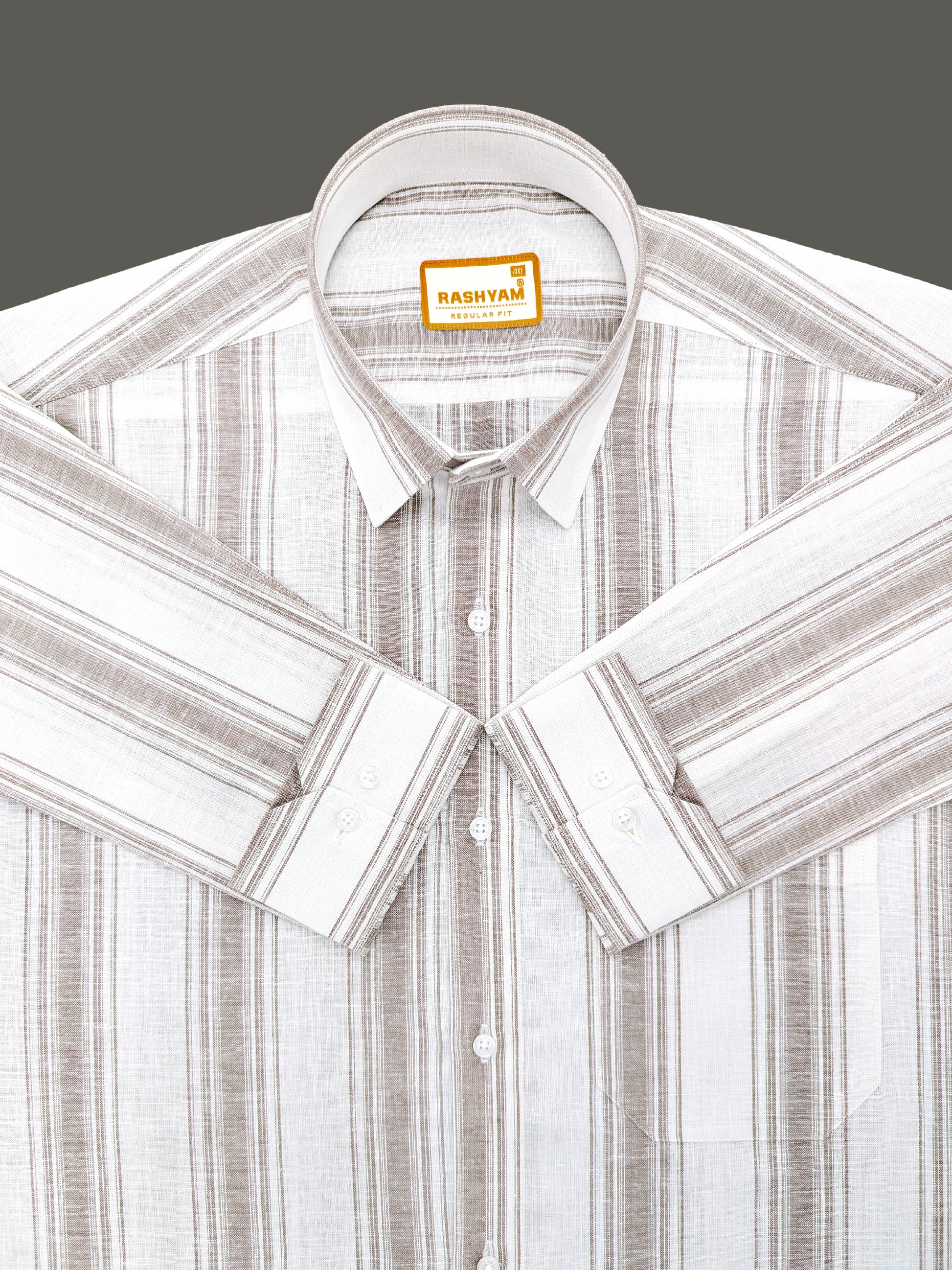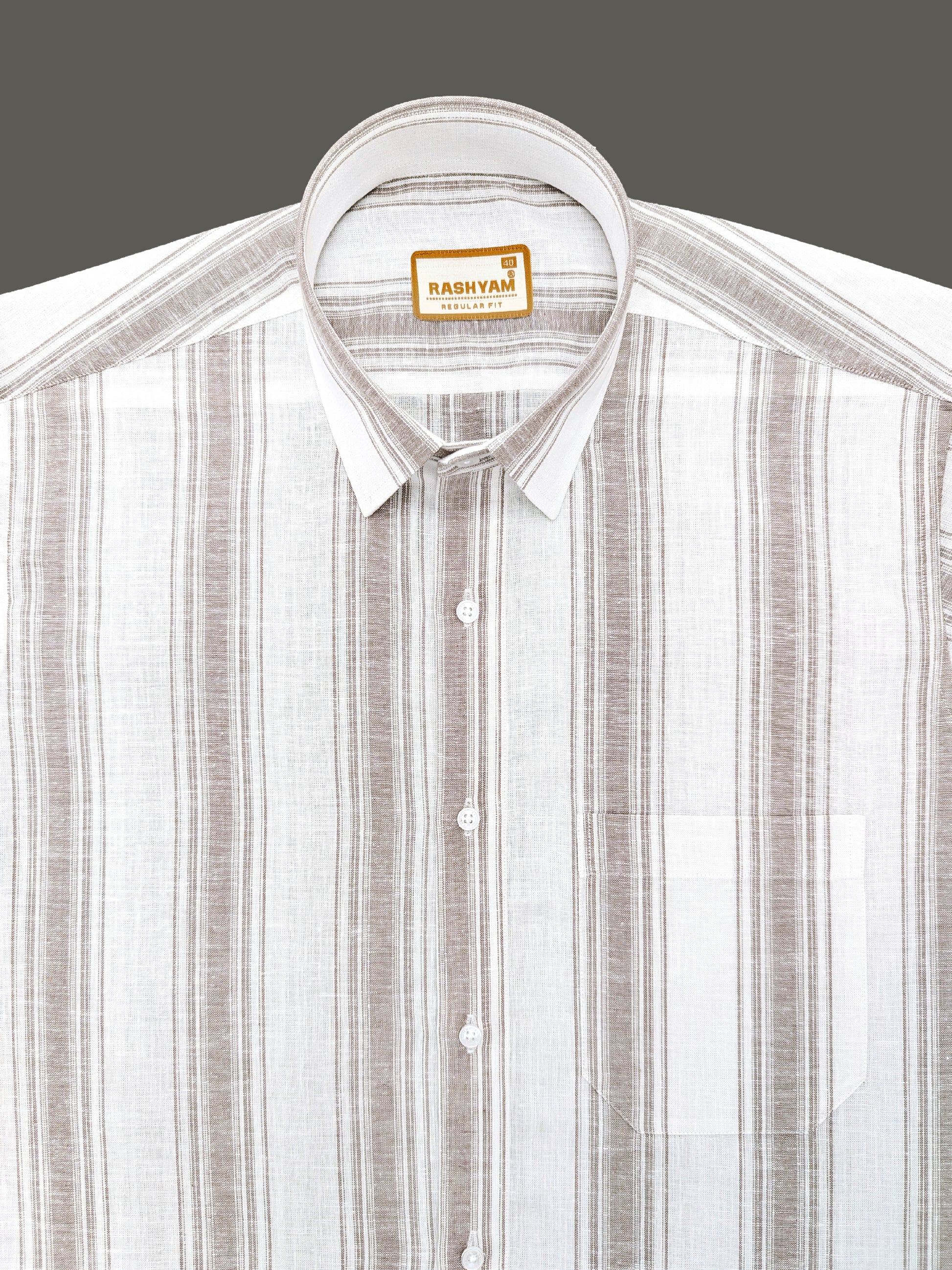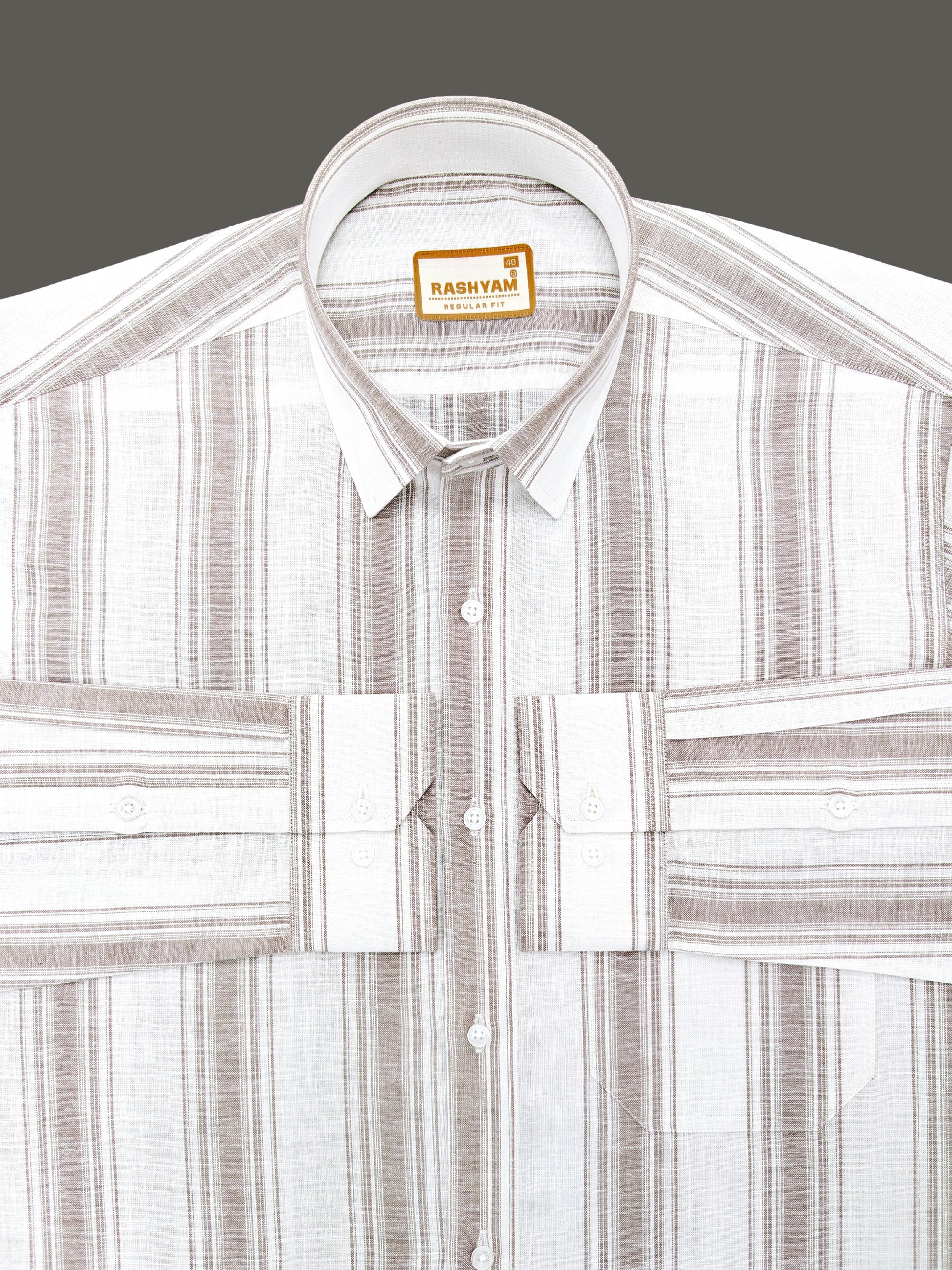 Rashyam Genoa Premium Linen Cotton Brown Classic Stripe Formal Shirt