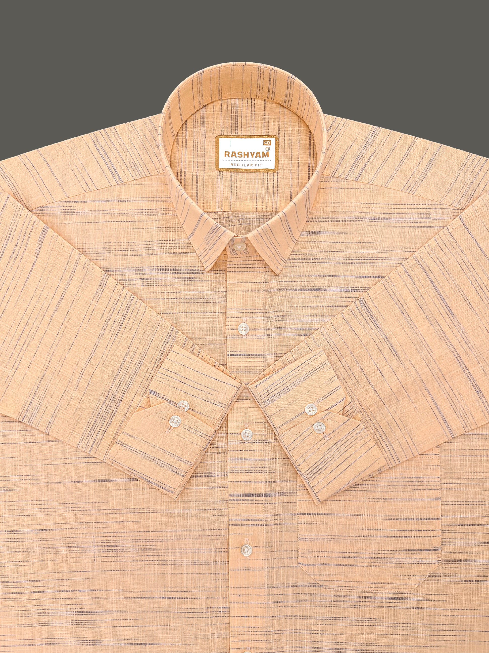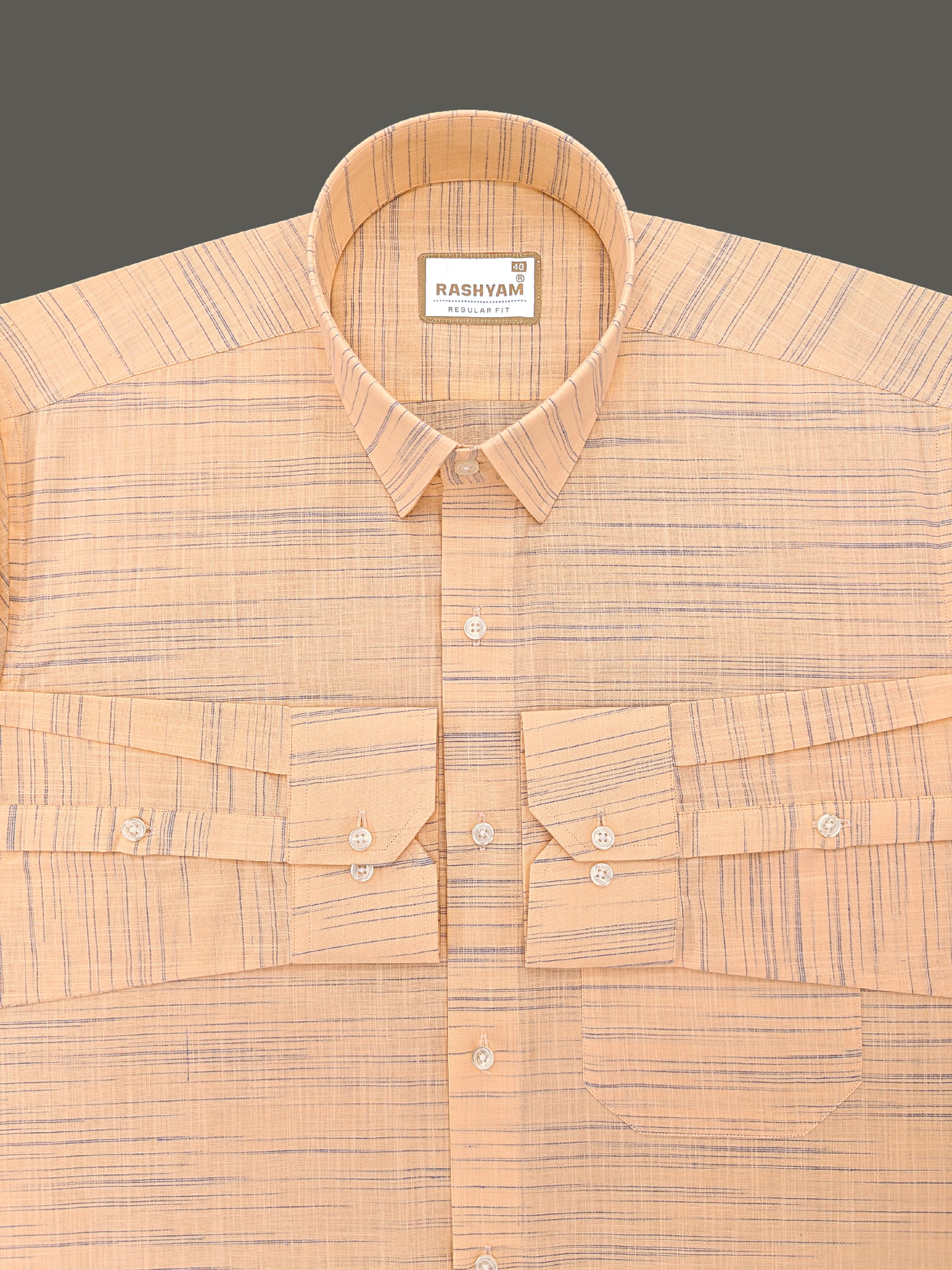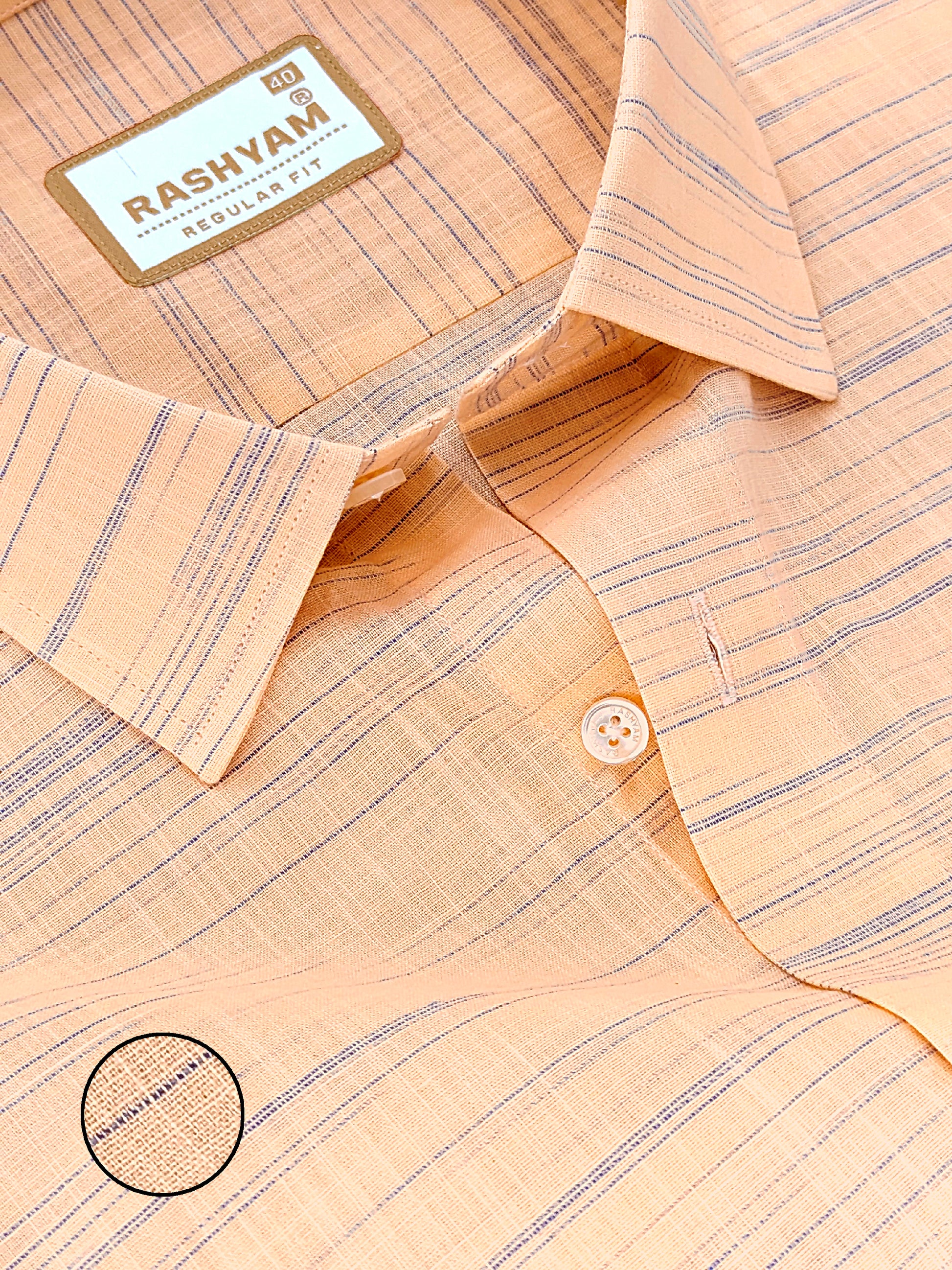 Premium Linen Cotton Bluish Light Line On Cream Shirt For Men