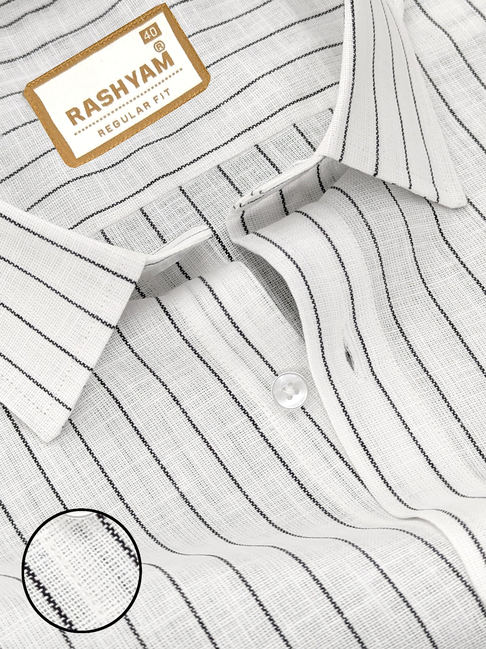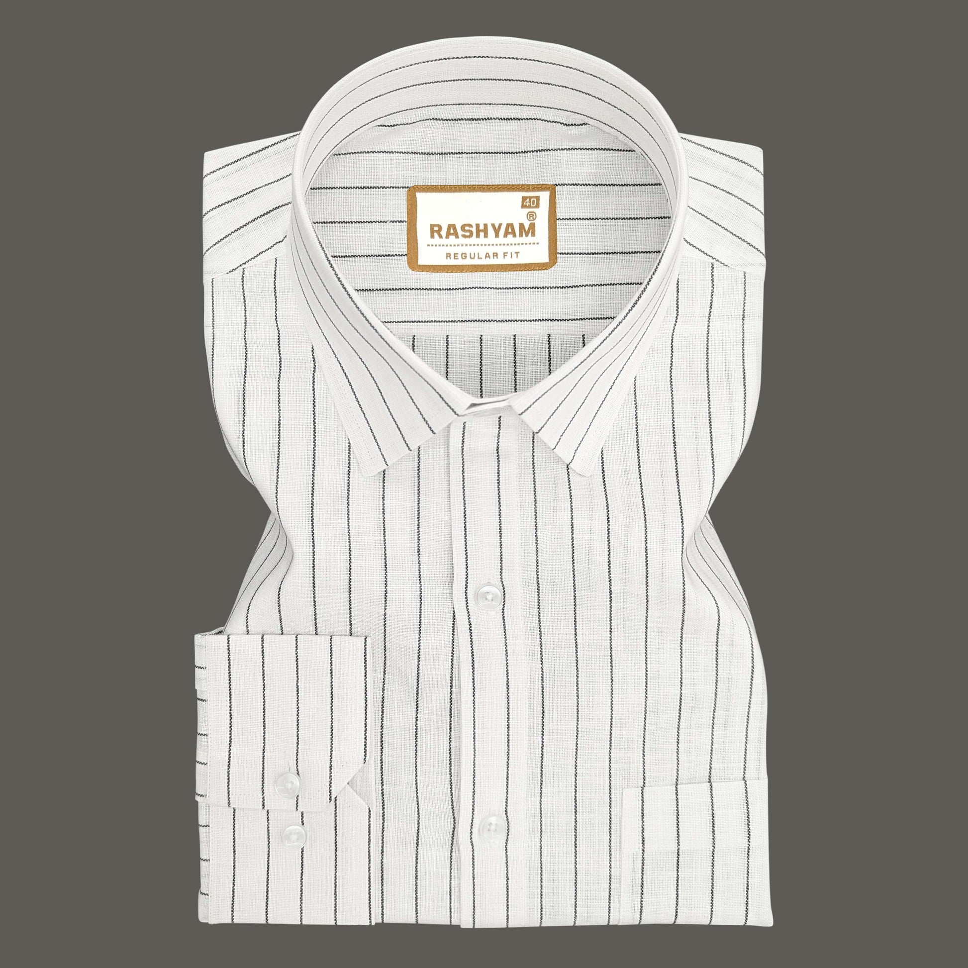 Premium Linen Cotton Bluish Light Line On Cream Shirt For Men