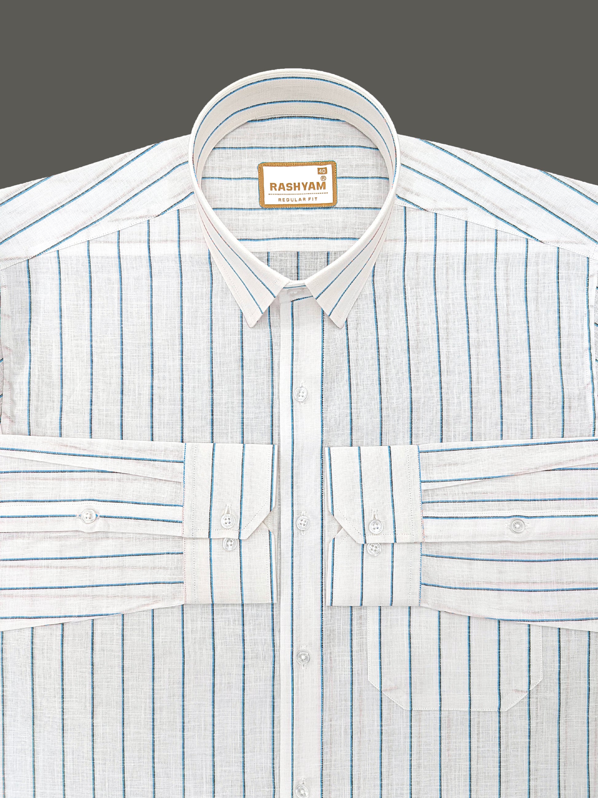 Premium Linen Cotton Bluish Light Line On Cream Shirt For Men