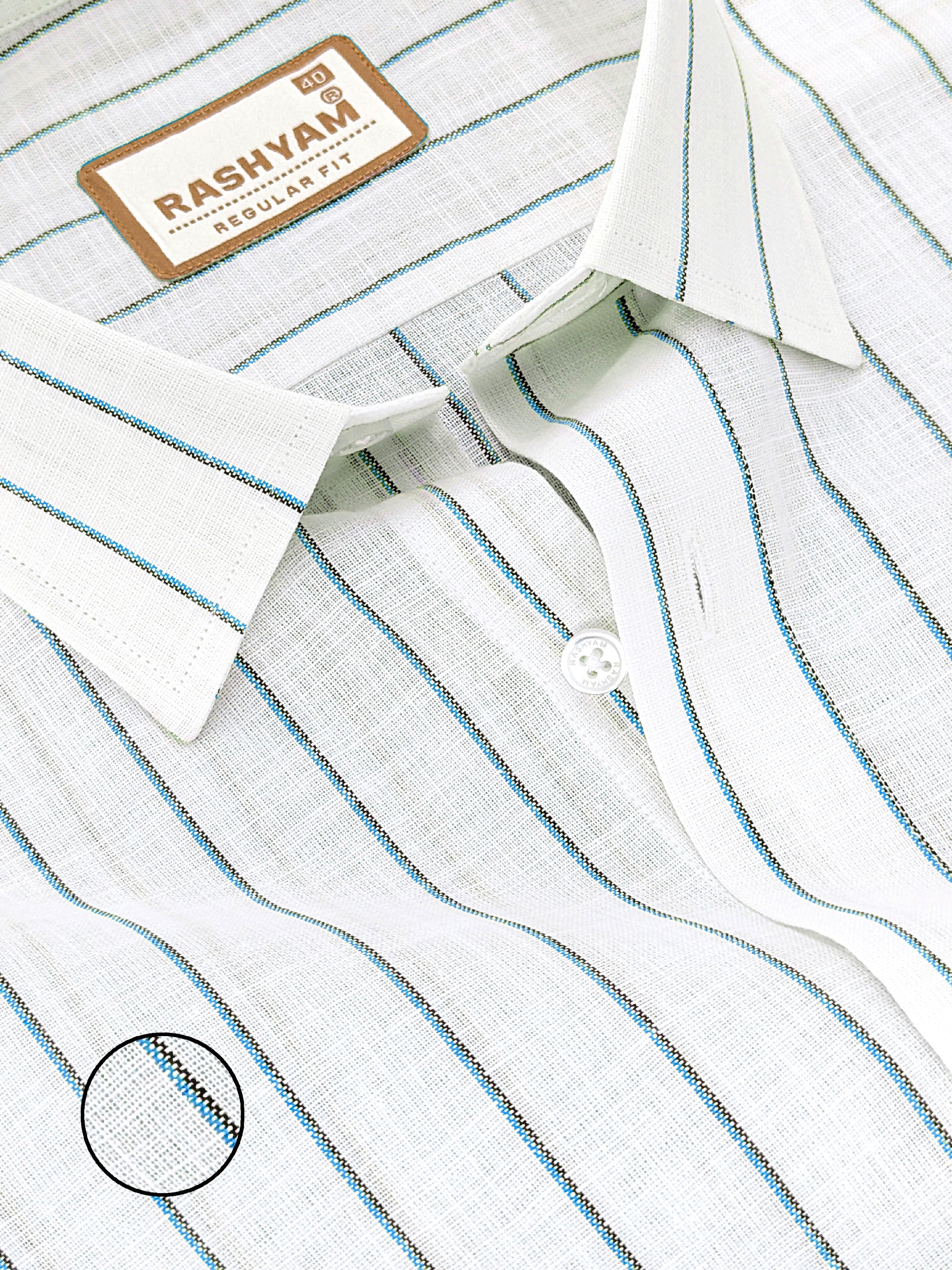 Positano Luxurious Linen Cotton Yellow Green Sky Blue Stripes On White Formal Shirt