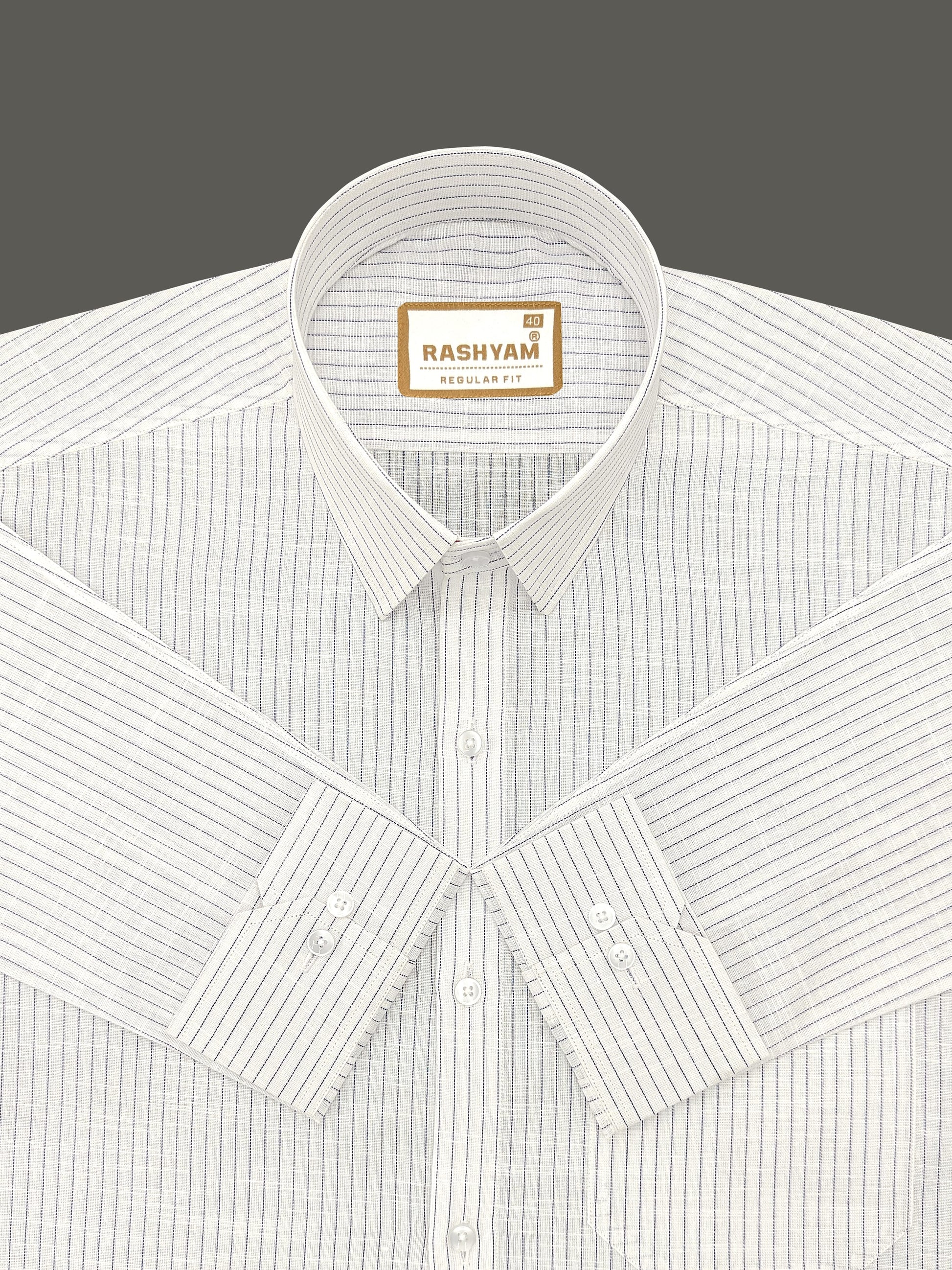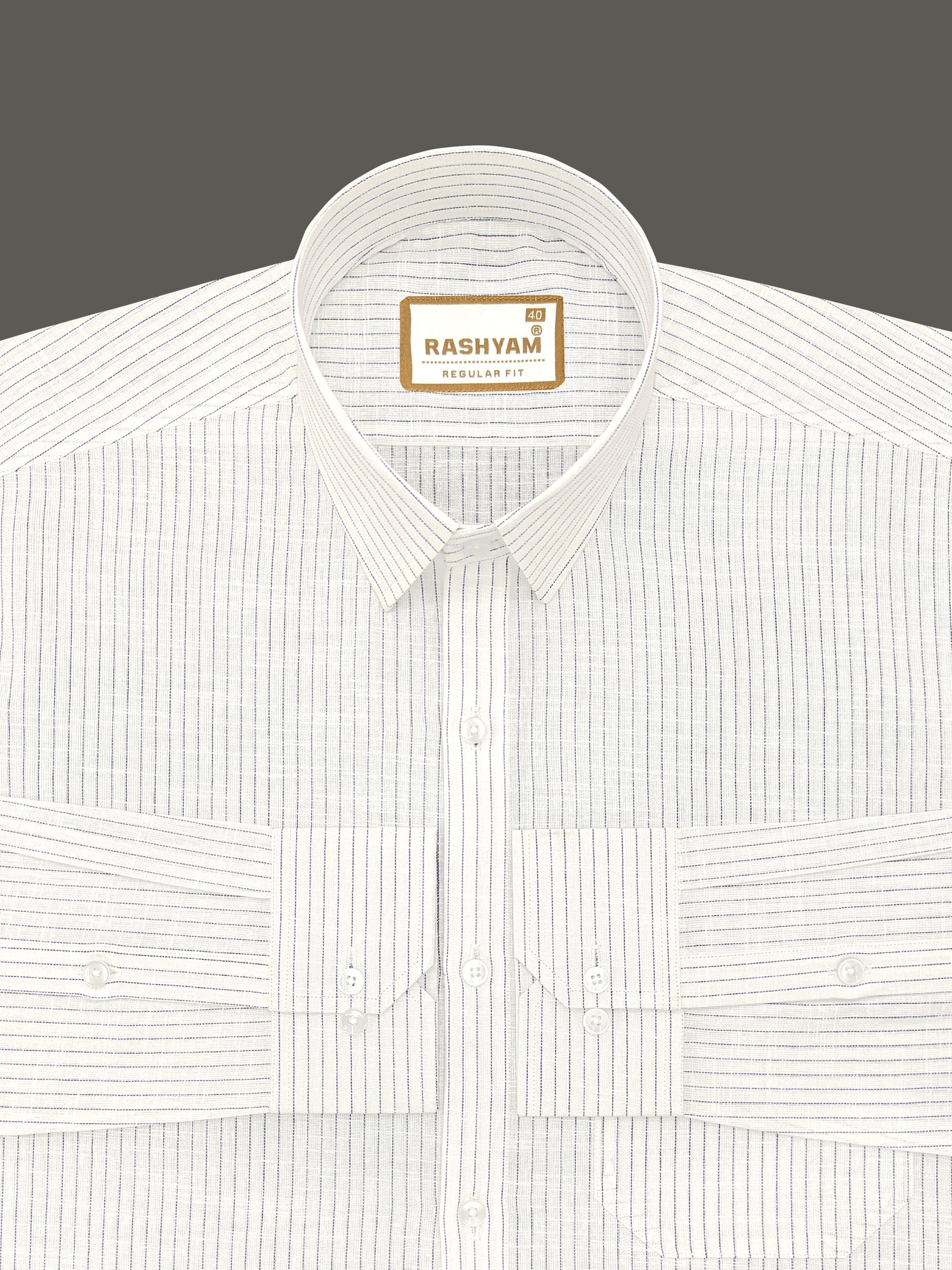 Premium Linen Cotton Bluish Light Line On Cream Shirt For Men