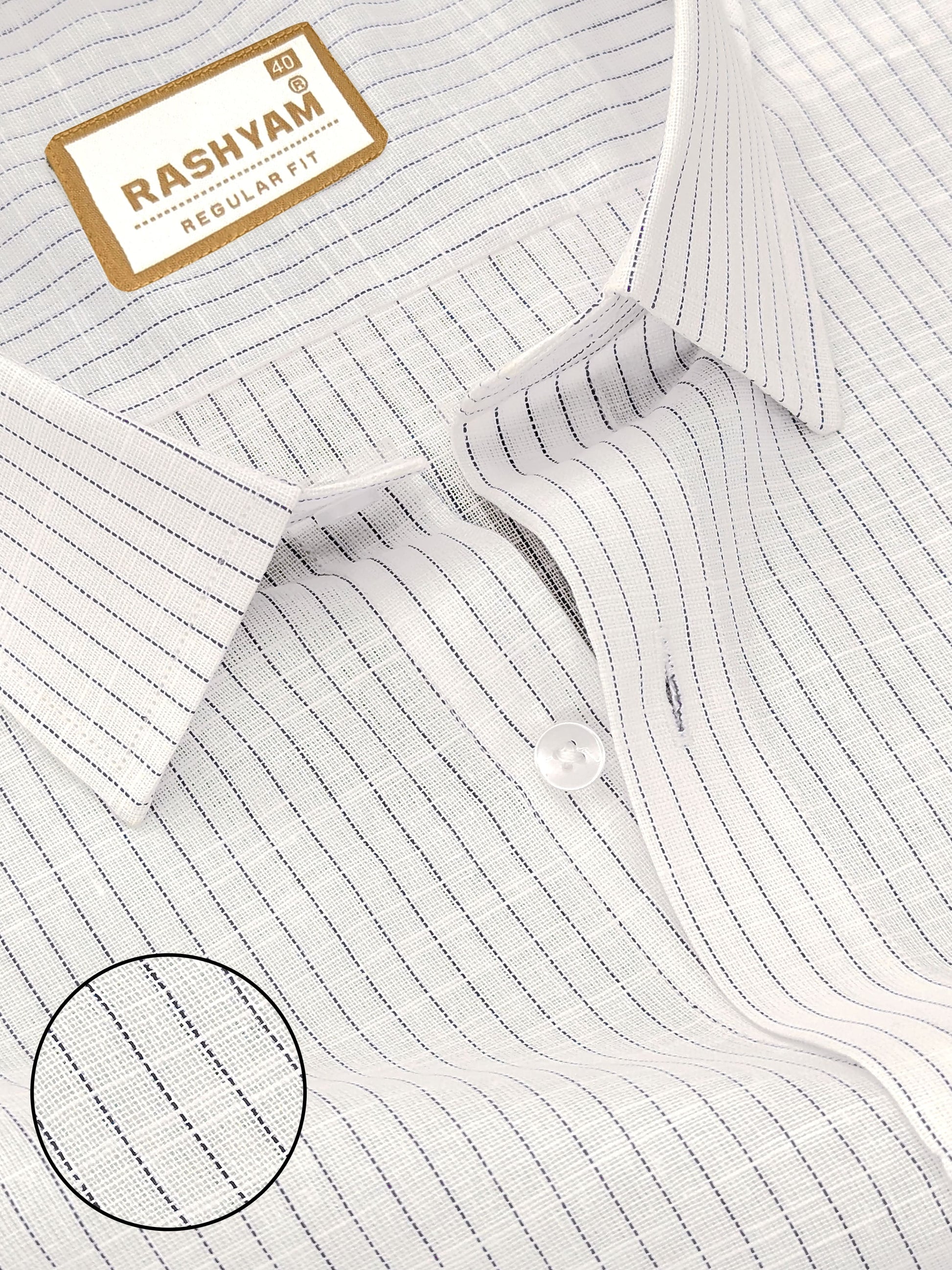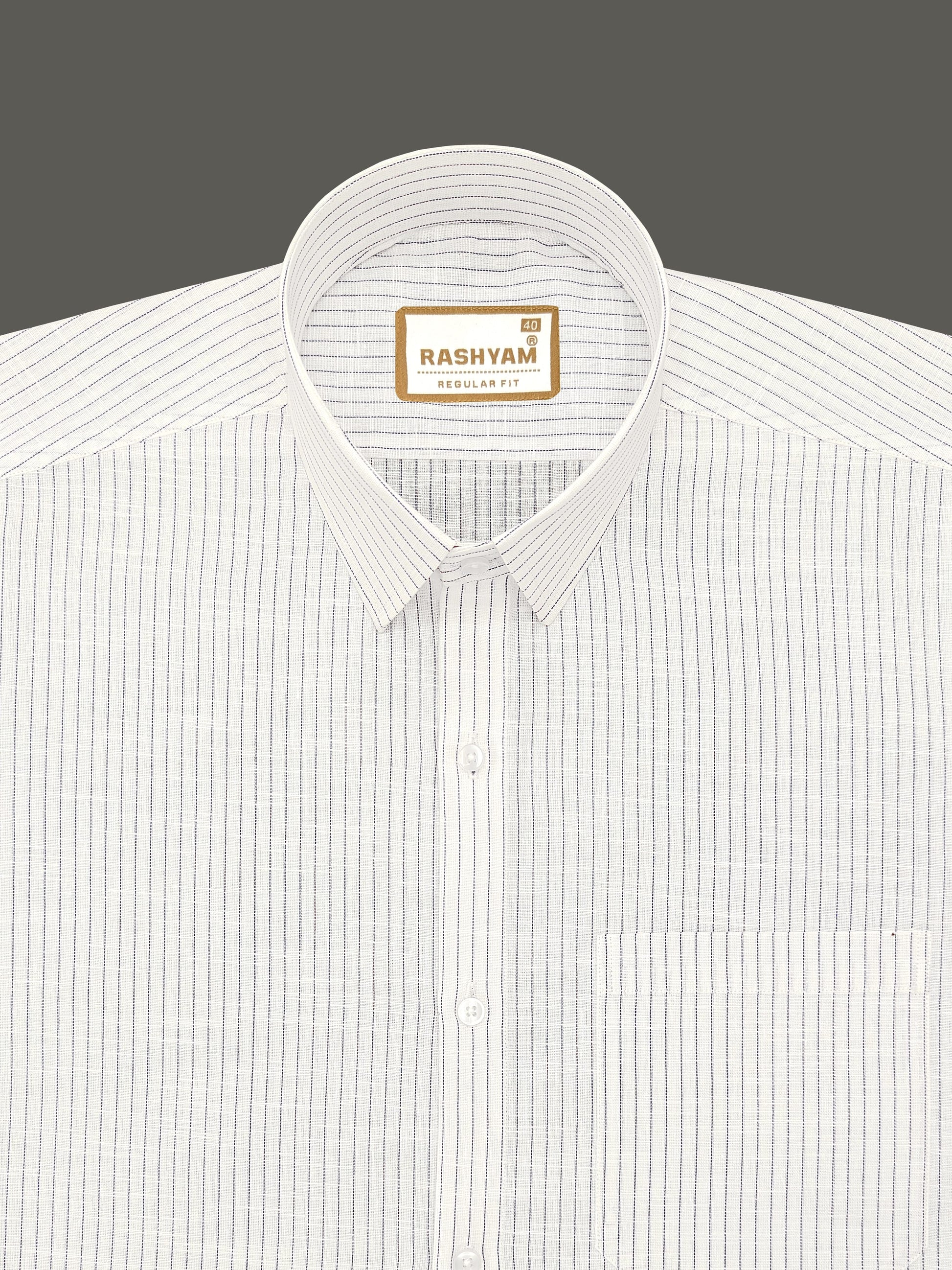 Arezzo Italian Premium Linen NavyBlue Multi Line On White Formal Shirt For Men