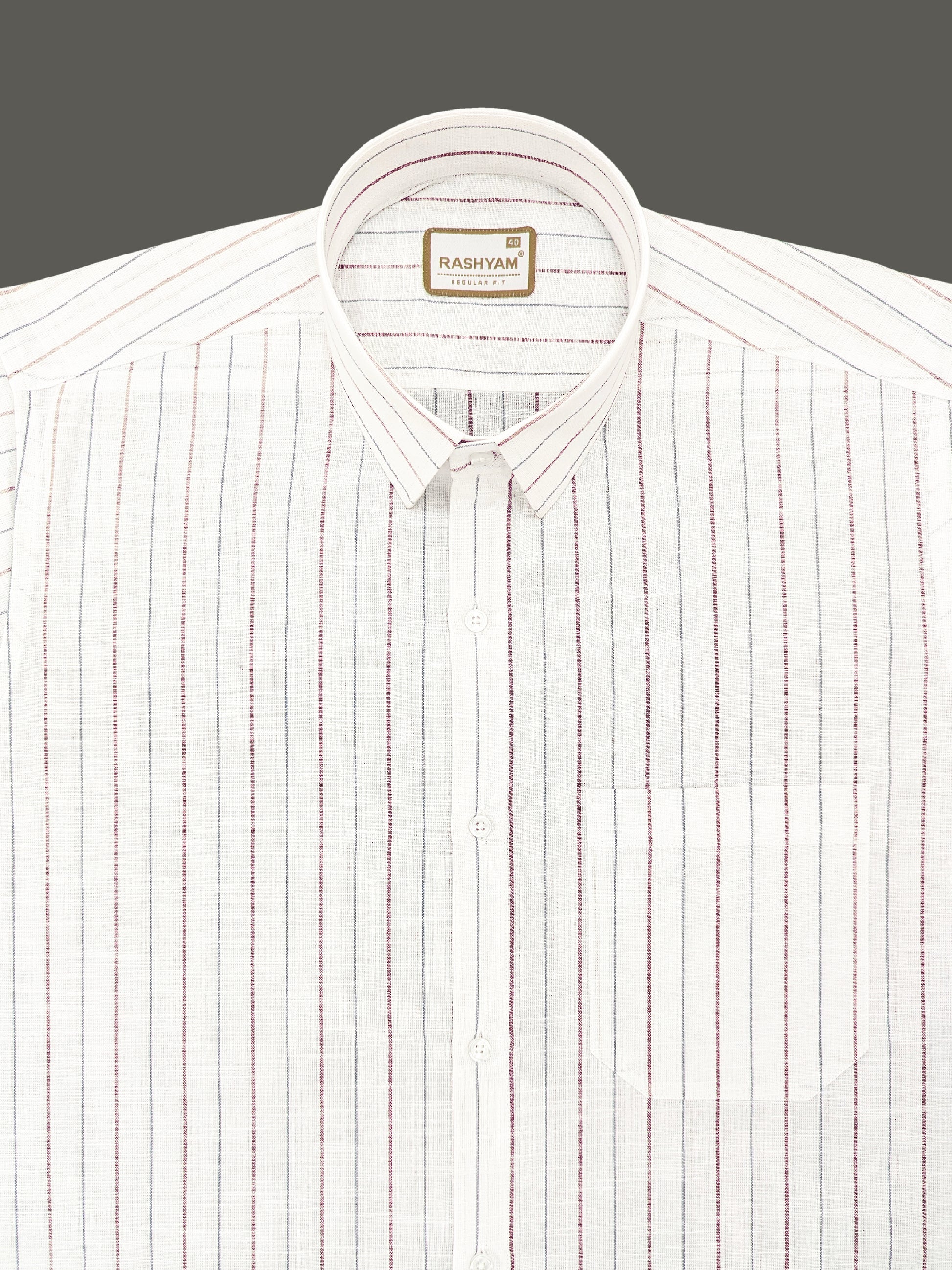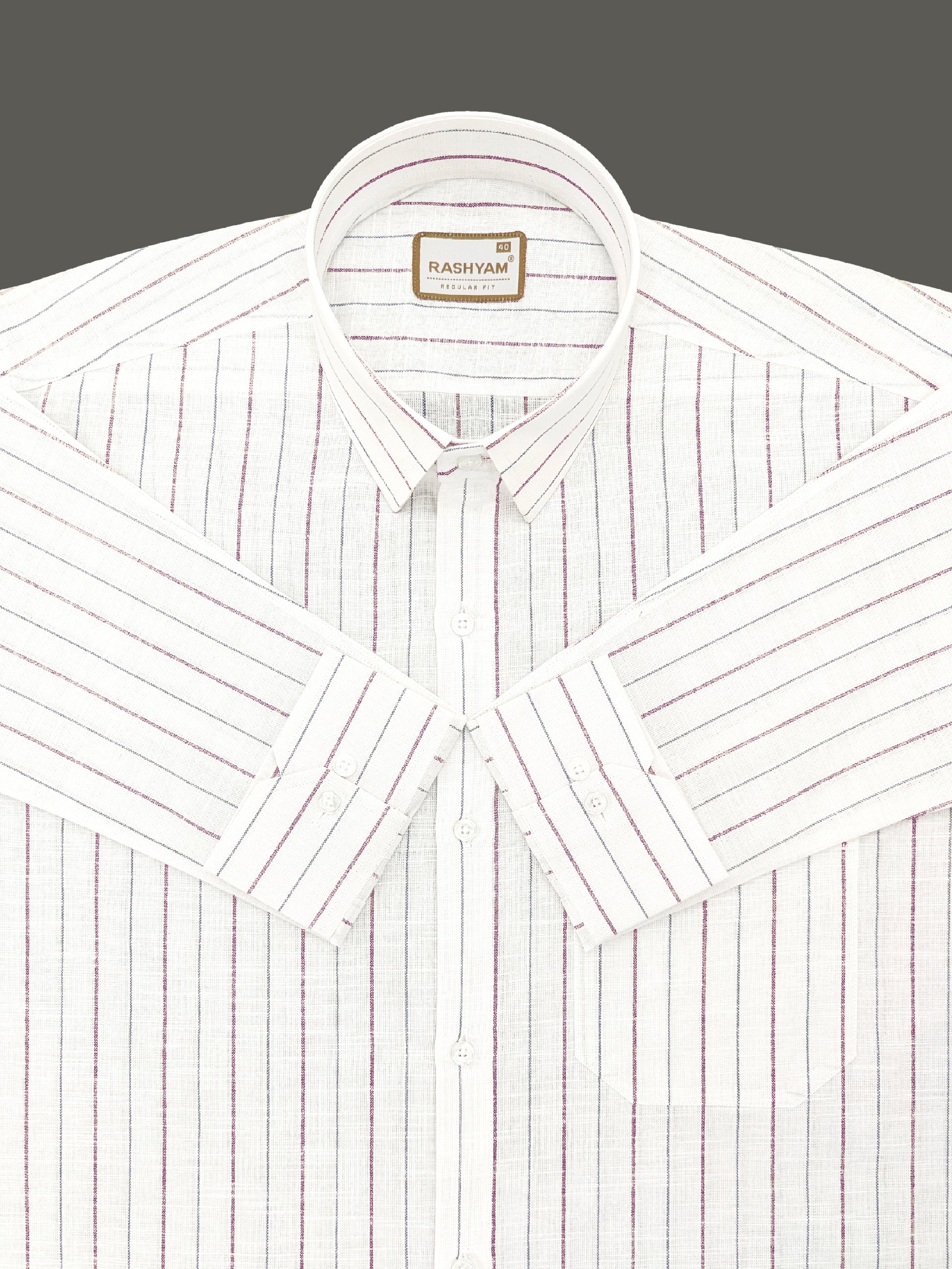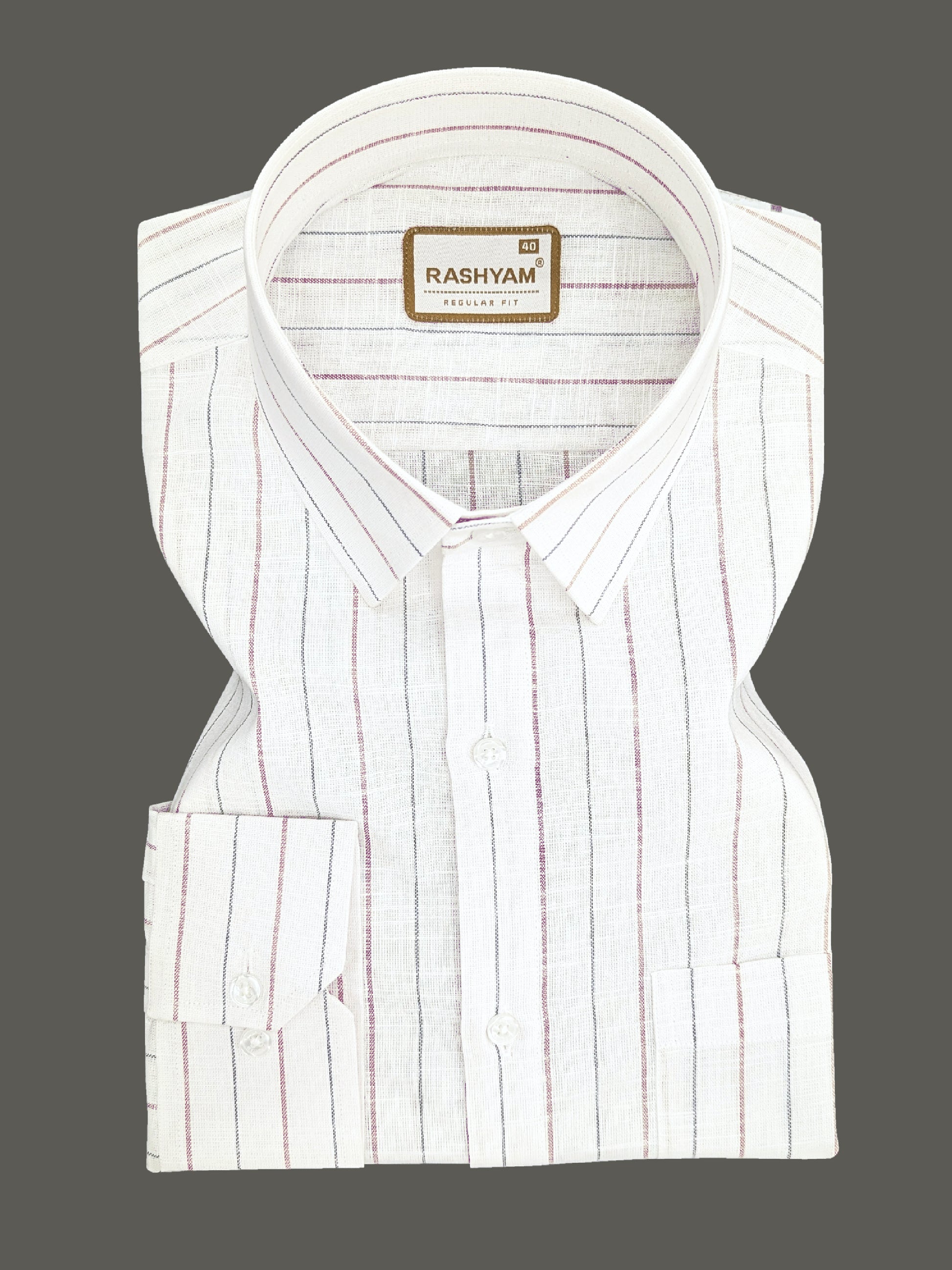 Premium Linen Cotton Bluish Light Line On Cream Shirt For Men