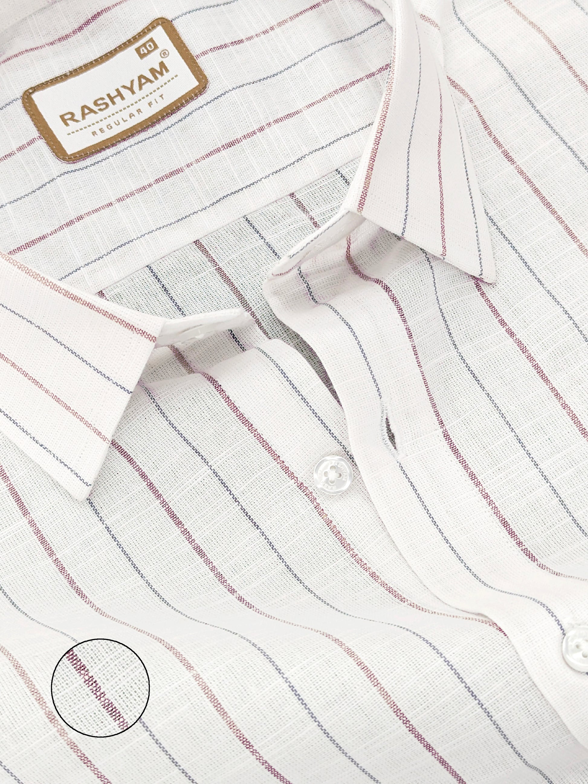Arezzo Italian Premium Linen Red And Blue Line Formal Shirt For Men