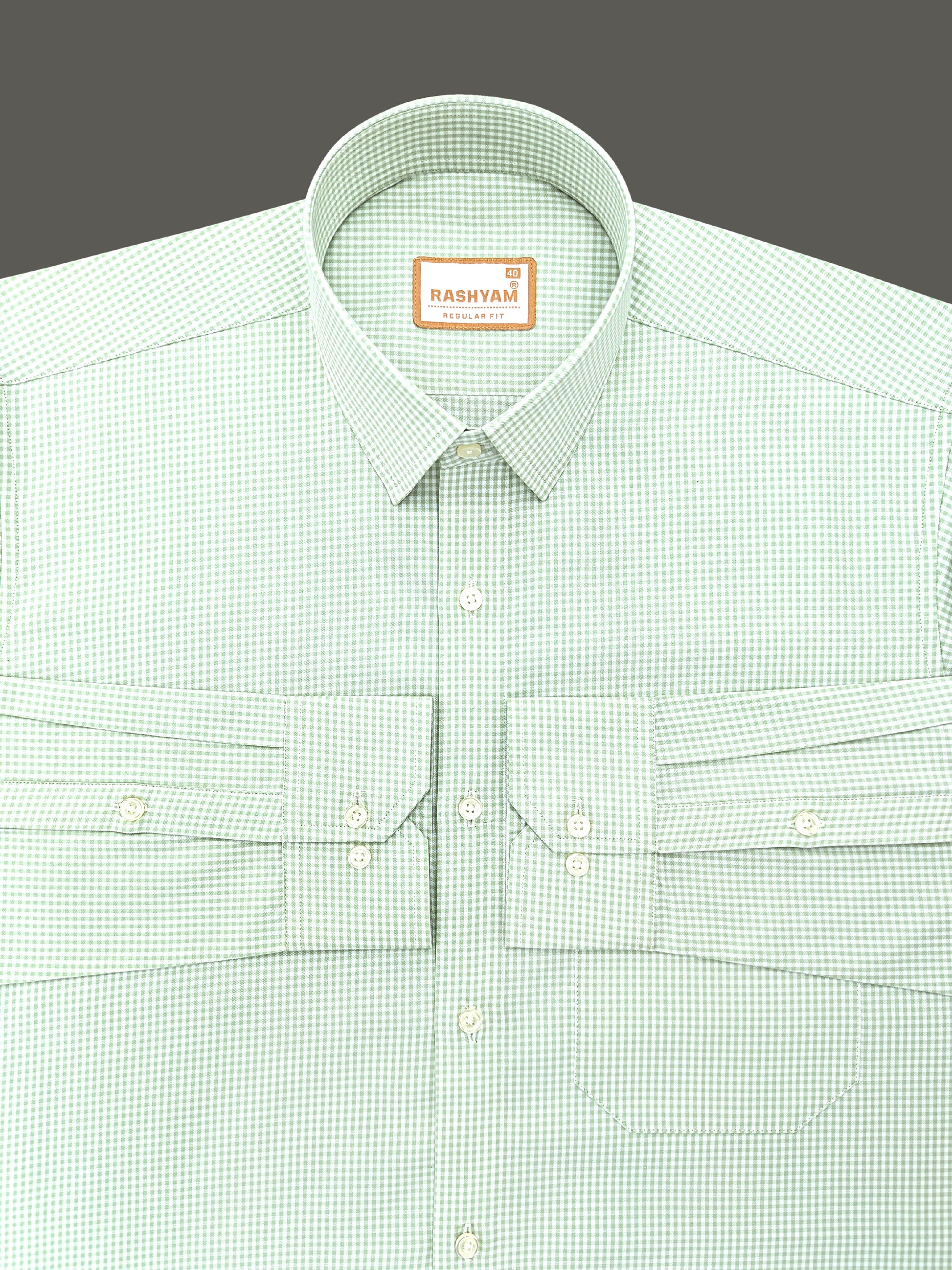Avellino Luxurious Green Super Soft Gingham Checks Cotton Shirt For Men
