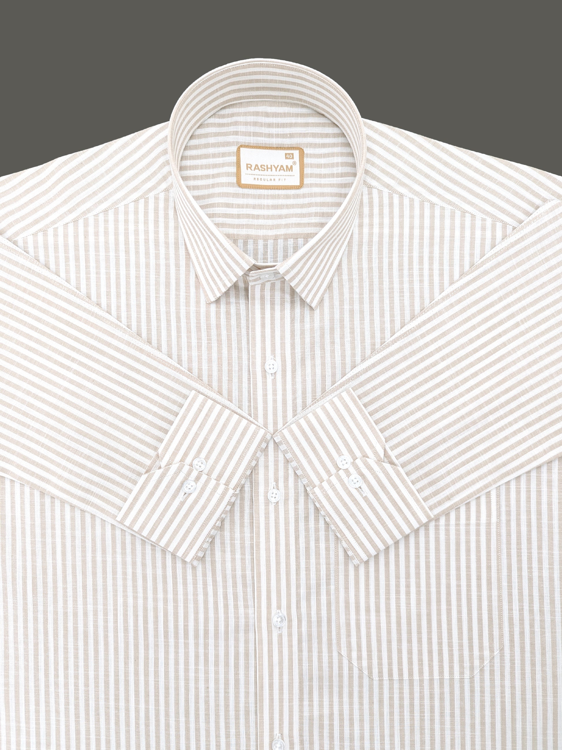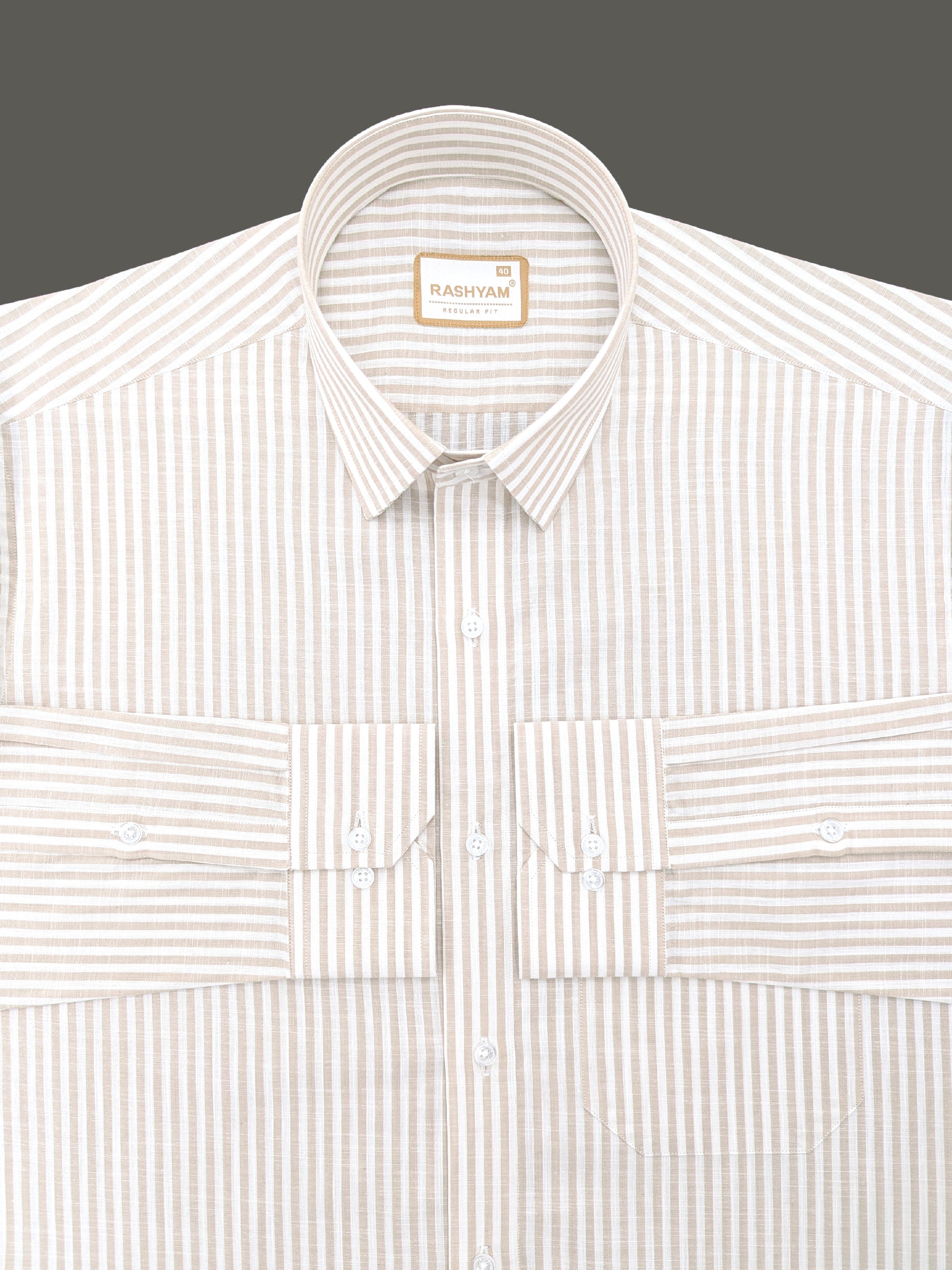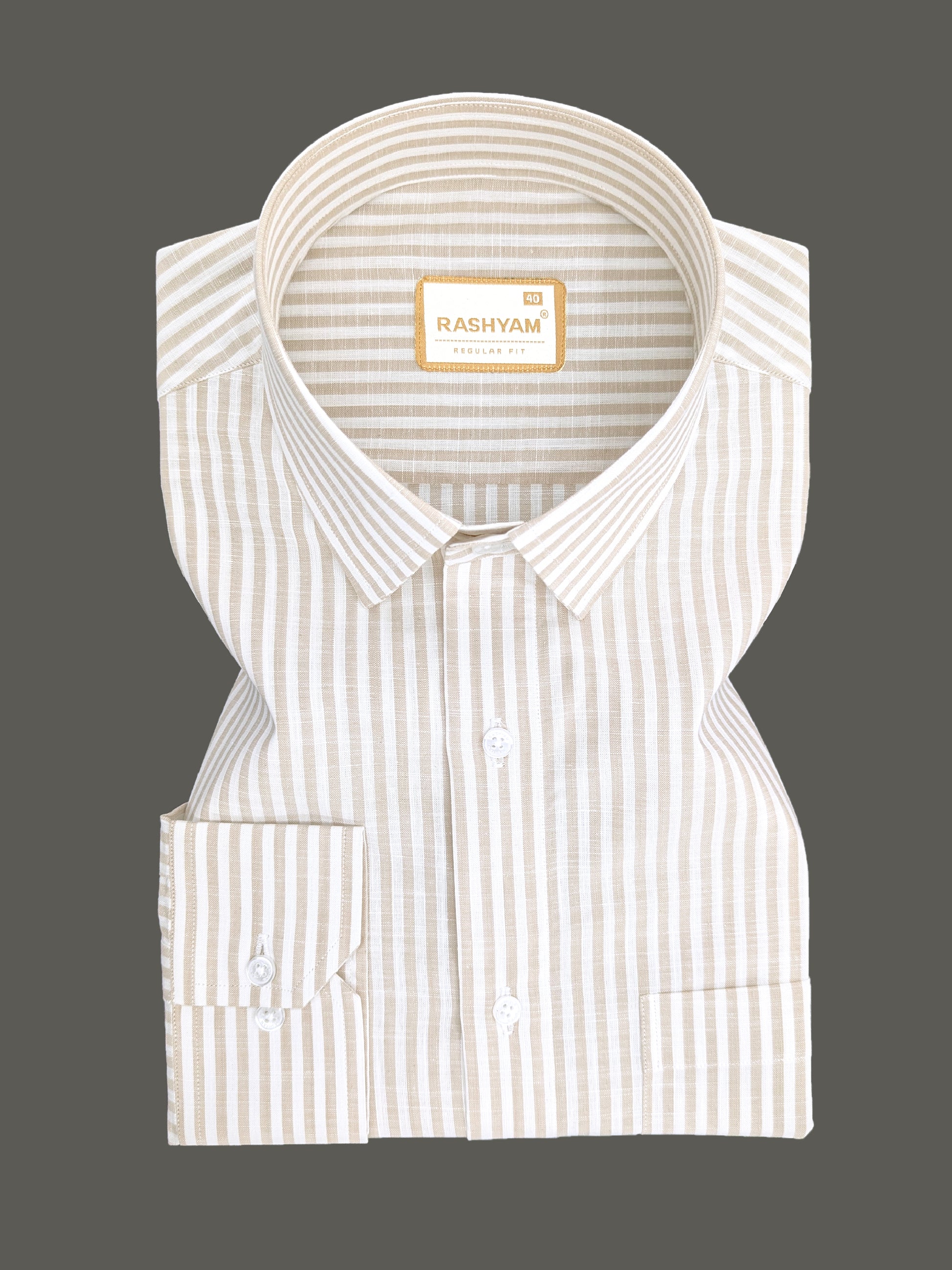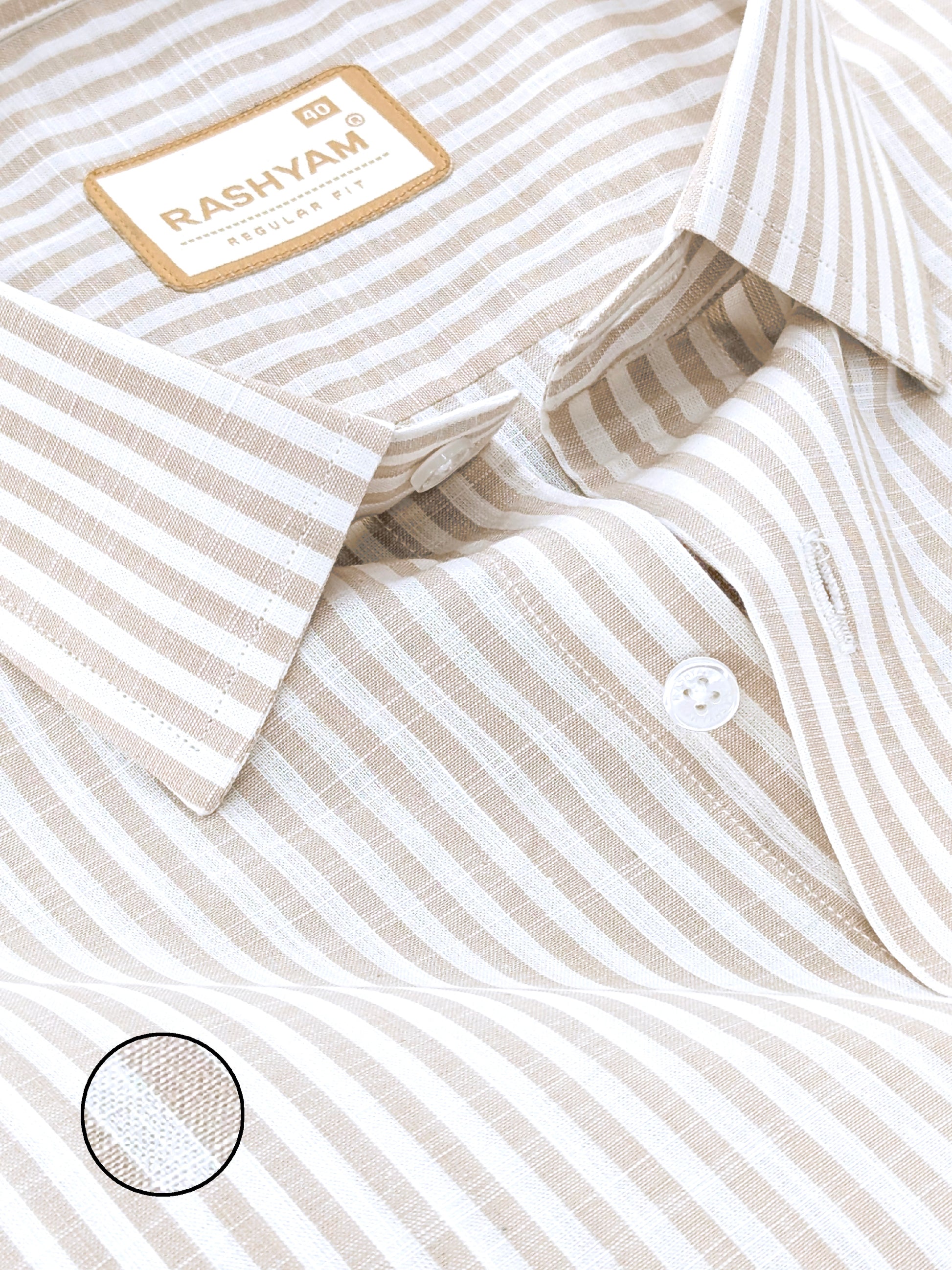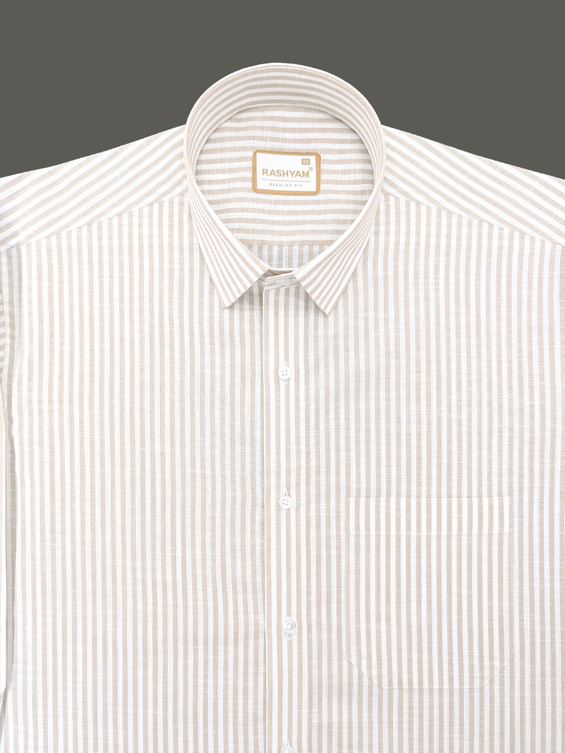 Light Lemon Line On White Luxurious Italian Linen Shirt