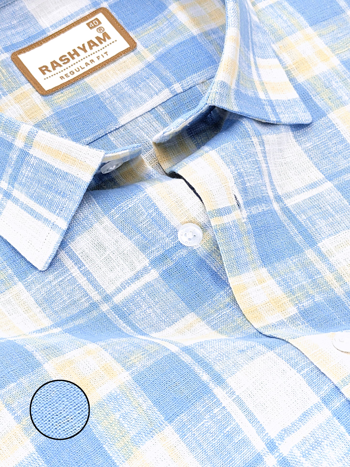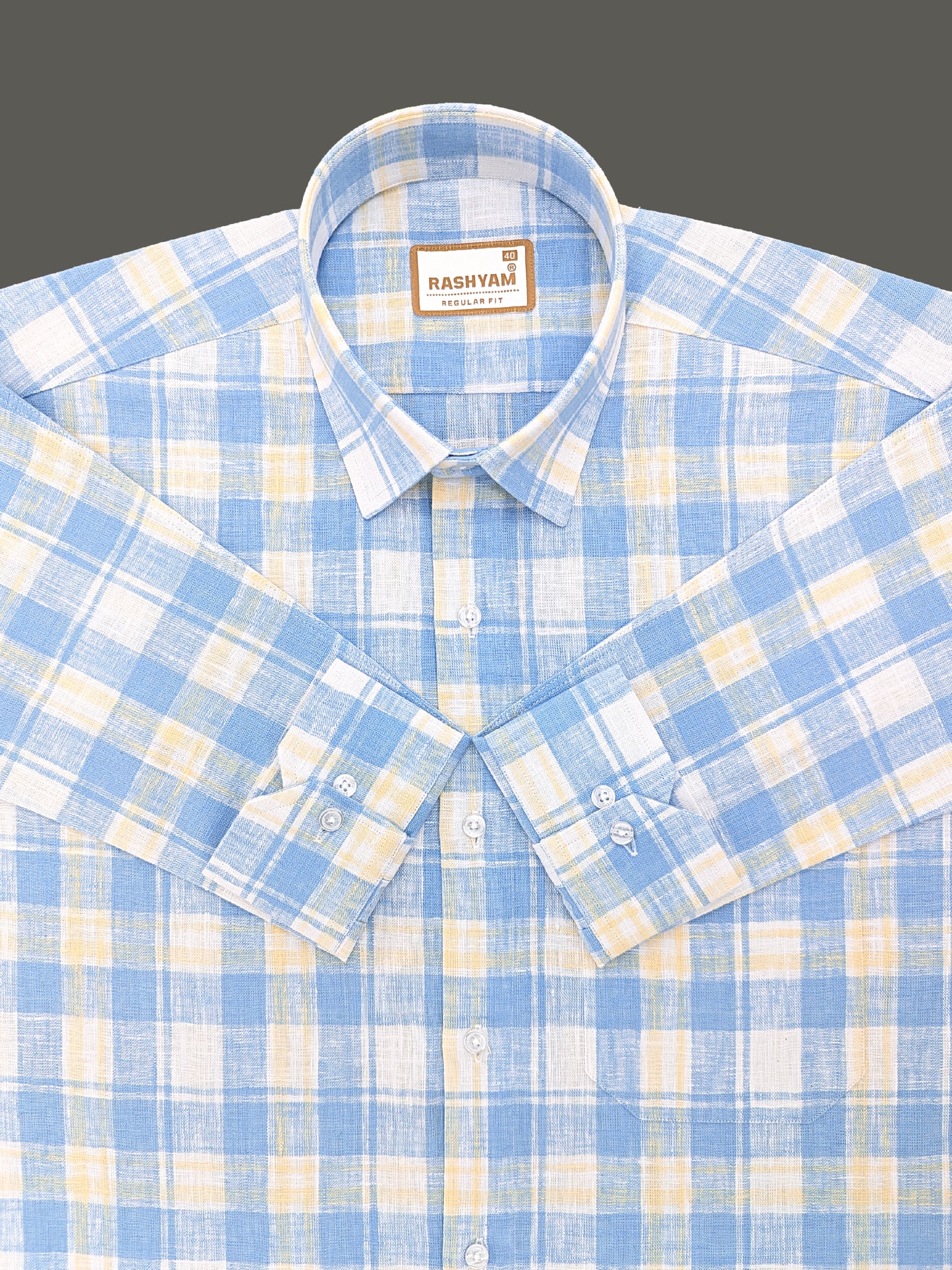 Ceriana Luxurious Italian Linen Blue with Yellow Checks Formal Shirt