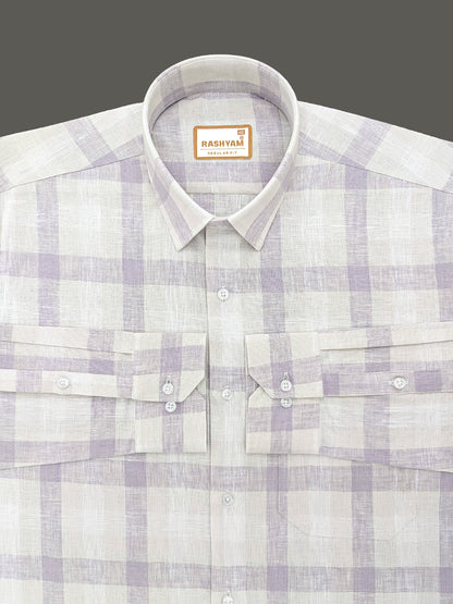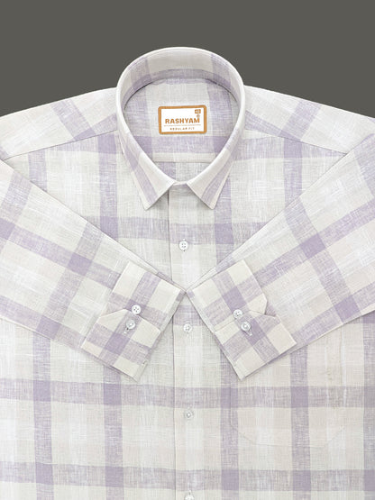 Ceriana Luxurious Italian Linen lavender Checks On Cream Formal Shirt