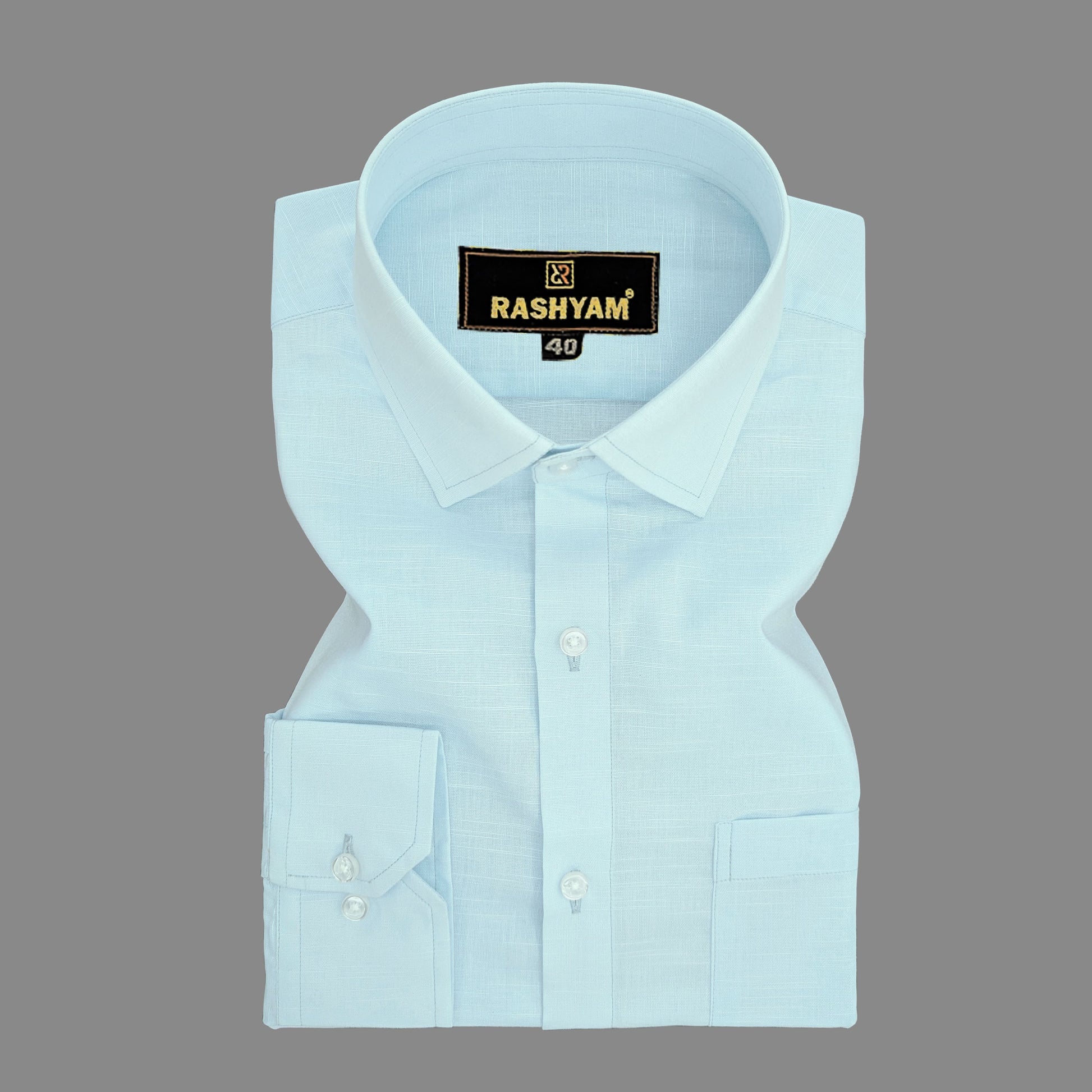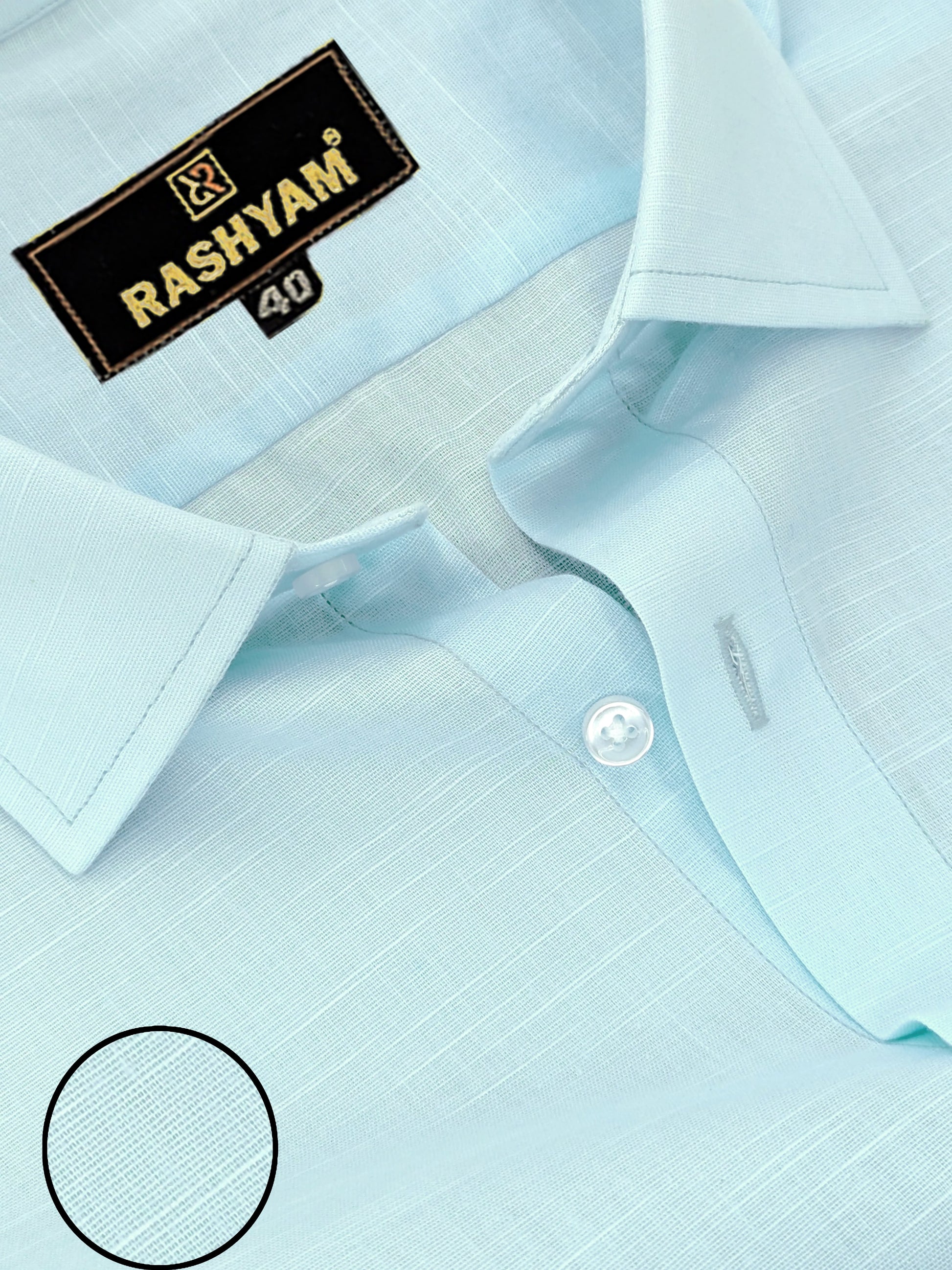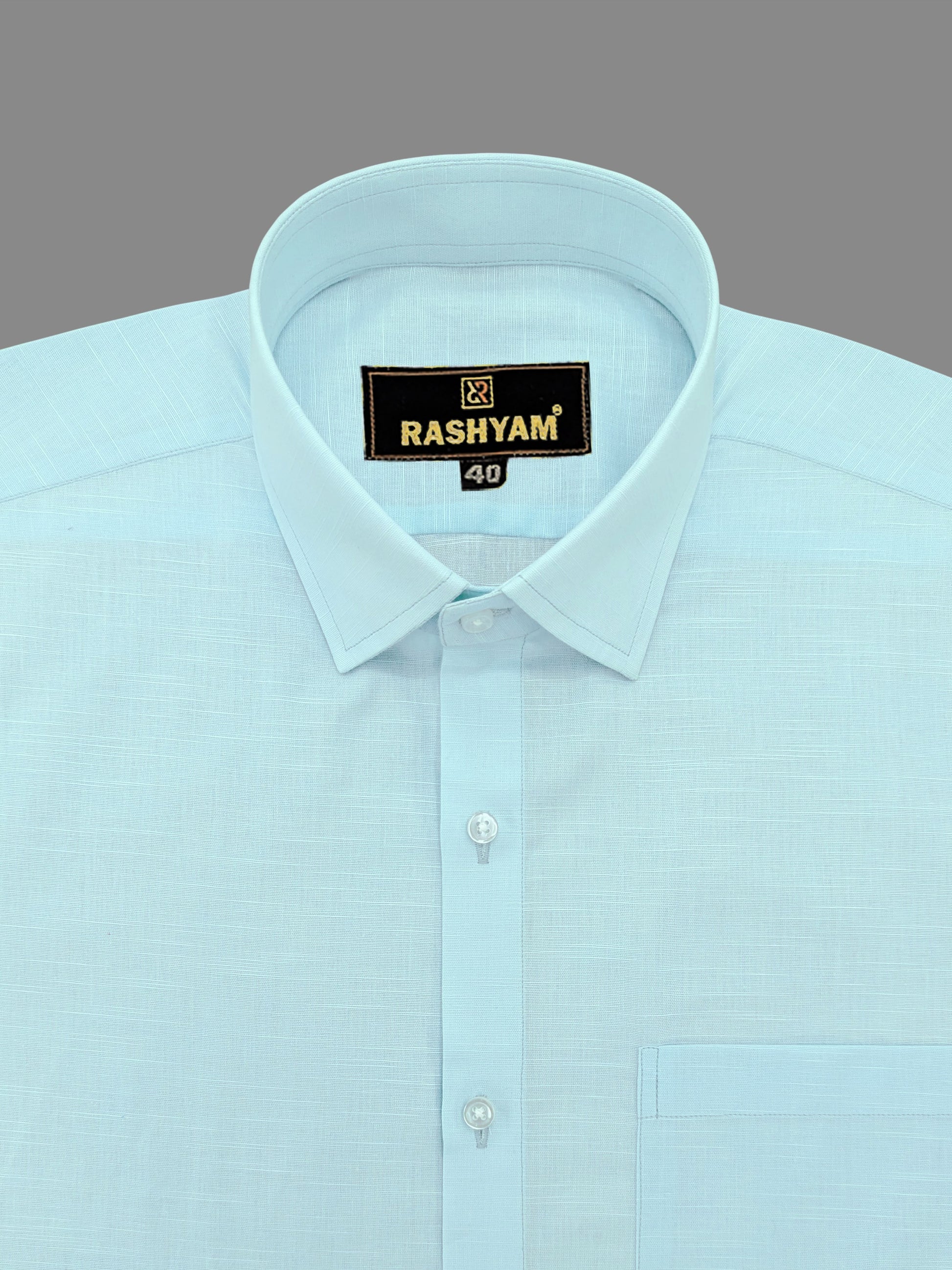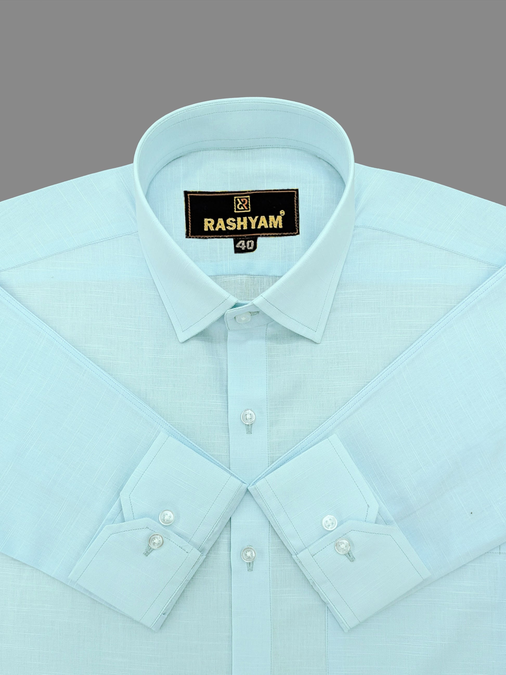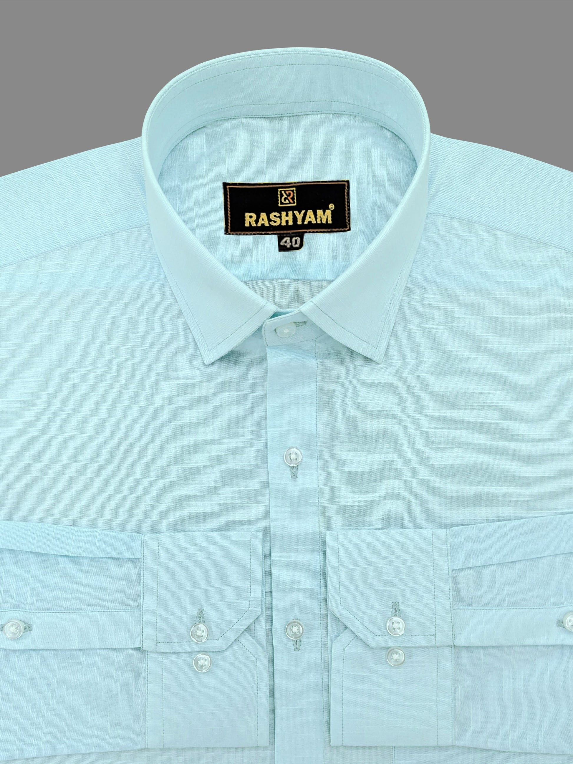 Premium Linen Cotton Greenish Cyan With Blue Checks Shirt For Men