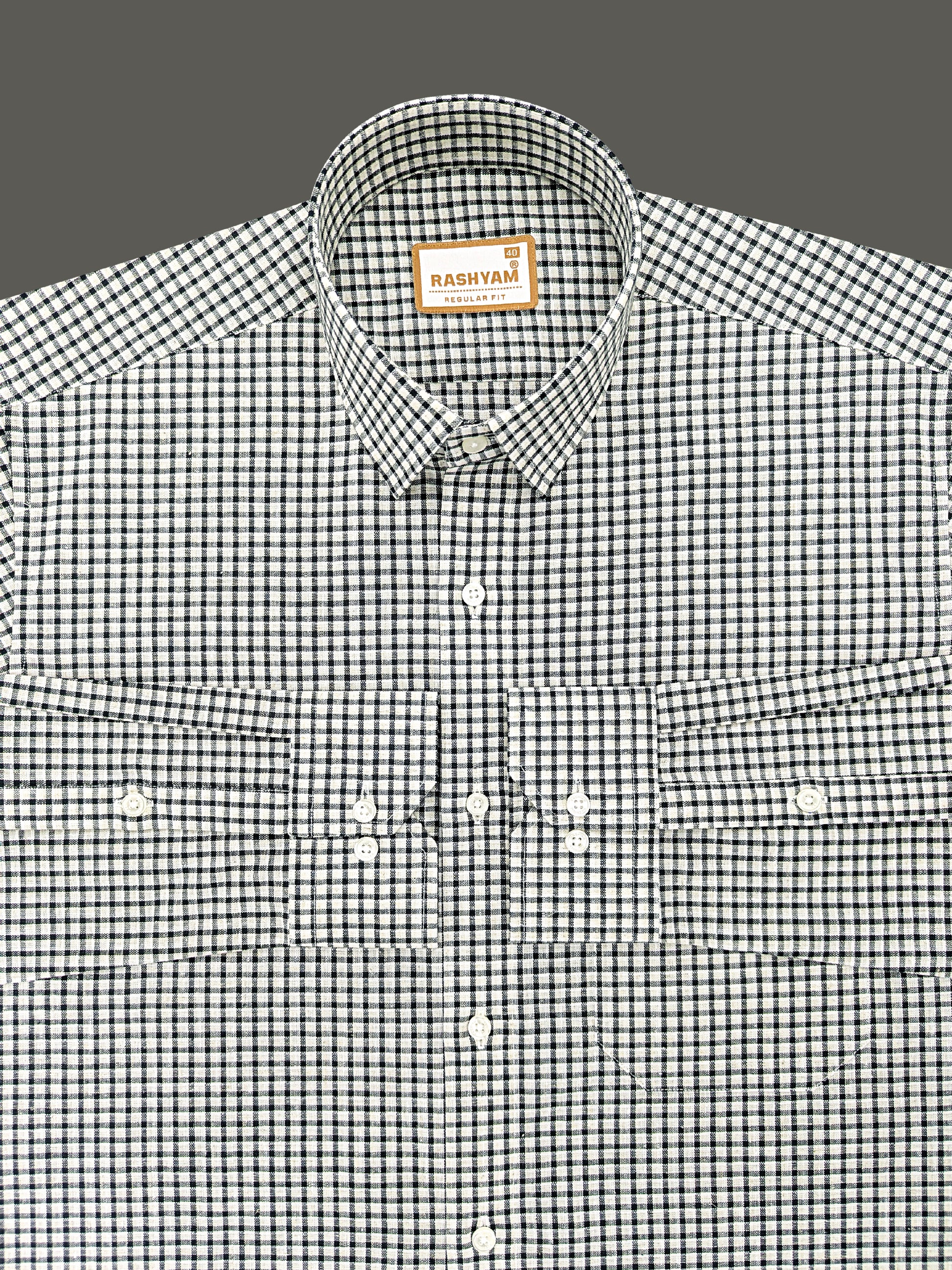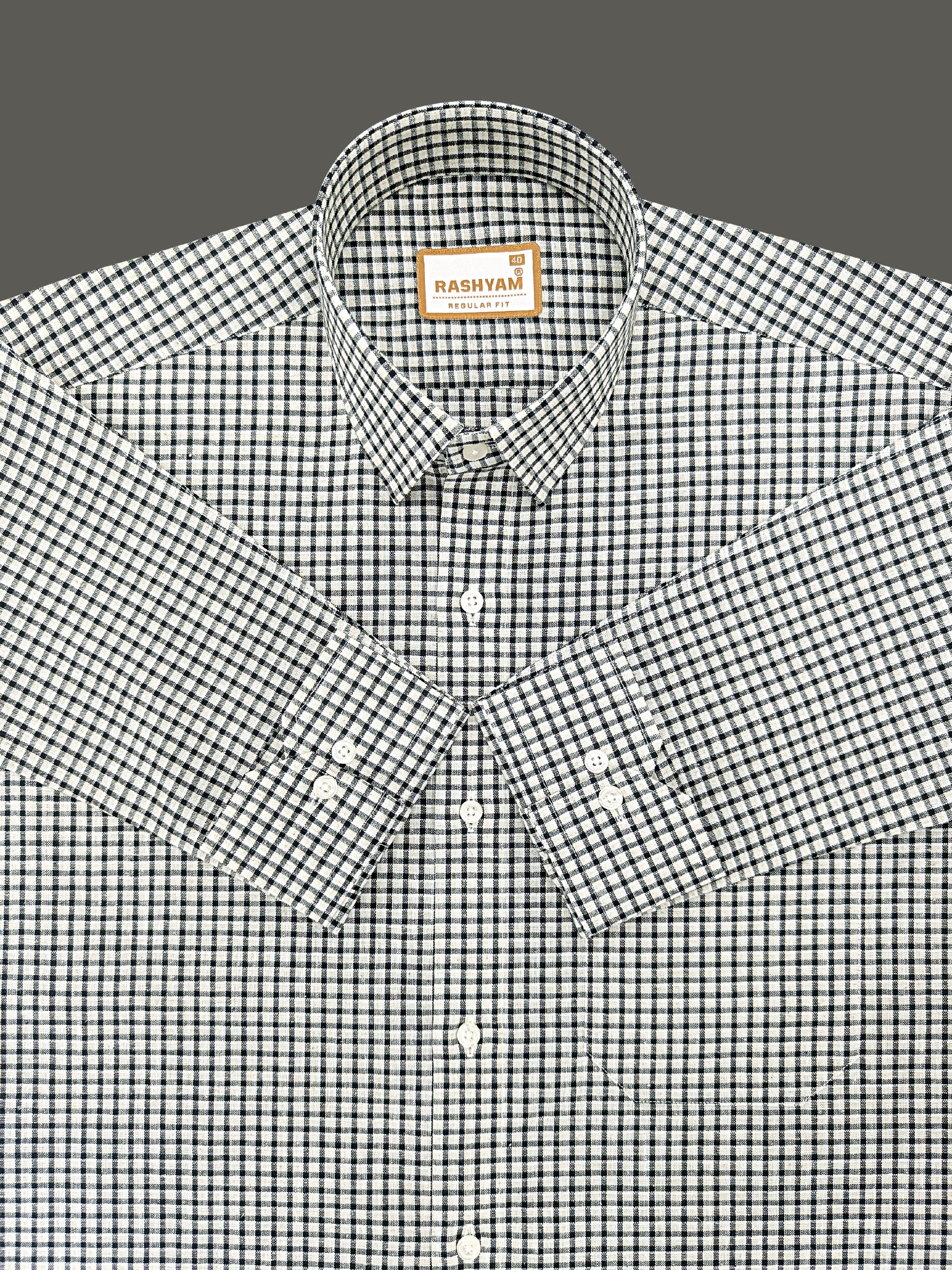 Latina Italian Linen Black Checks On Cream Formal Shirt For men