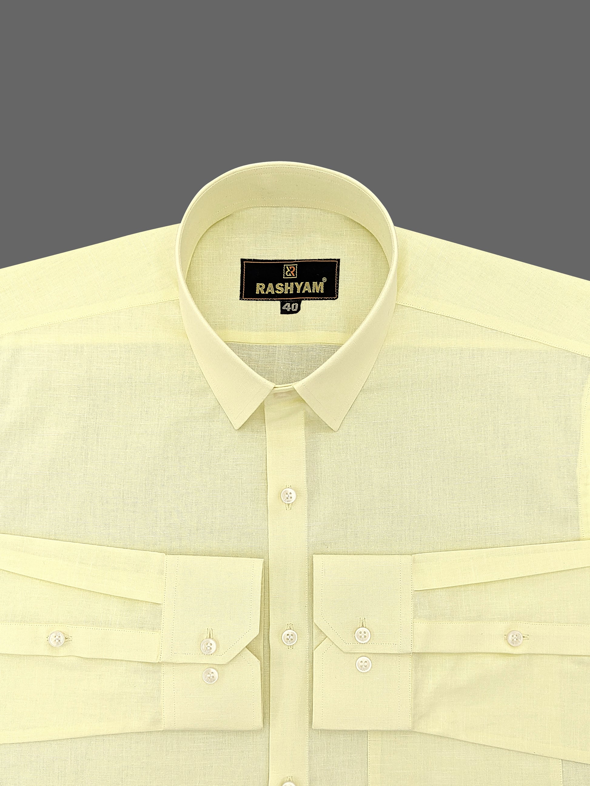 Latina Italian Linen Camouflage Green Checks On Cream Formal Shirt For men
