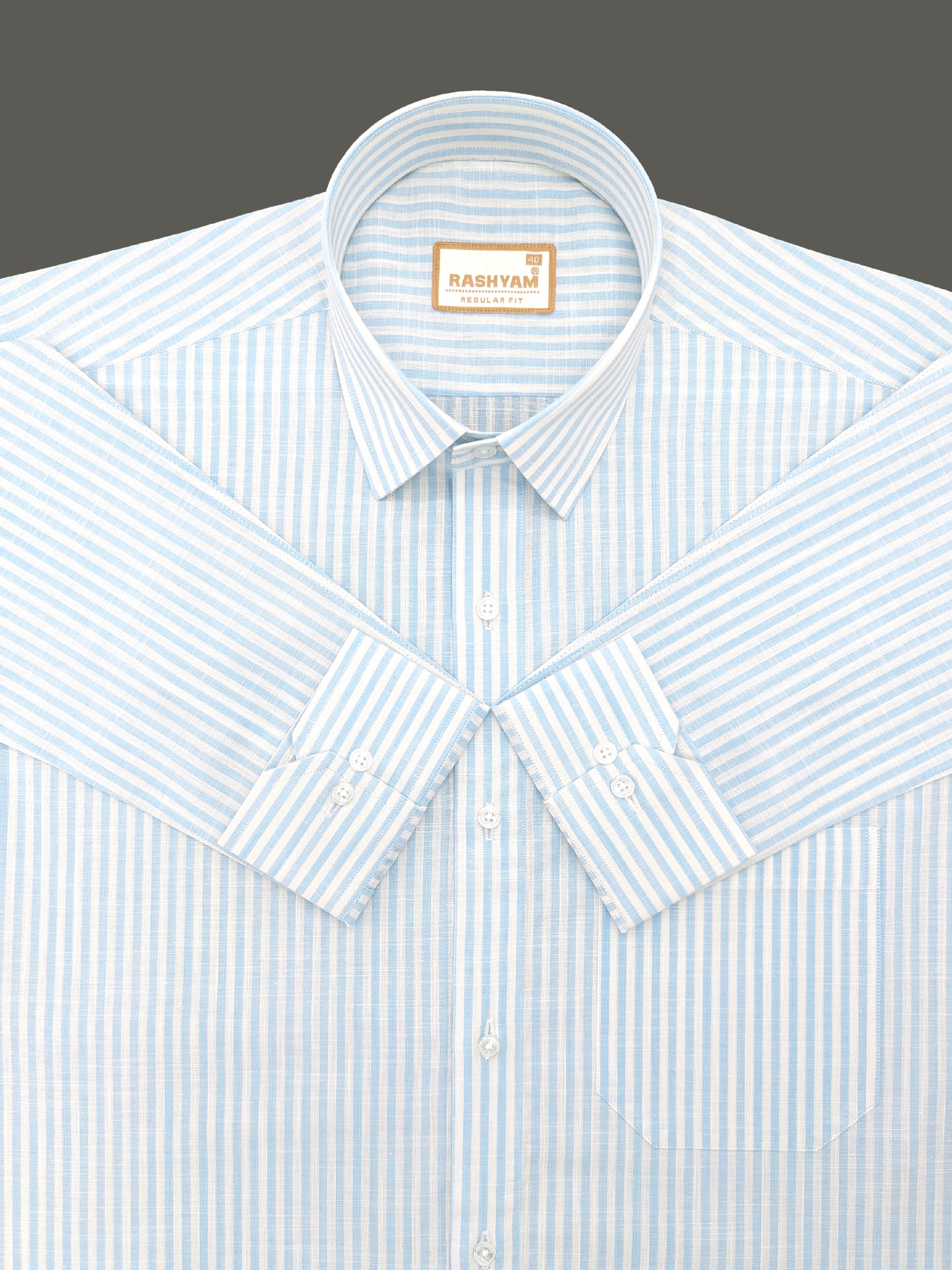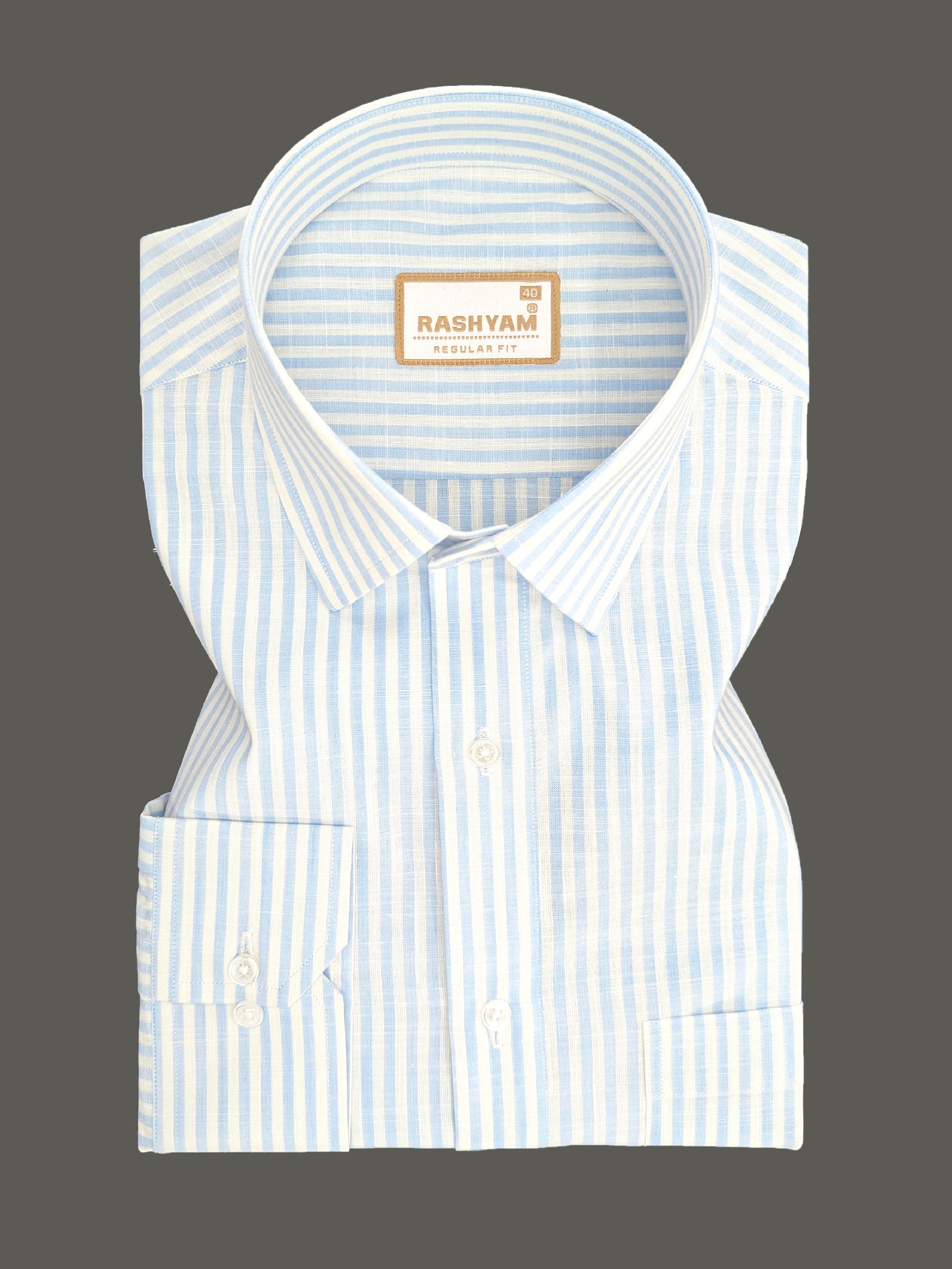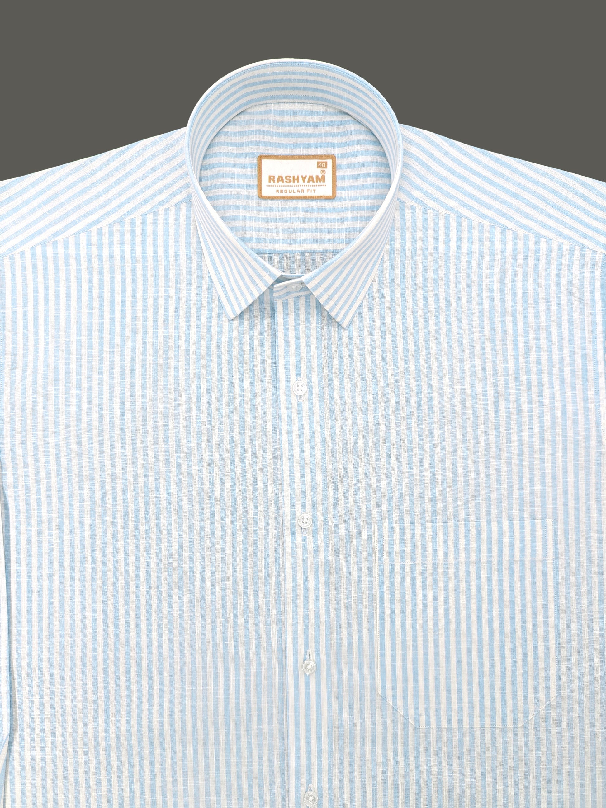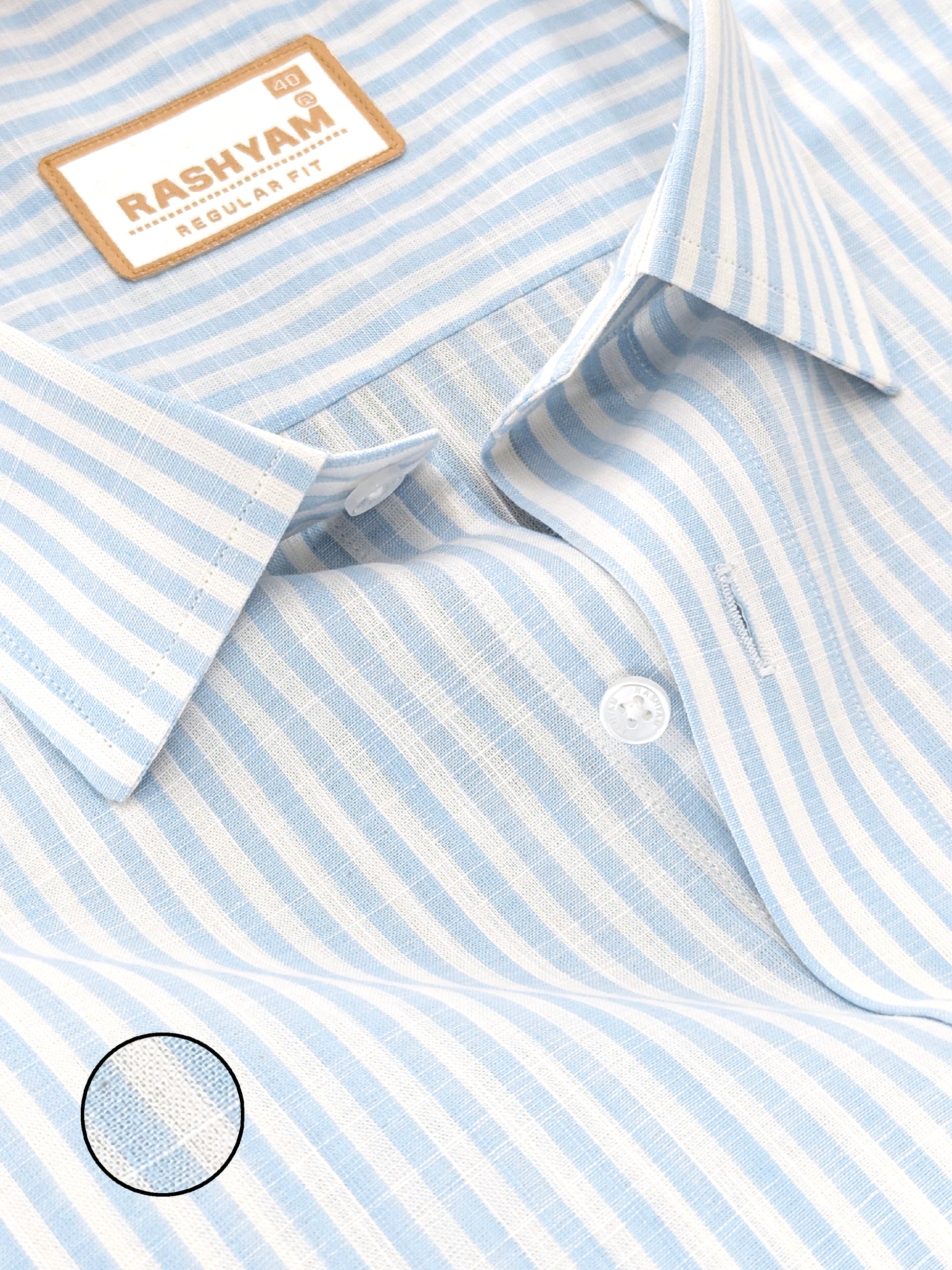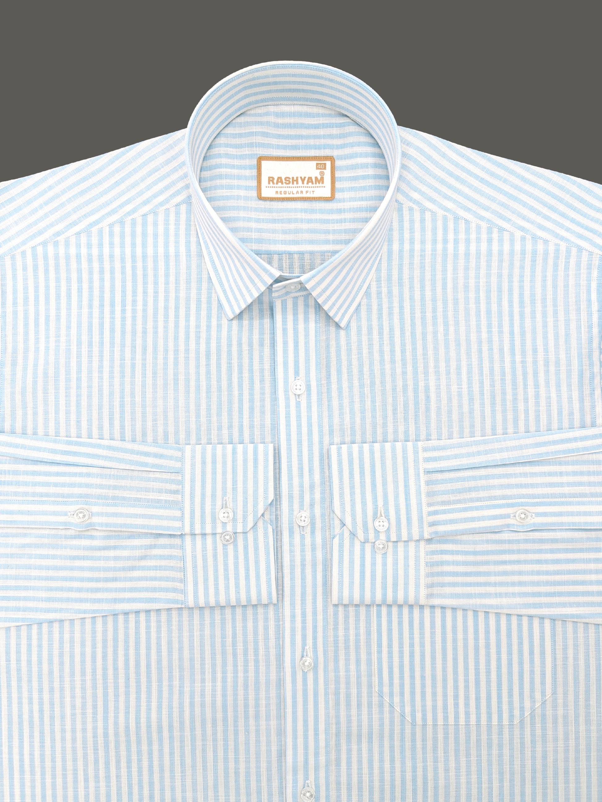 Light Blue Line On White Luxurious Italian Linen Shirt