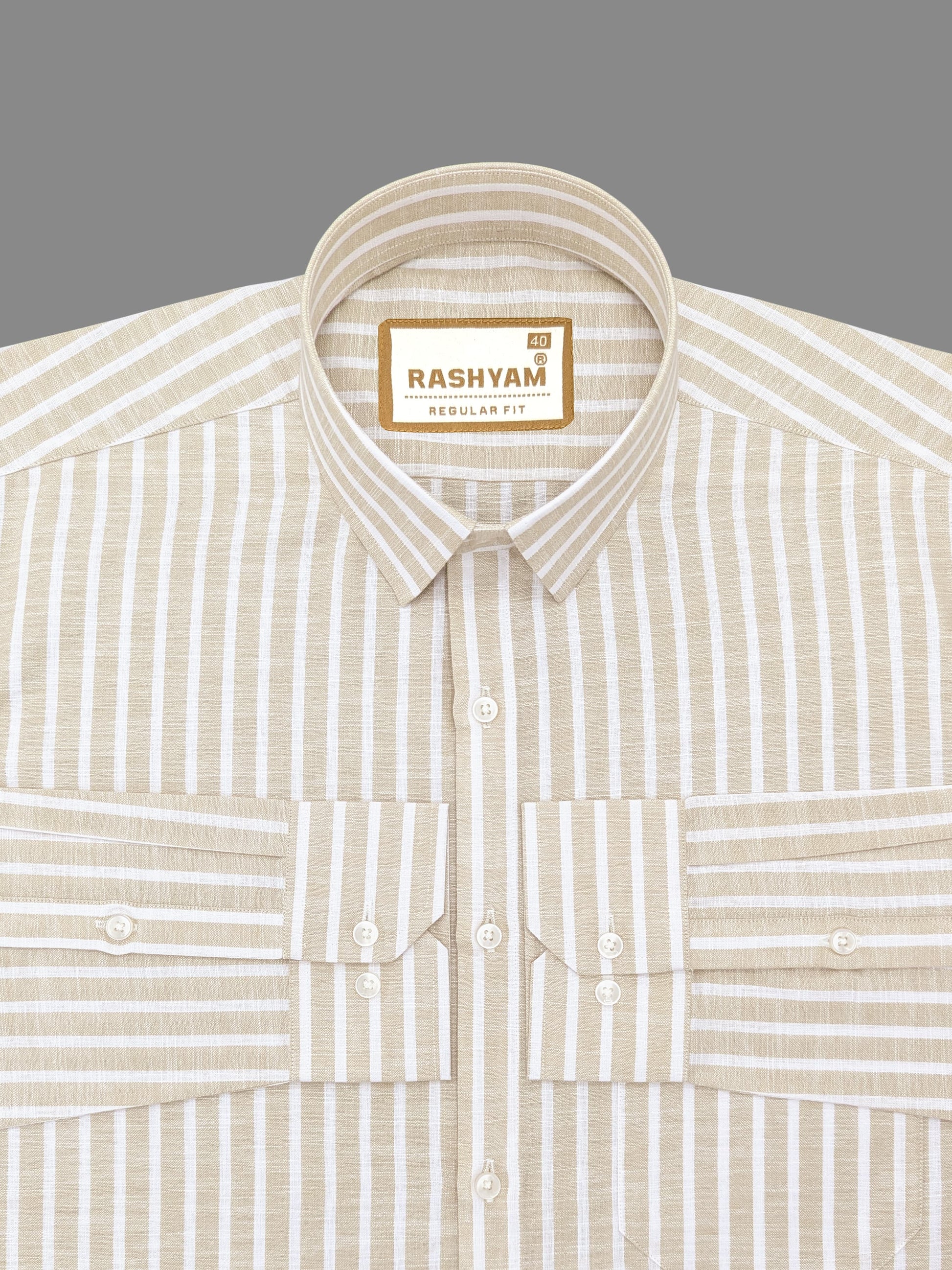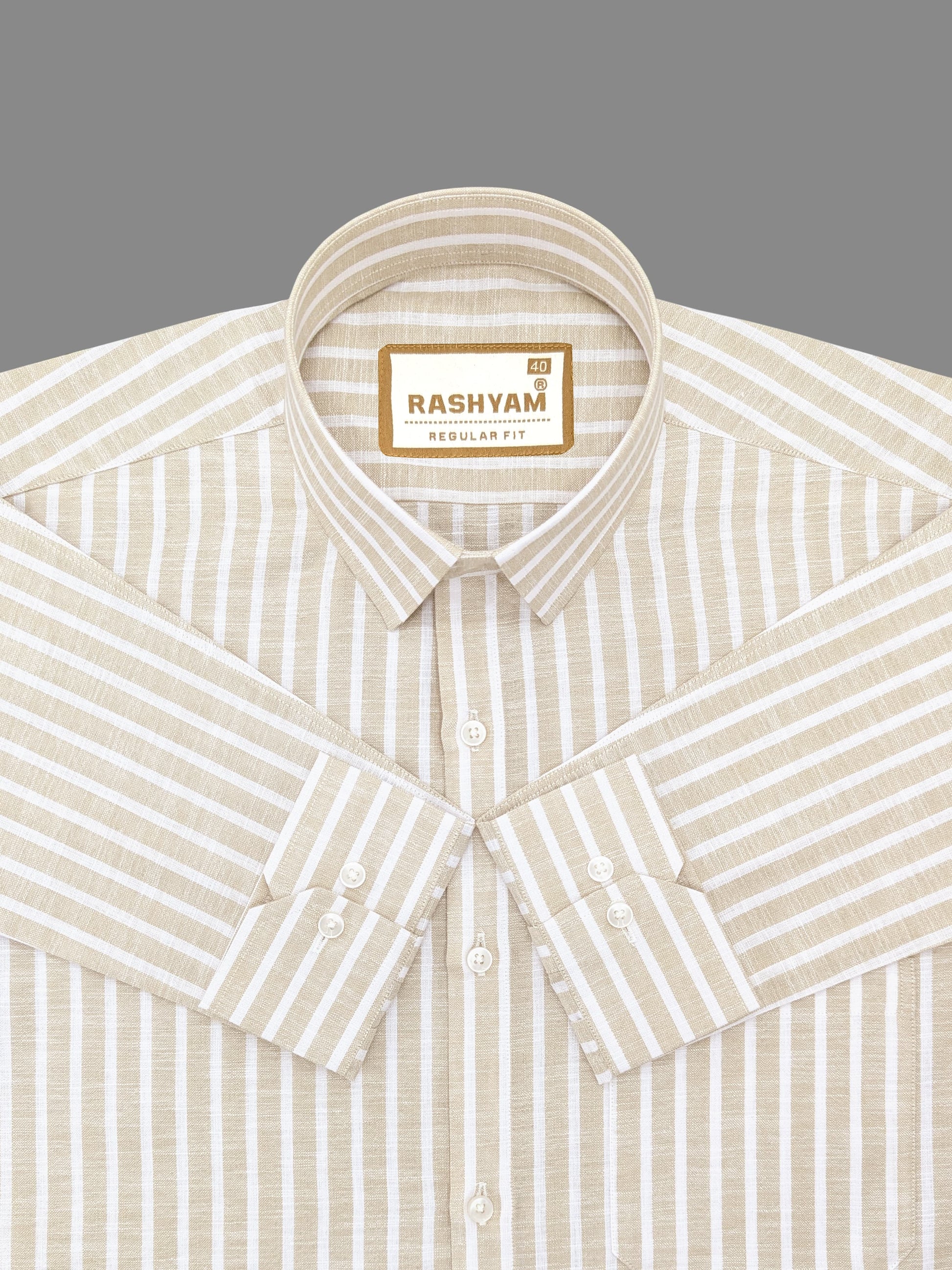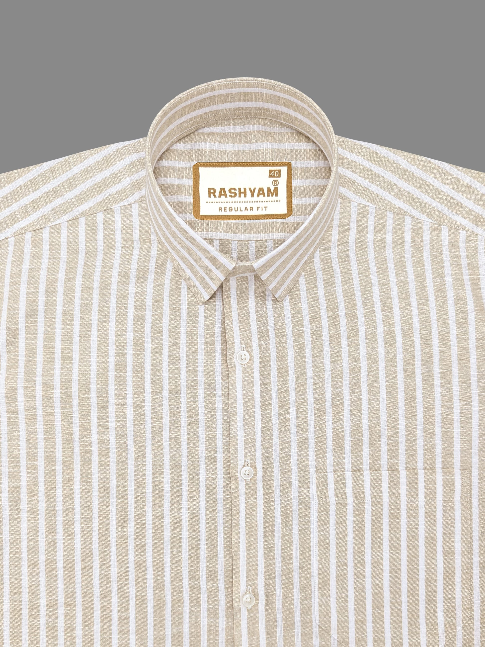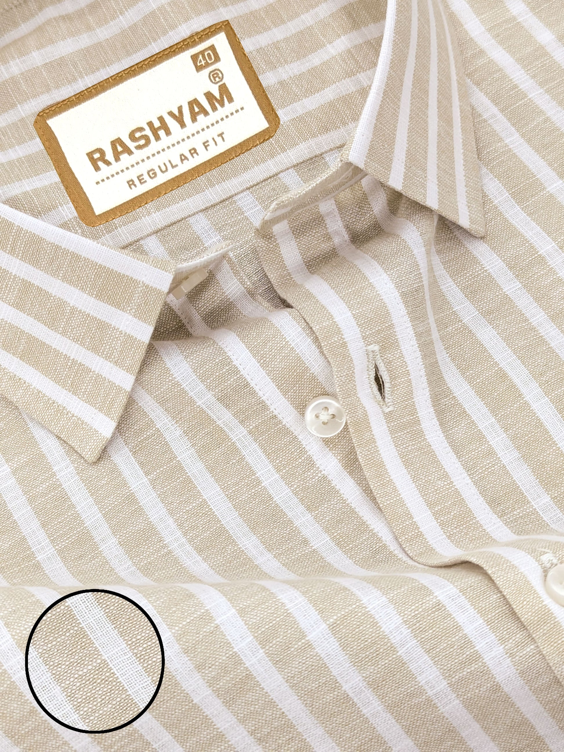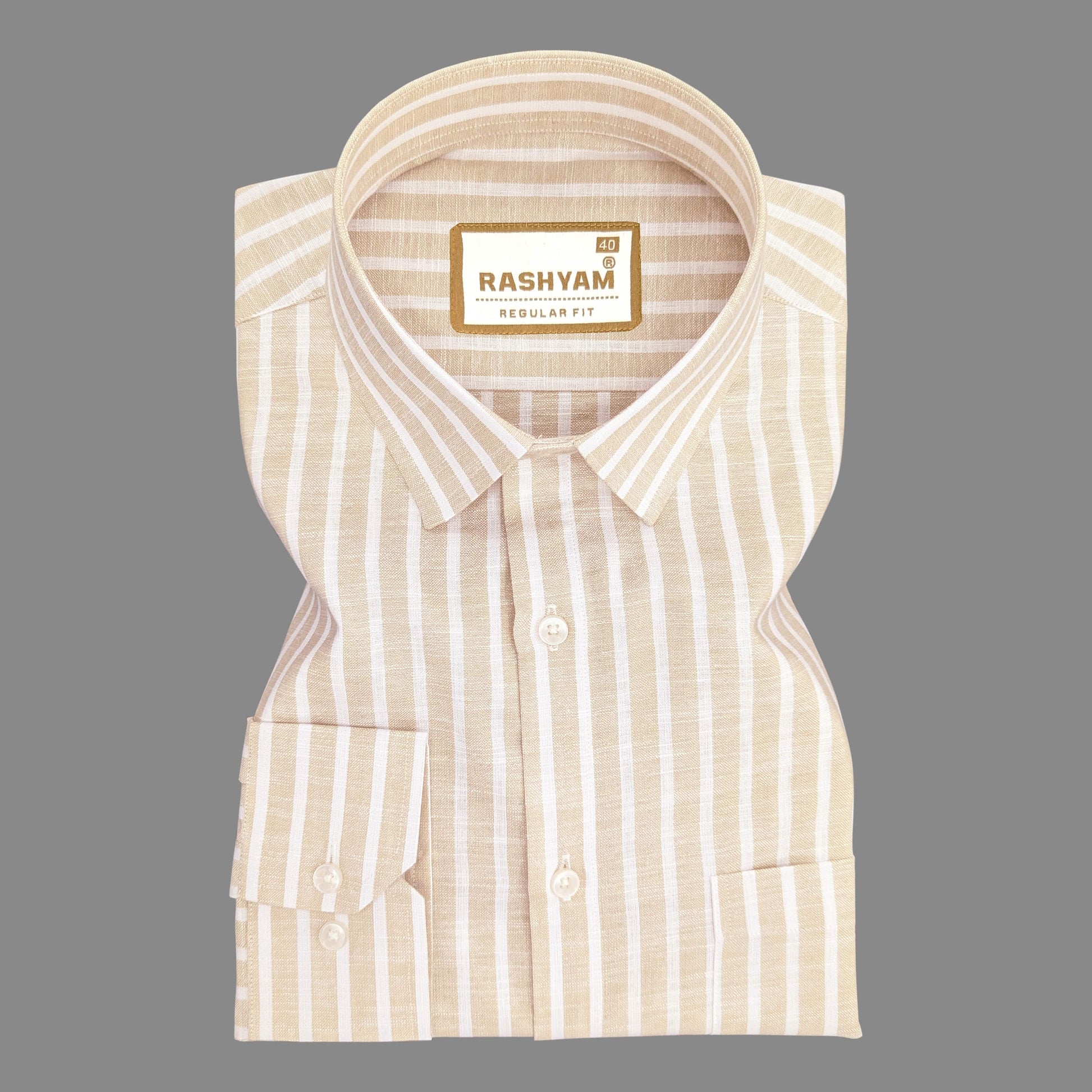 Luxurious Linen Cotton Tortilla Brown With White Line Shirt For Men