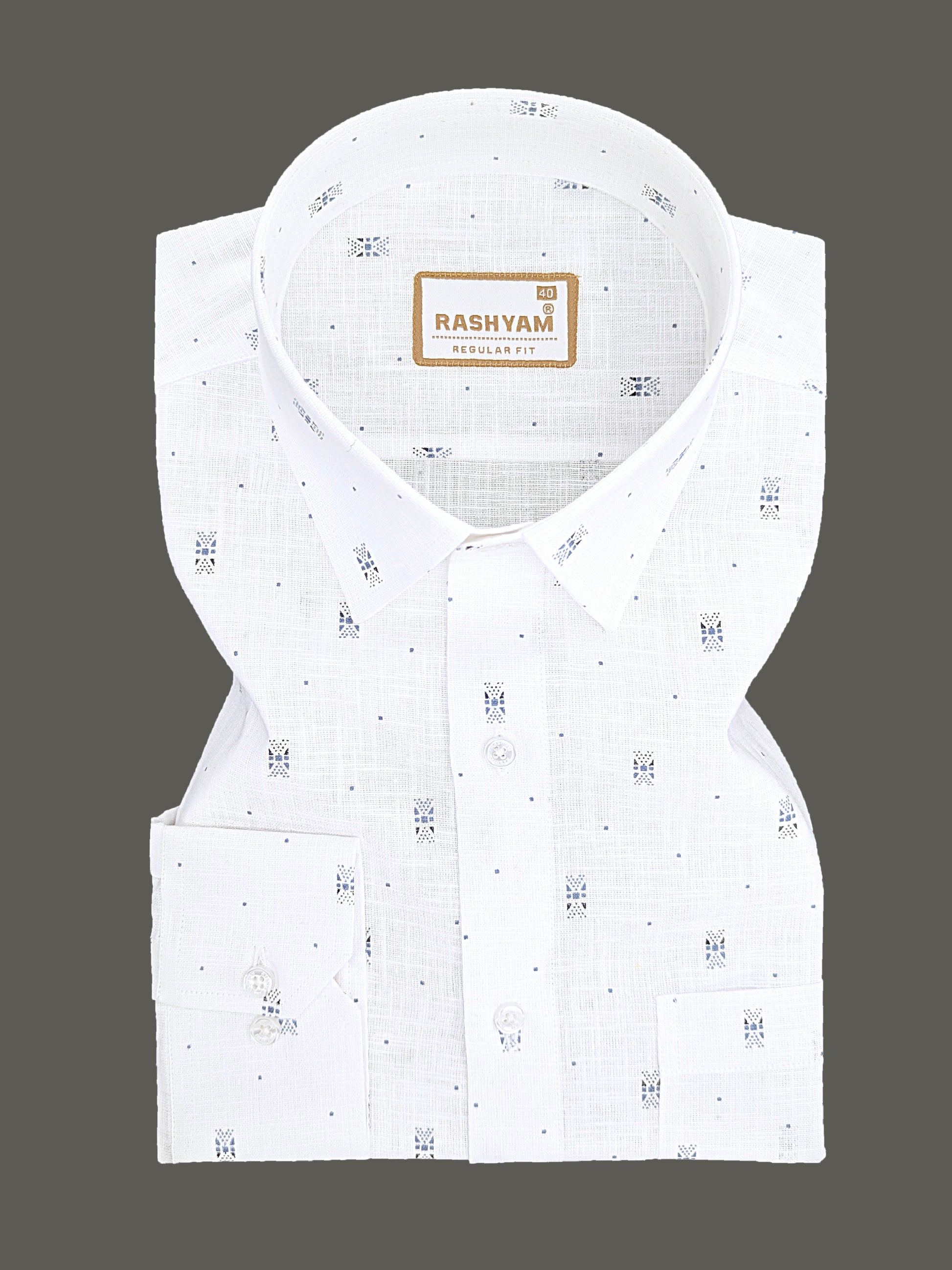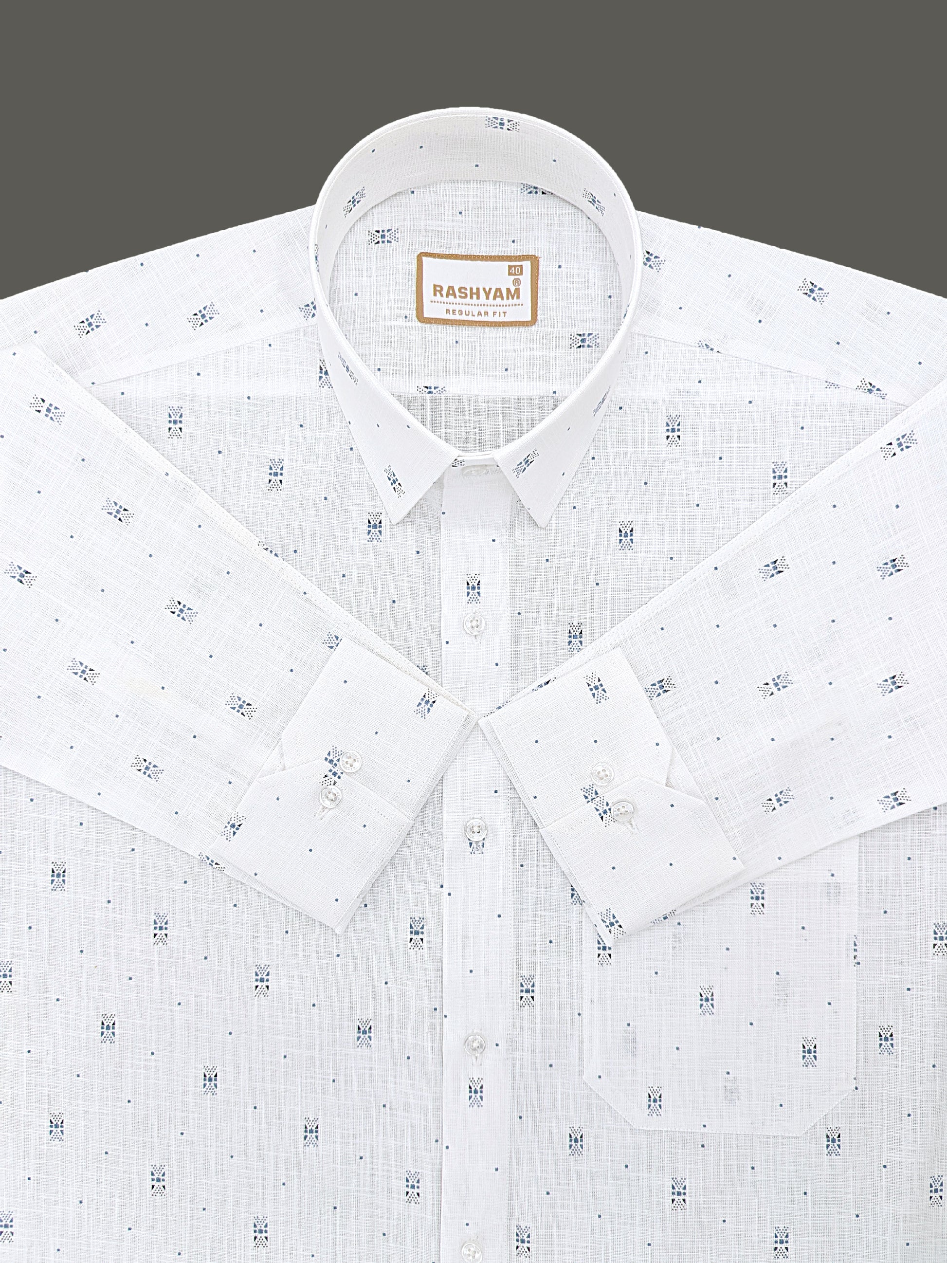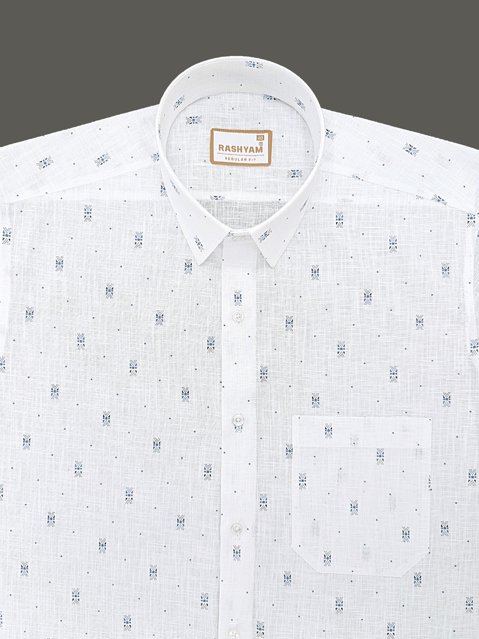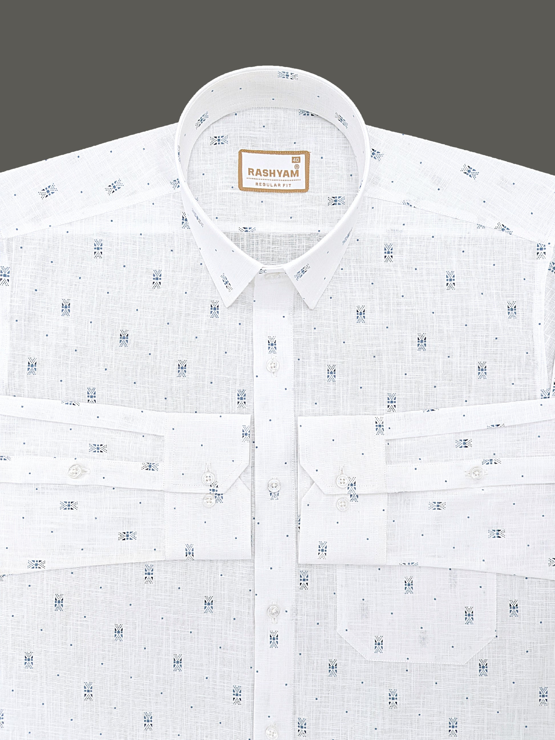 Manarola Premium Linen Cotton Blue And Black Diamond Pixel Cross Print Formal Shirt