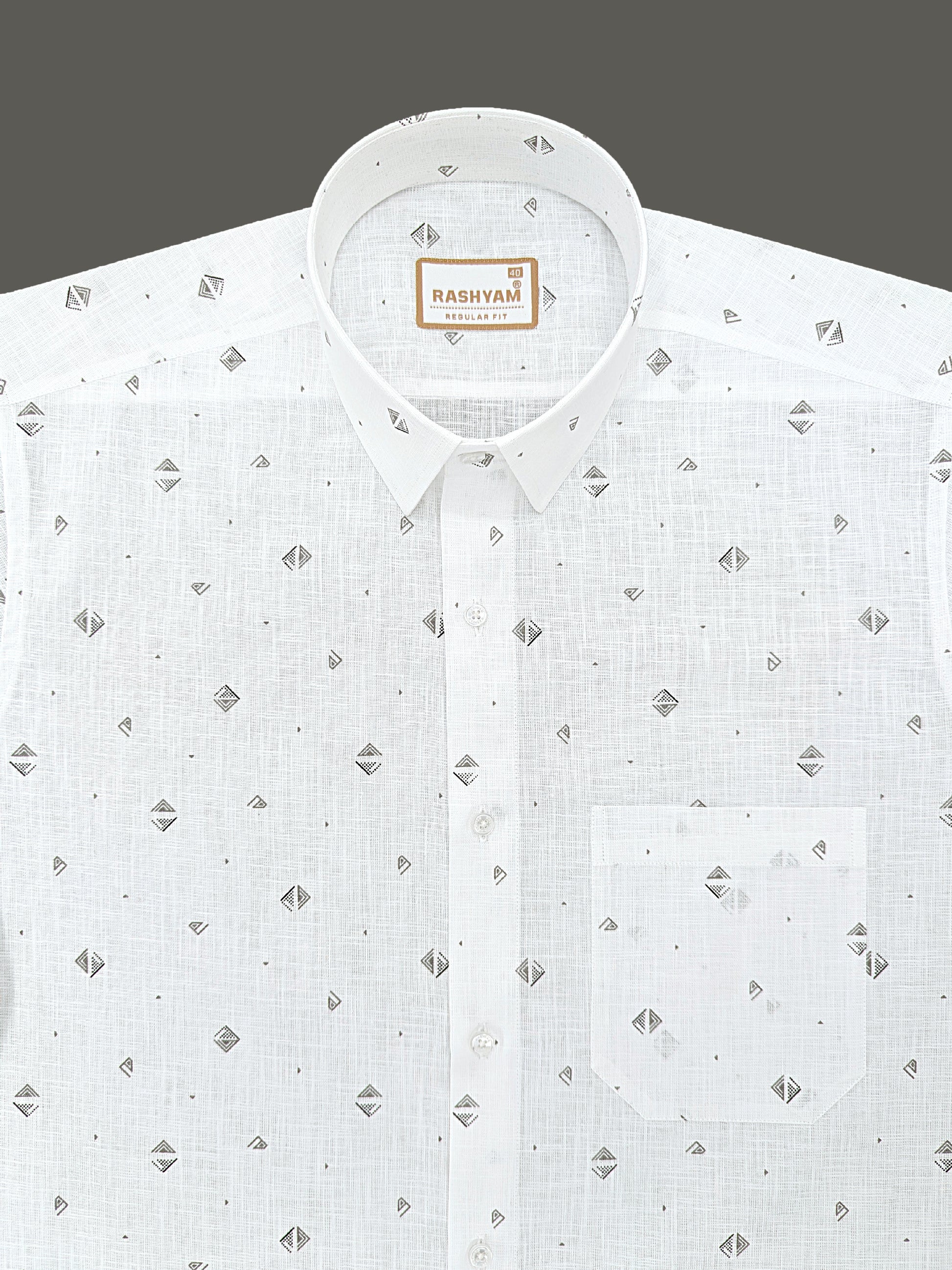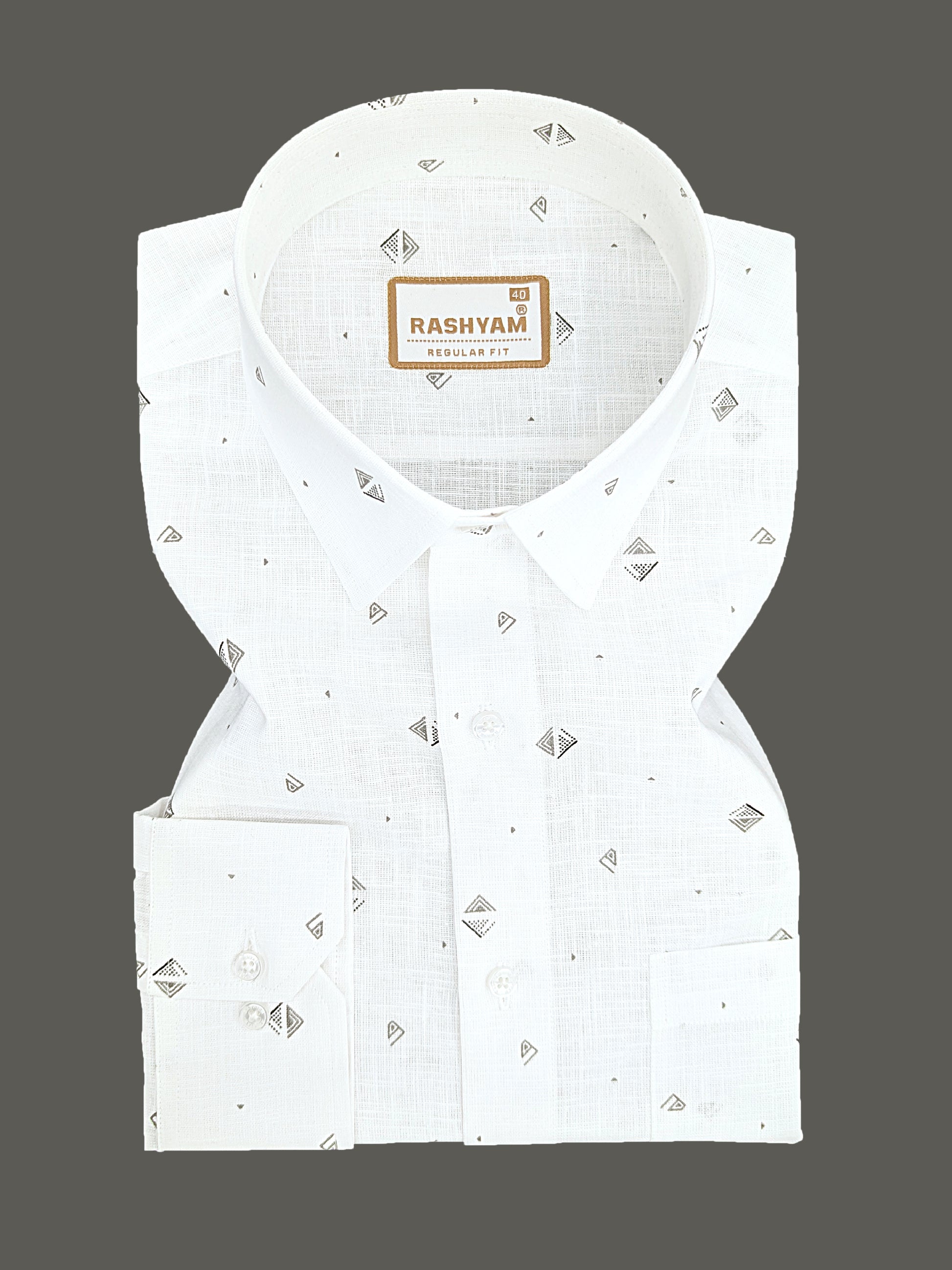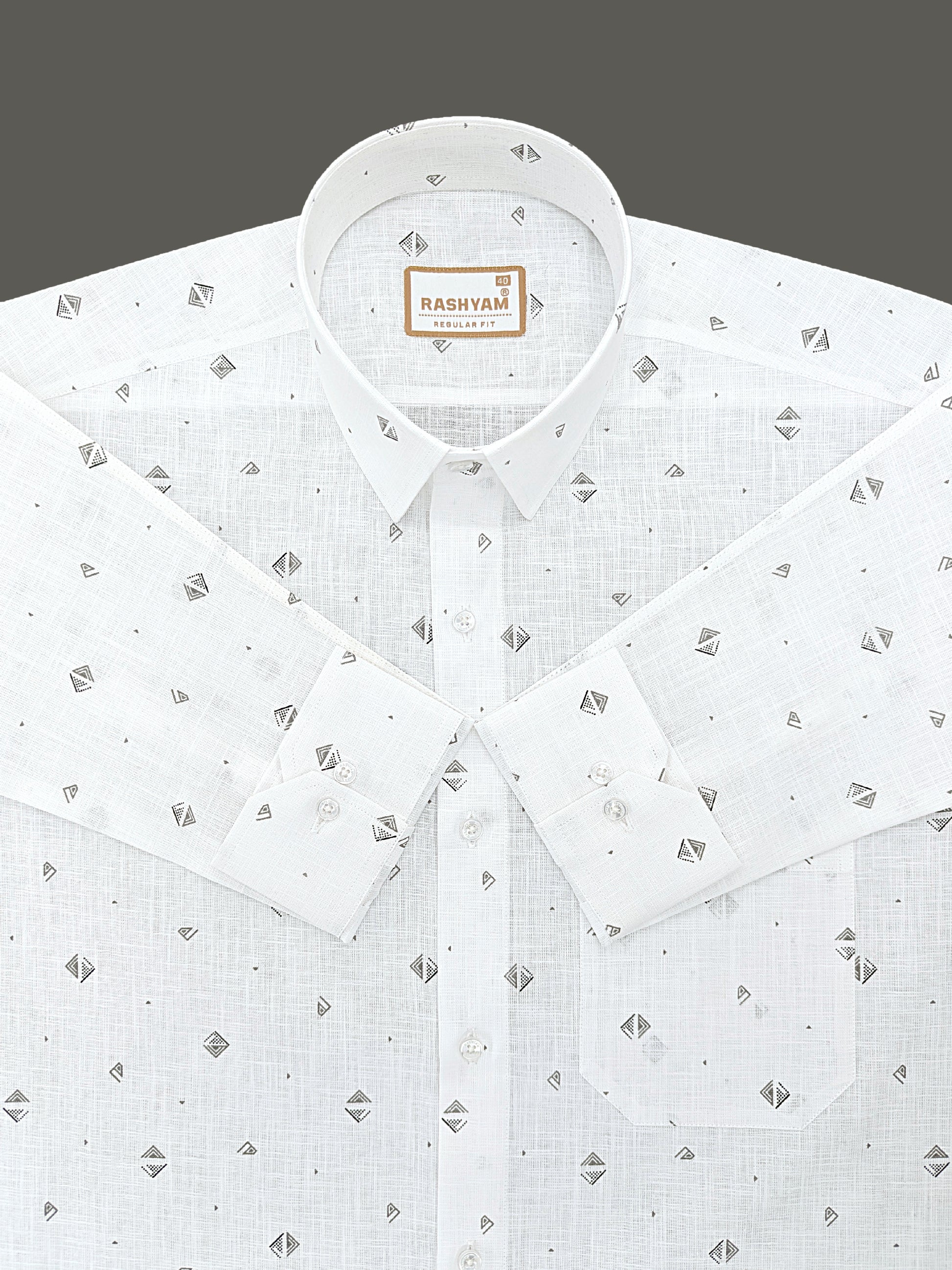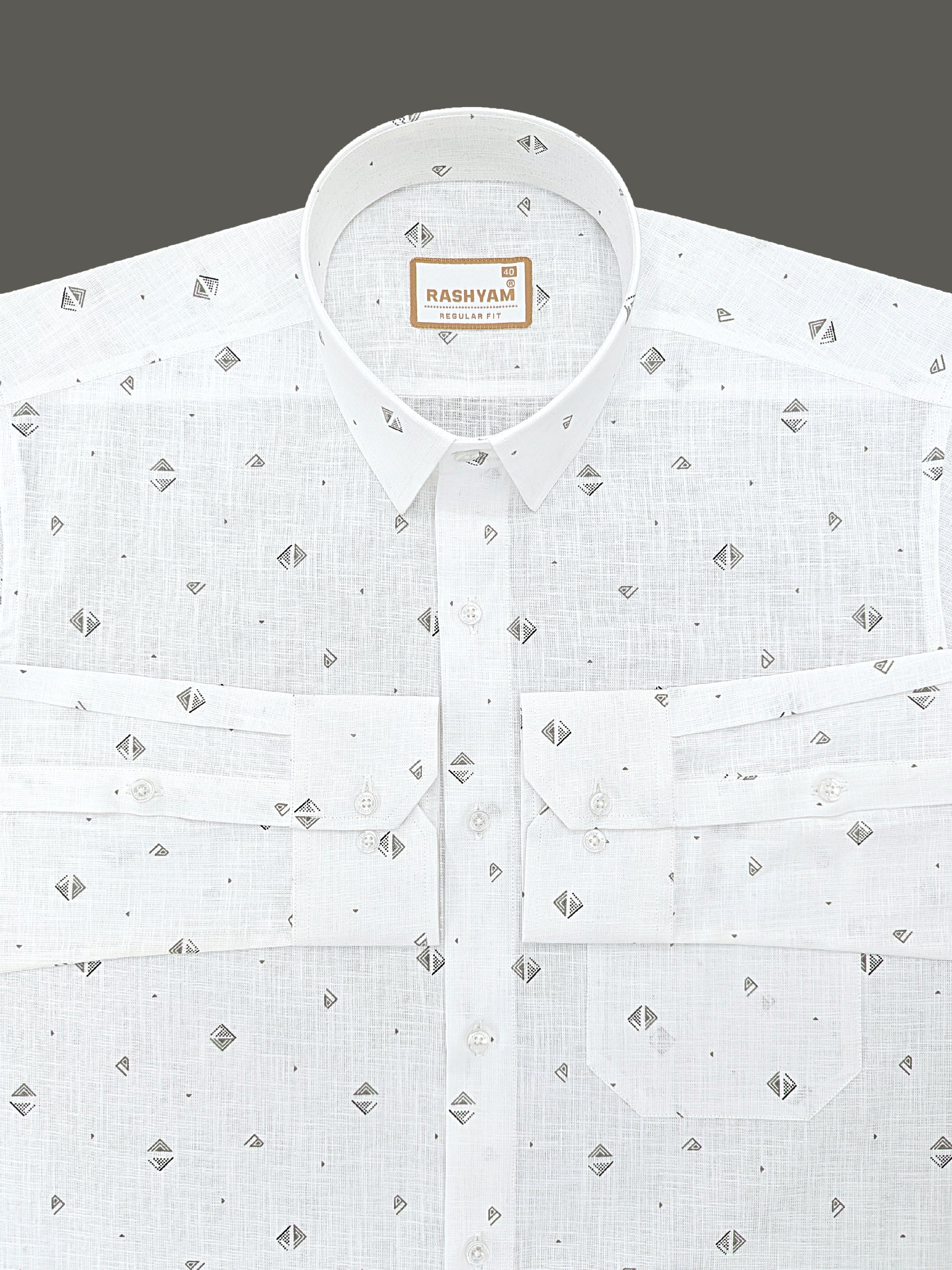 Manarola Premium Linen Cotton Grey With Blue Digital Pyramid Print Formal Shirt