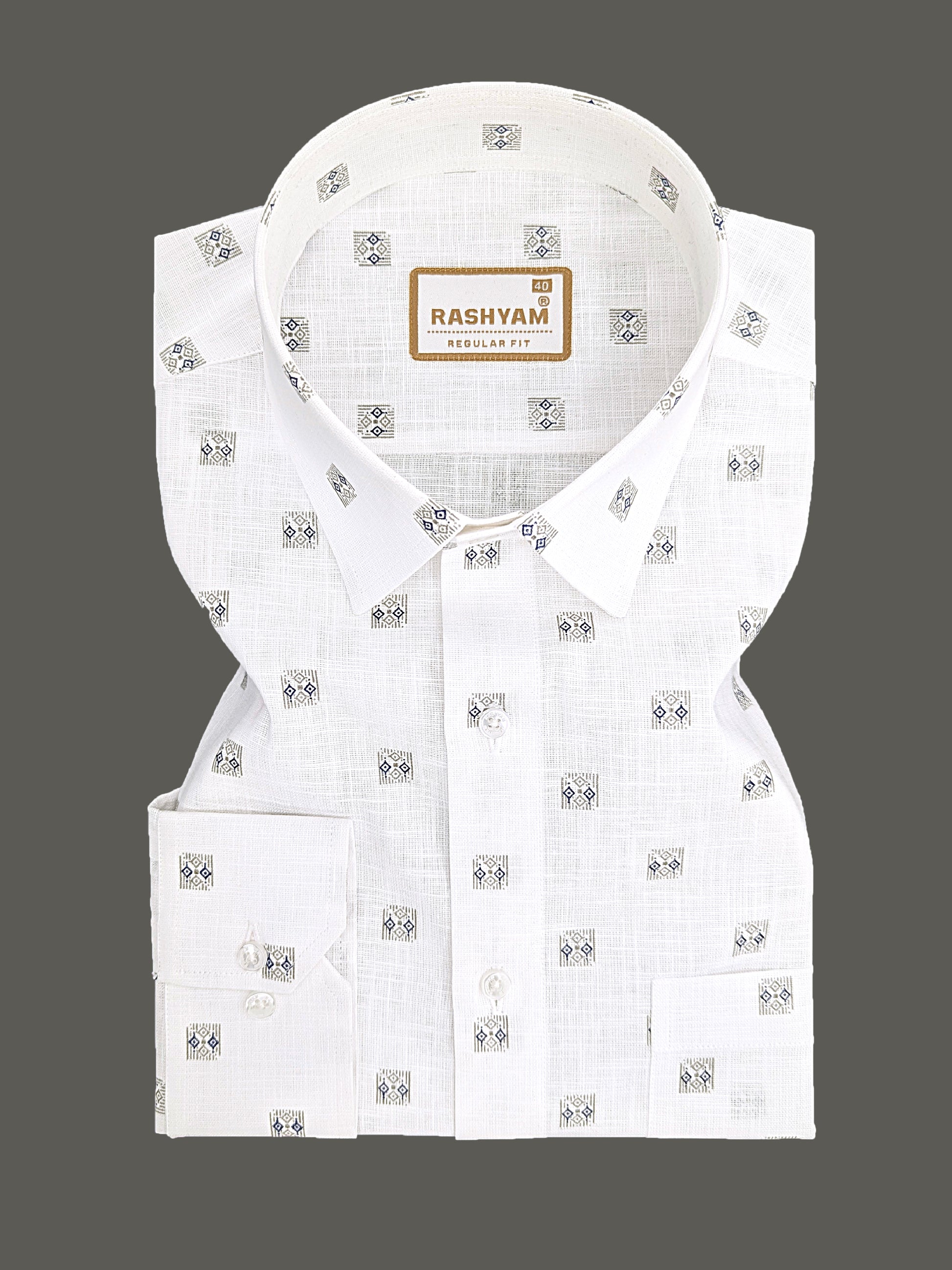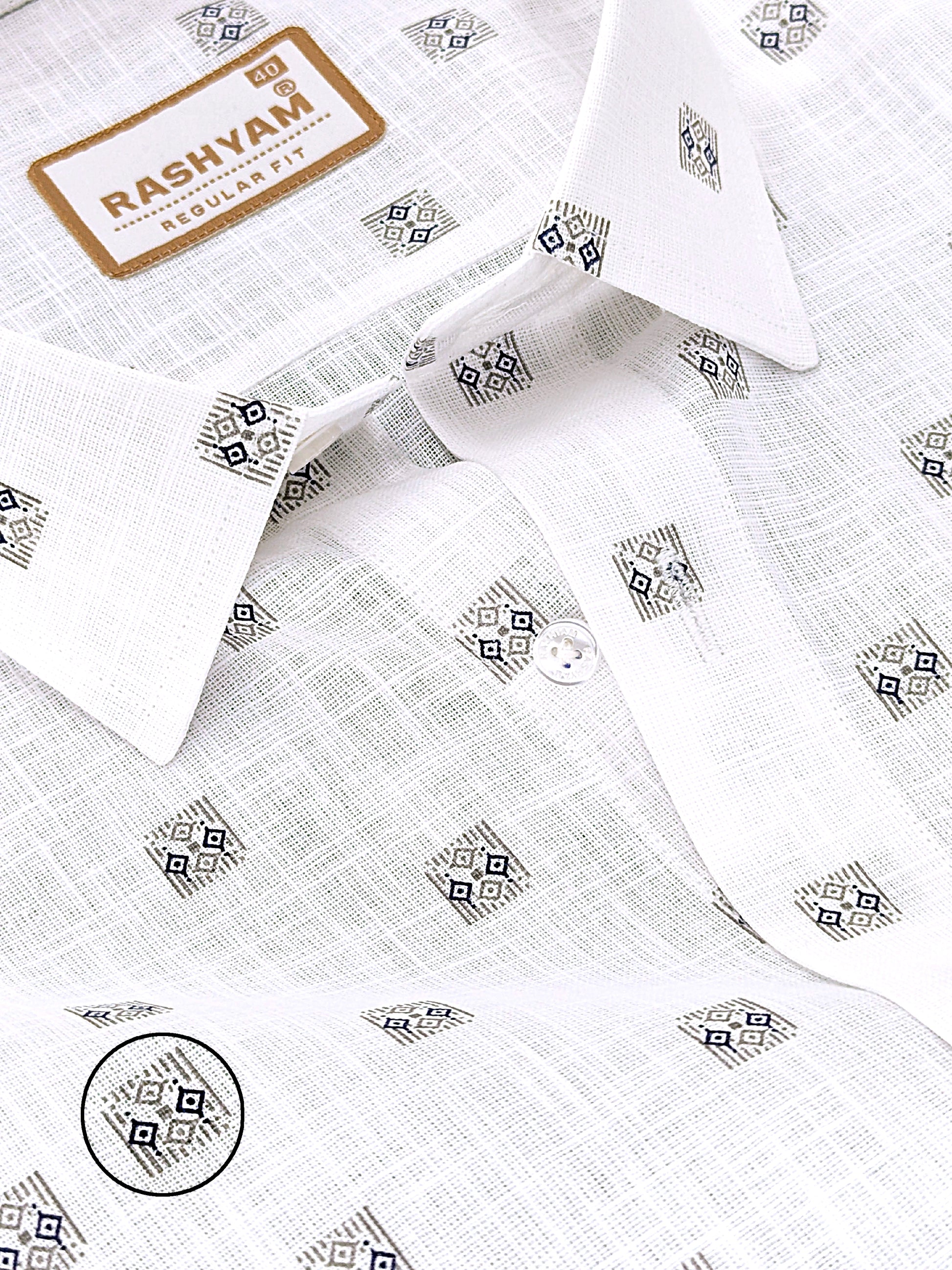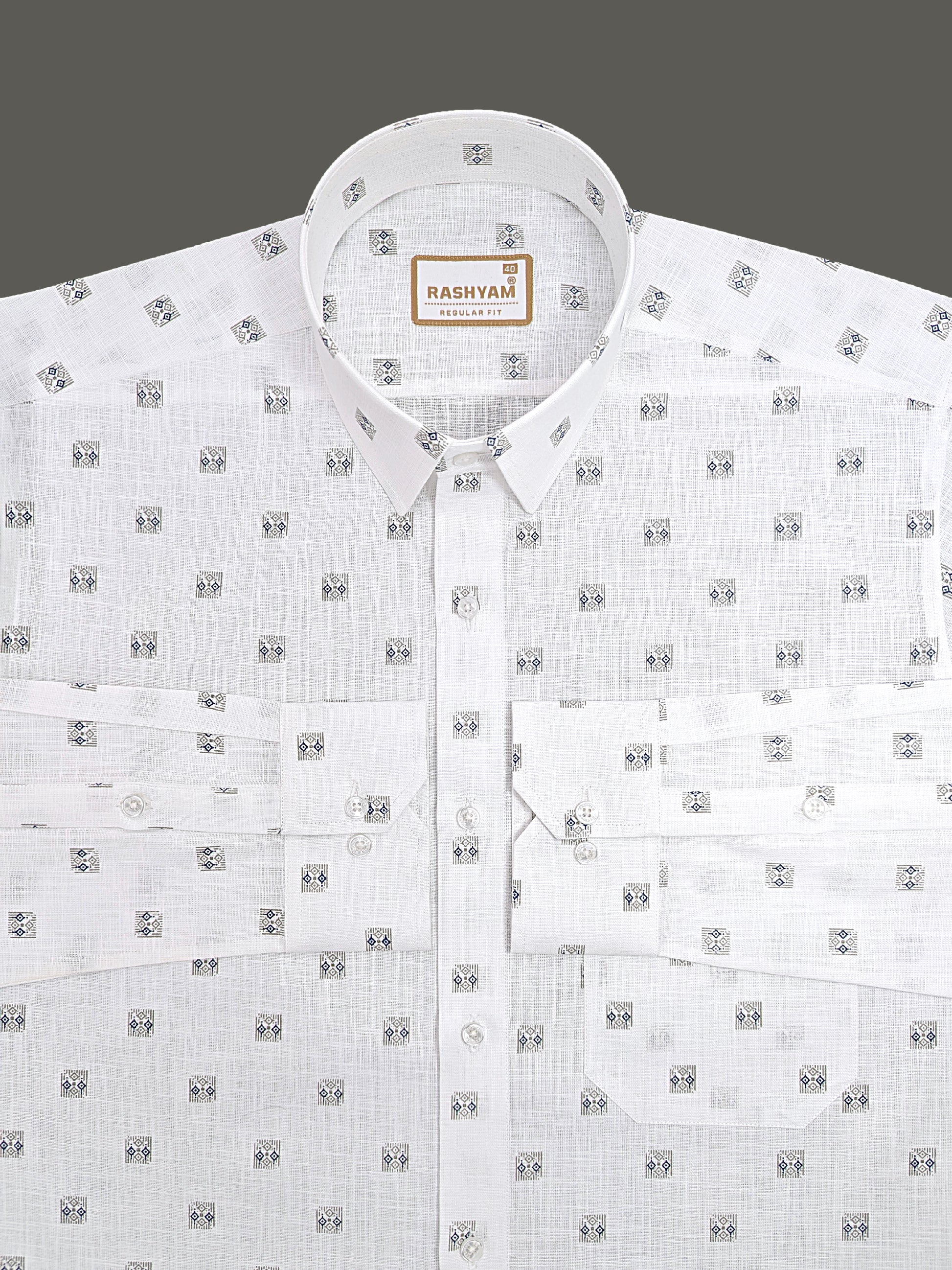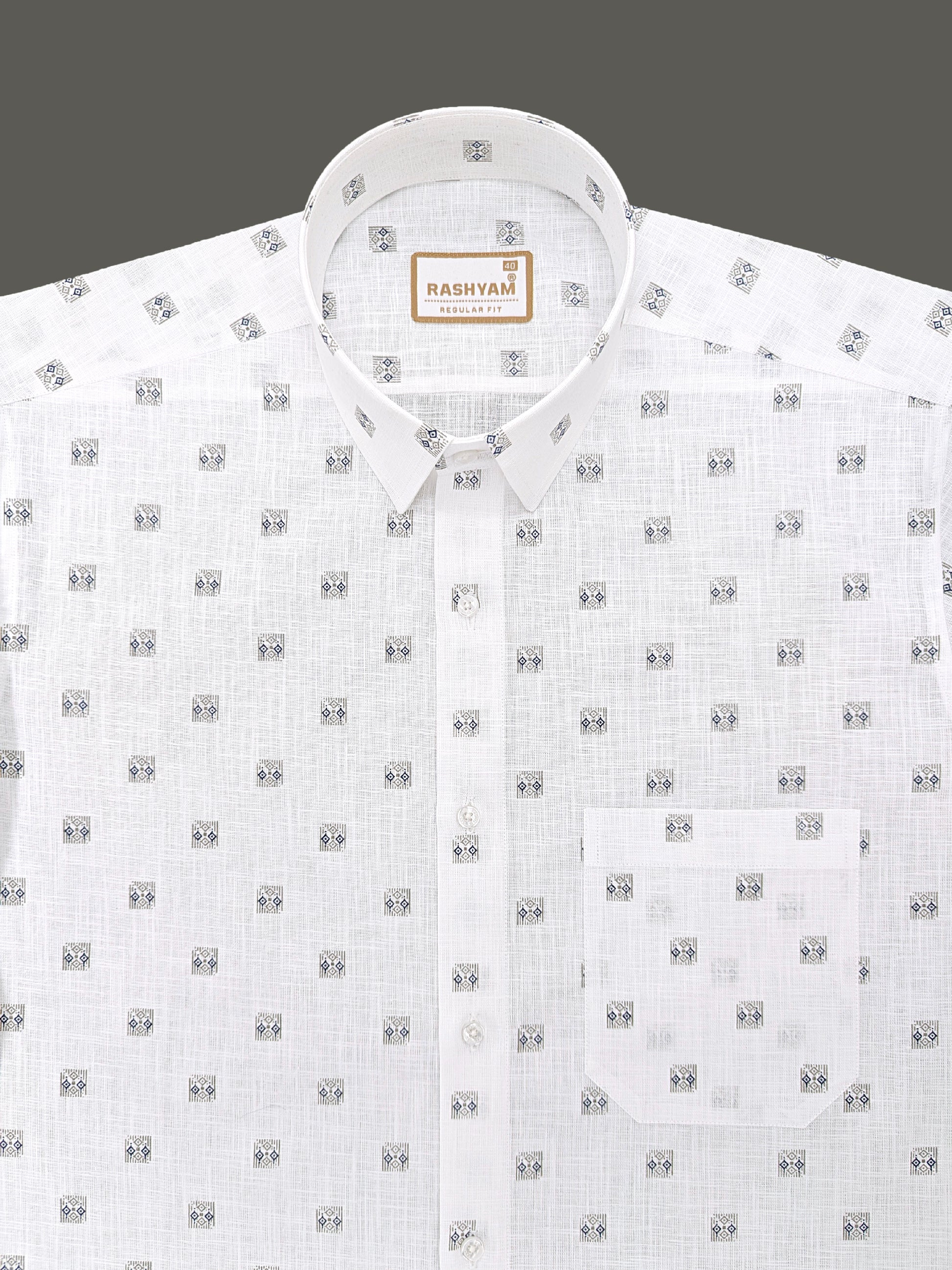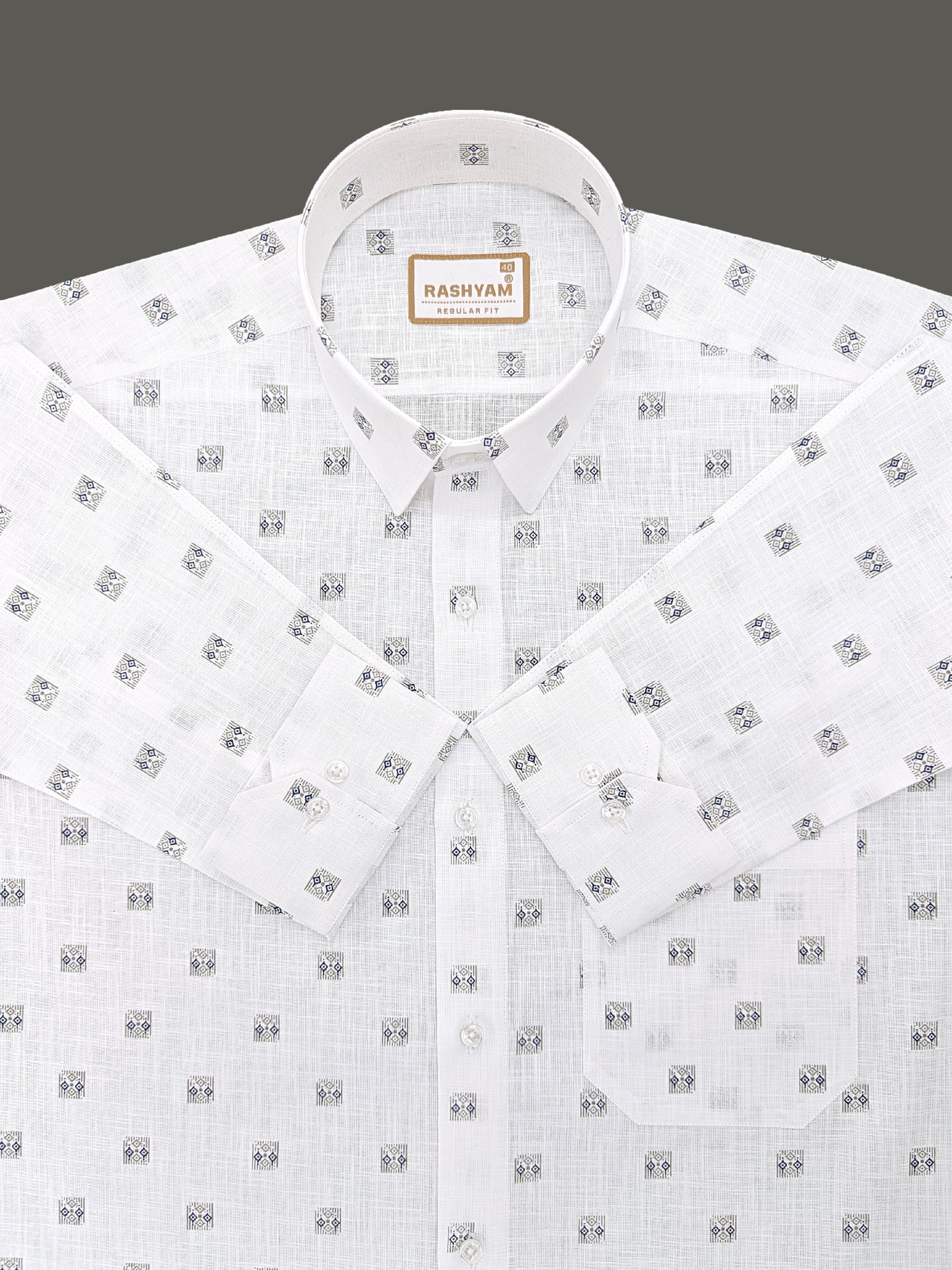 Manarola Premium Linen Cotton Grey With Navy Geo Classic Buta Formal Shirt