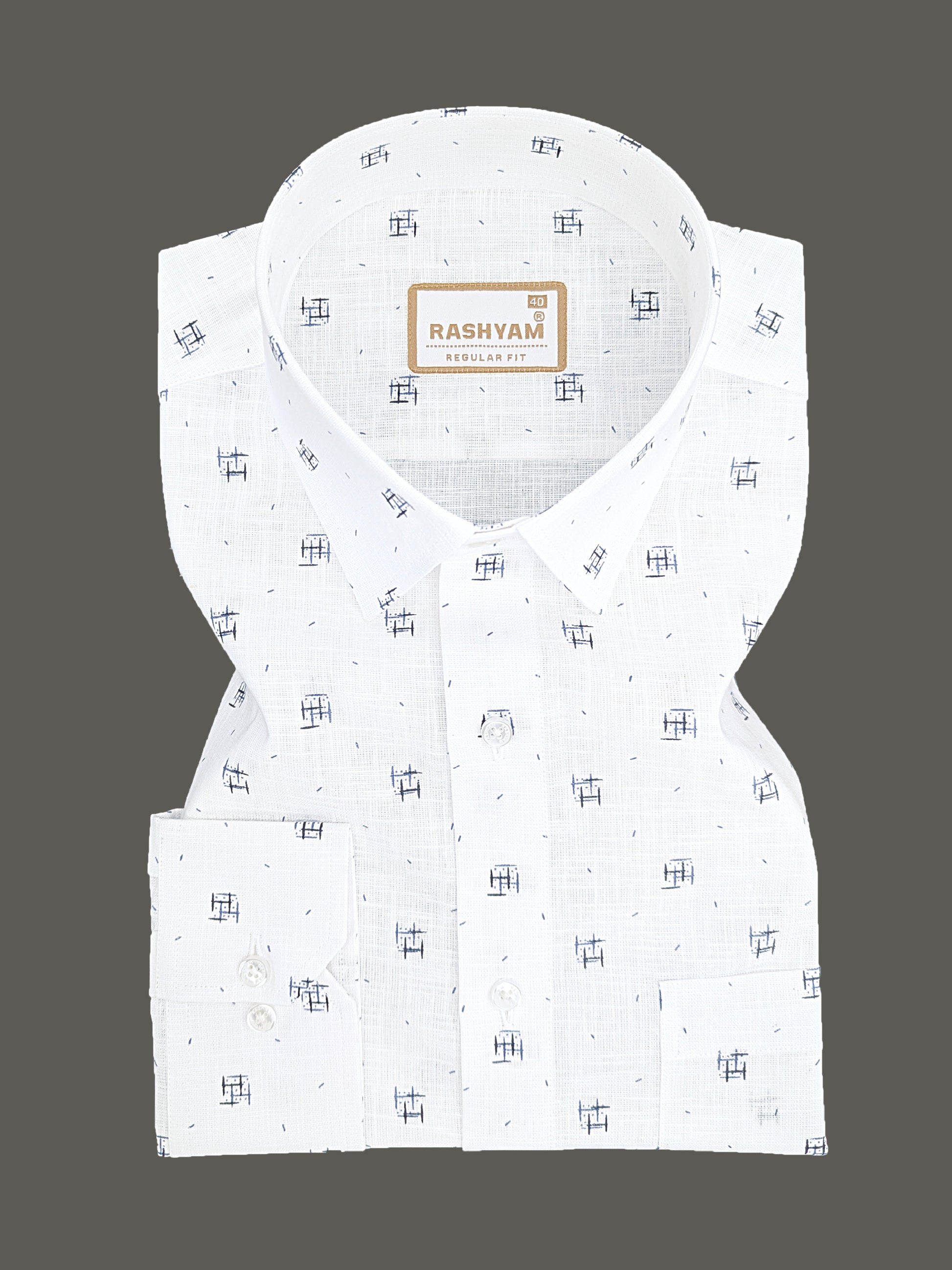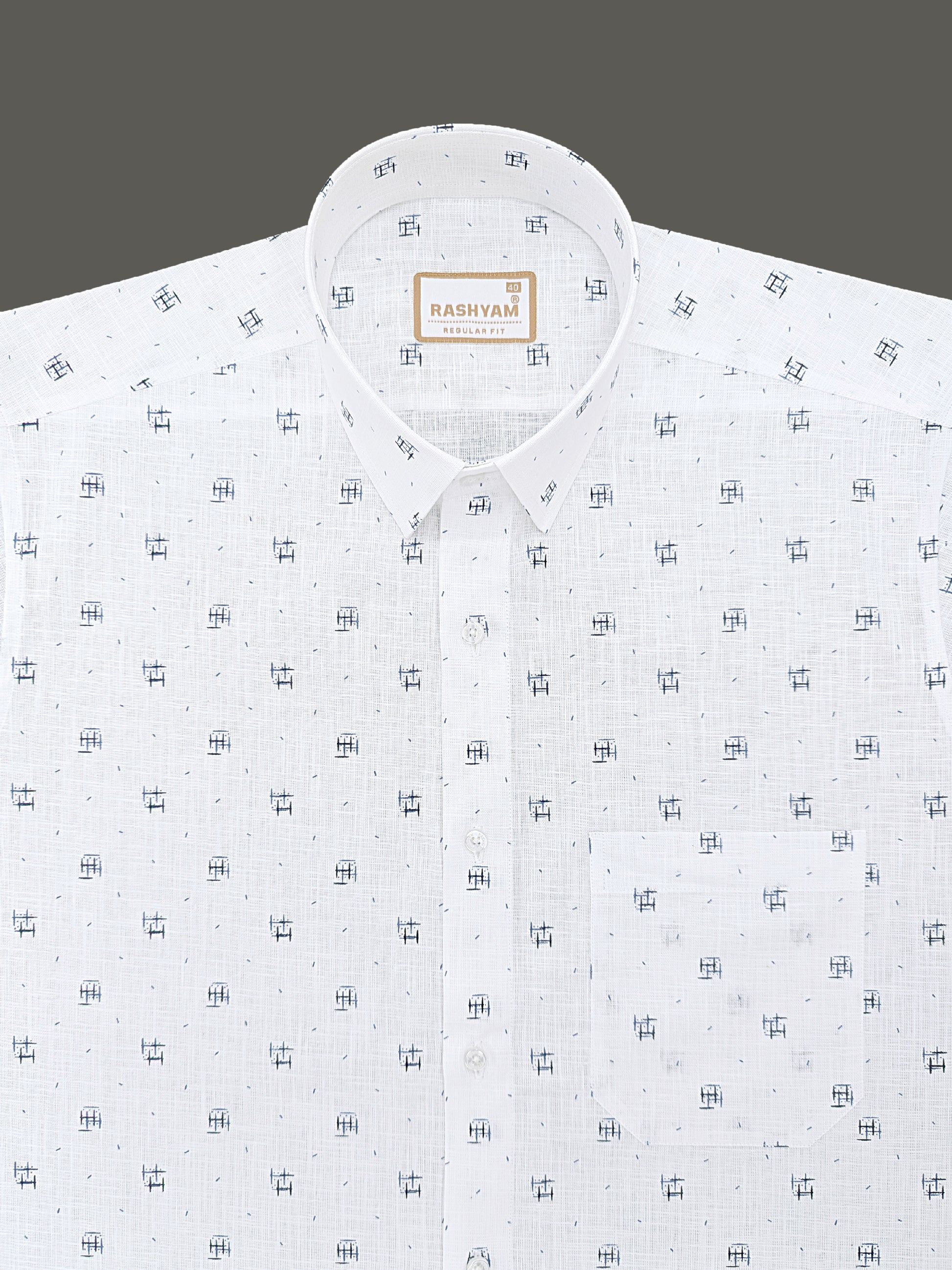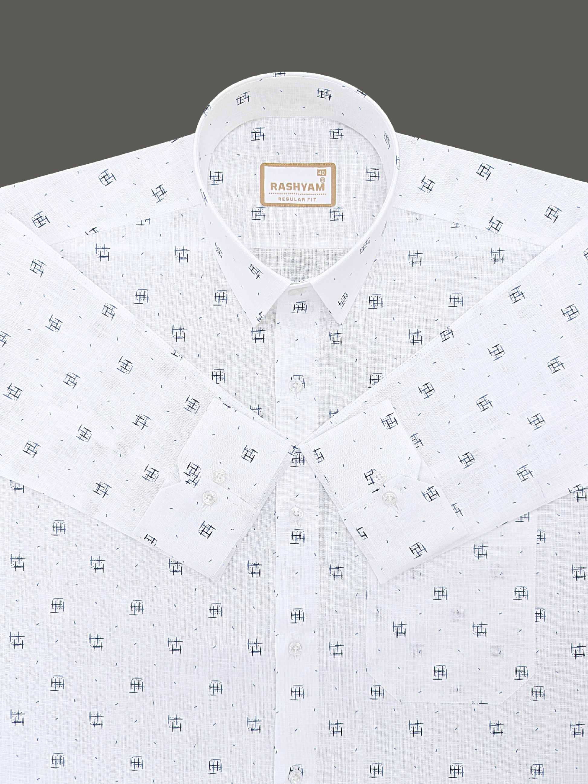 Manarola Premium Linen Cotton Navy Blue Geometric Grid Buta print Formal Shirt