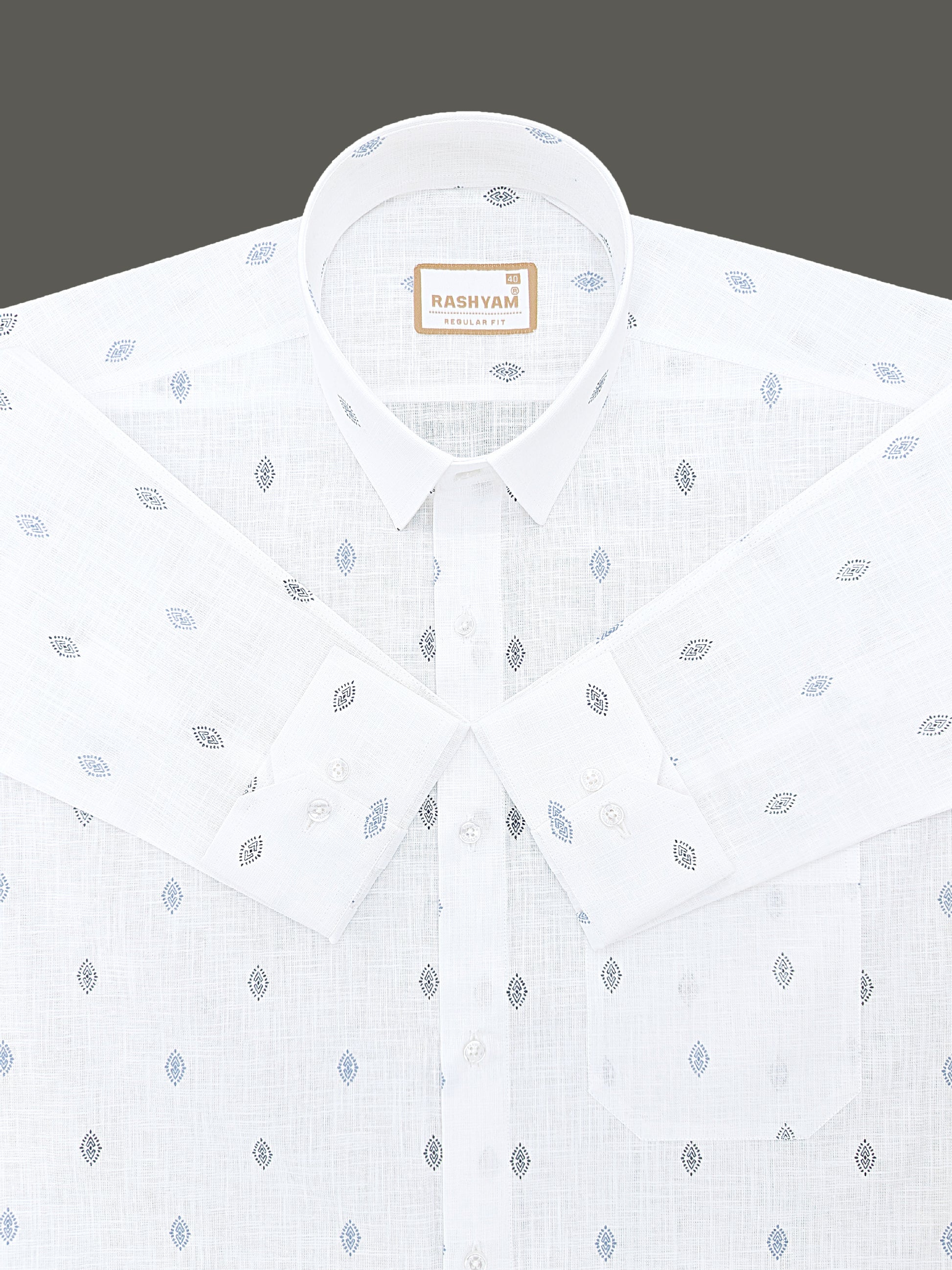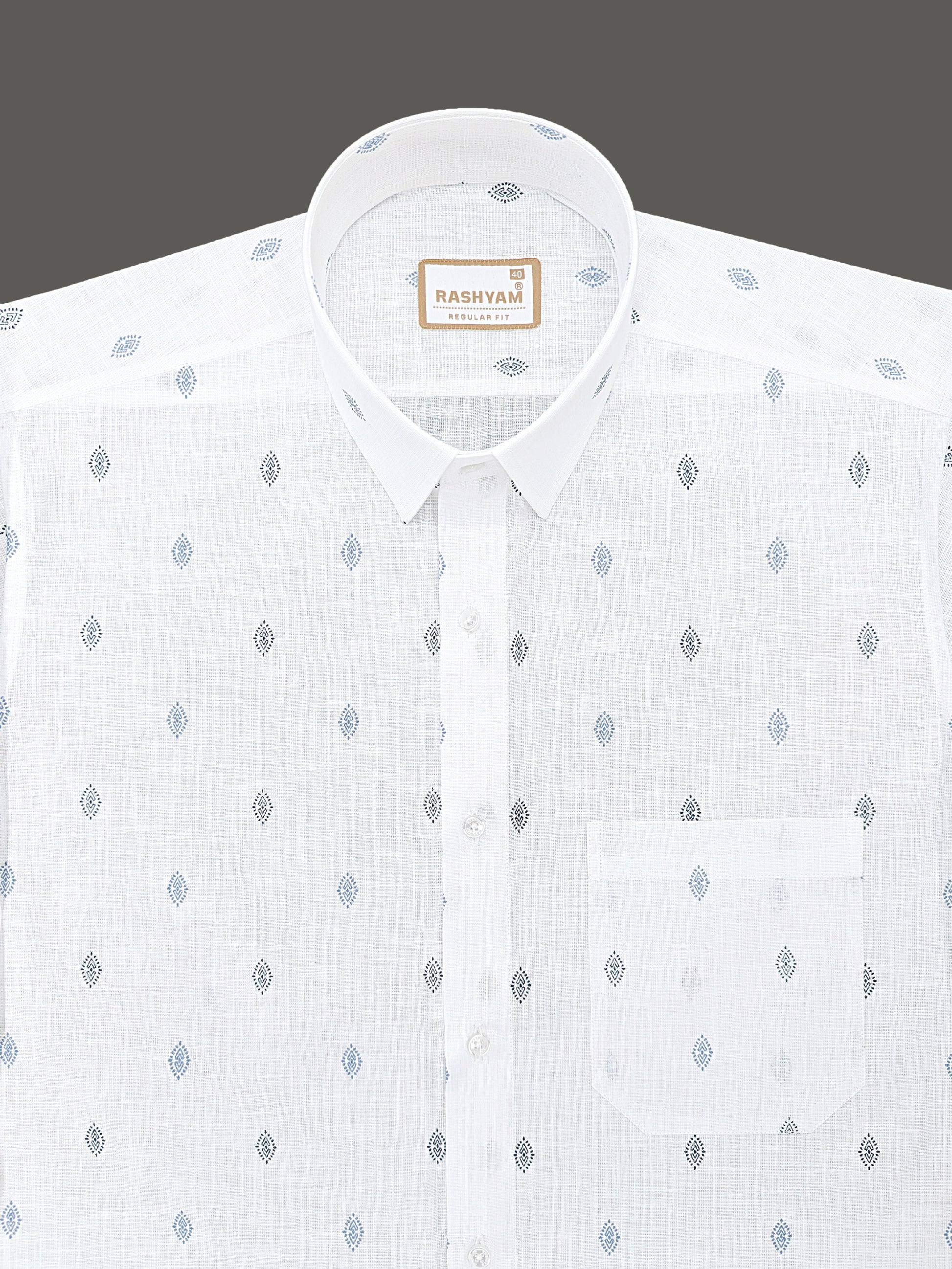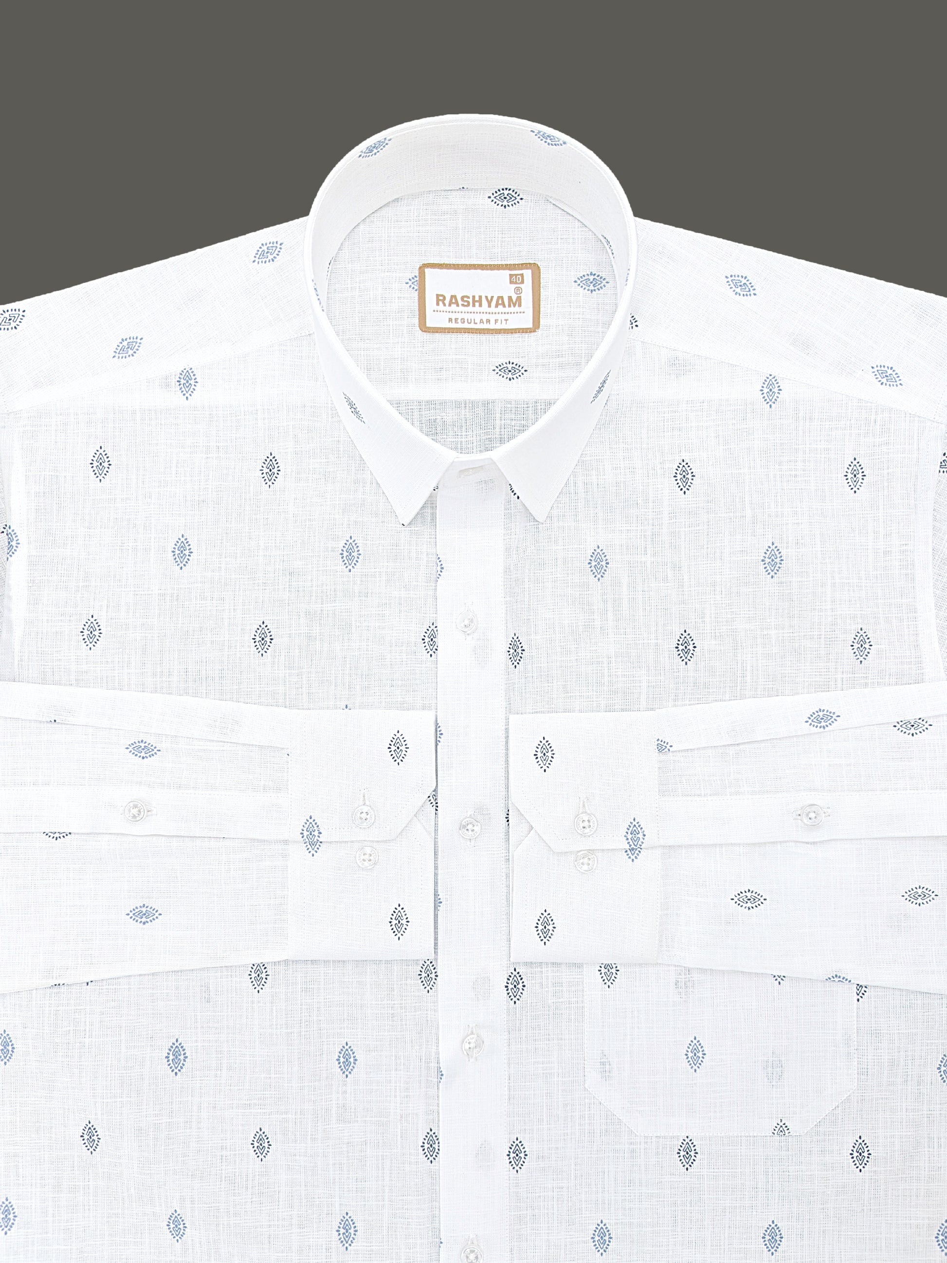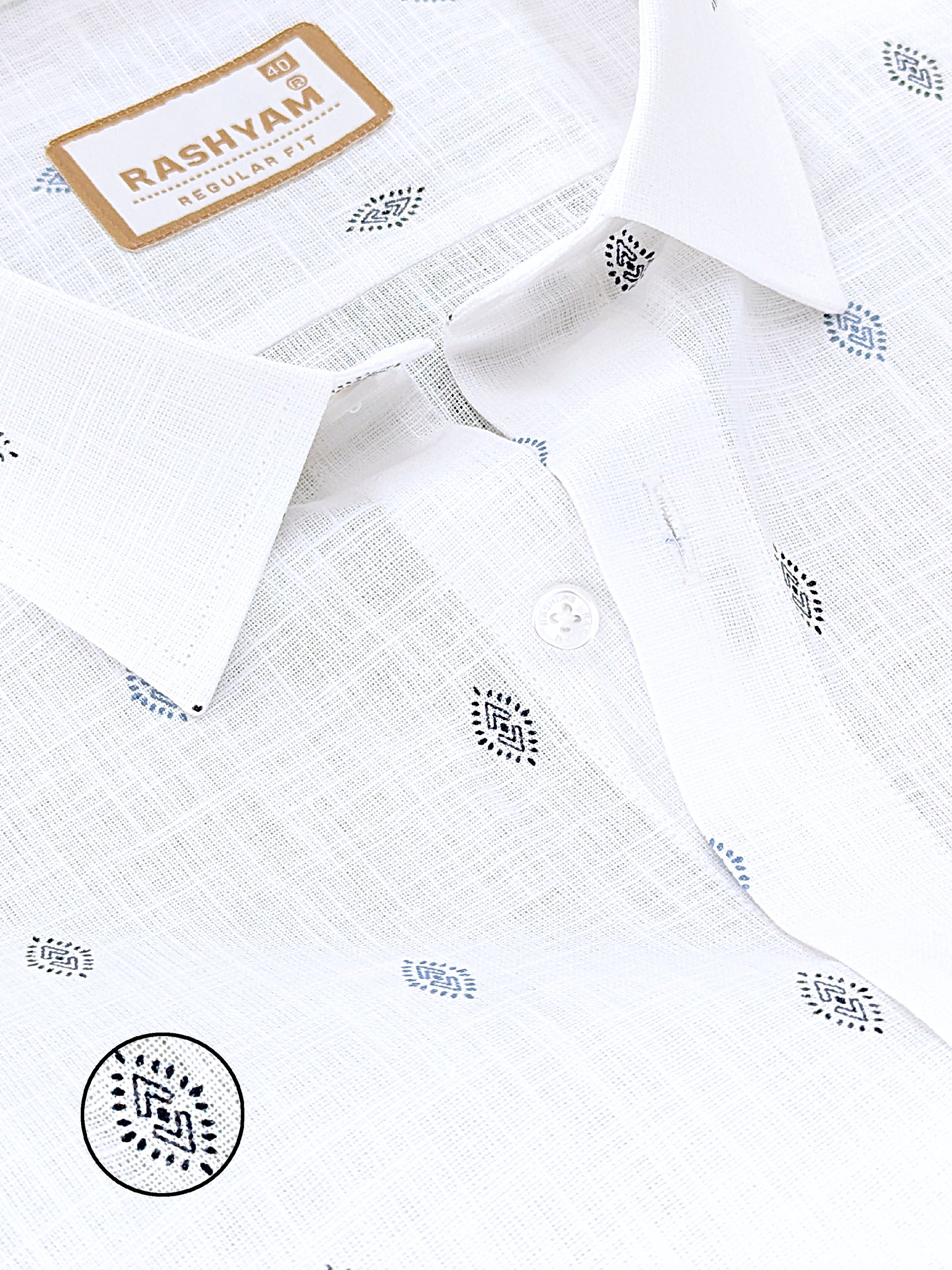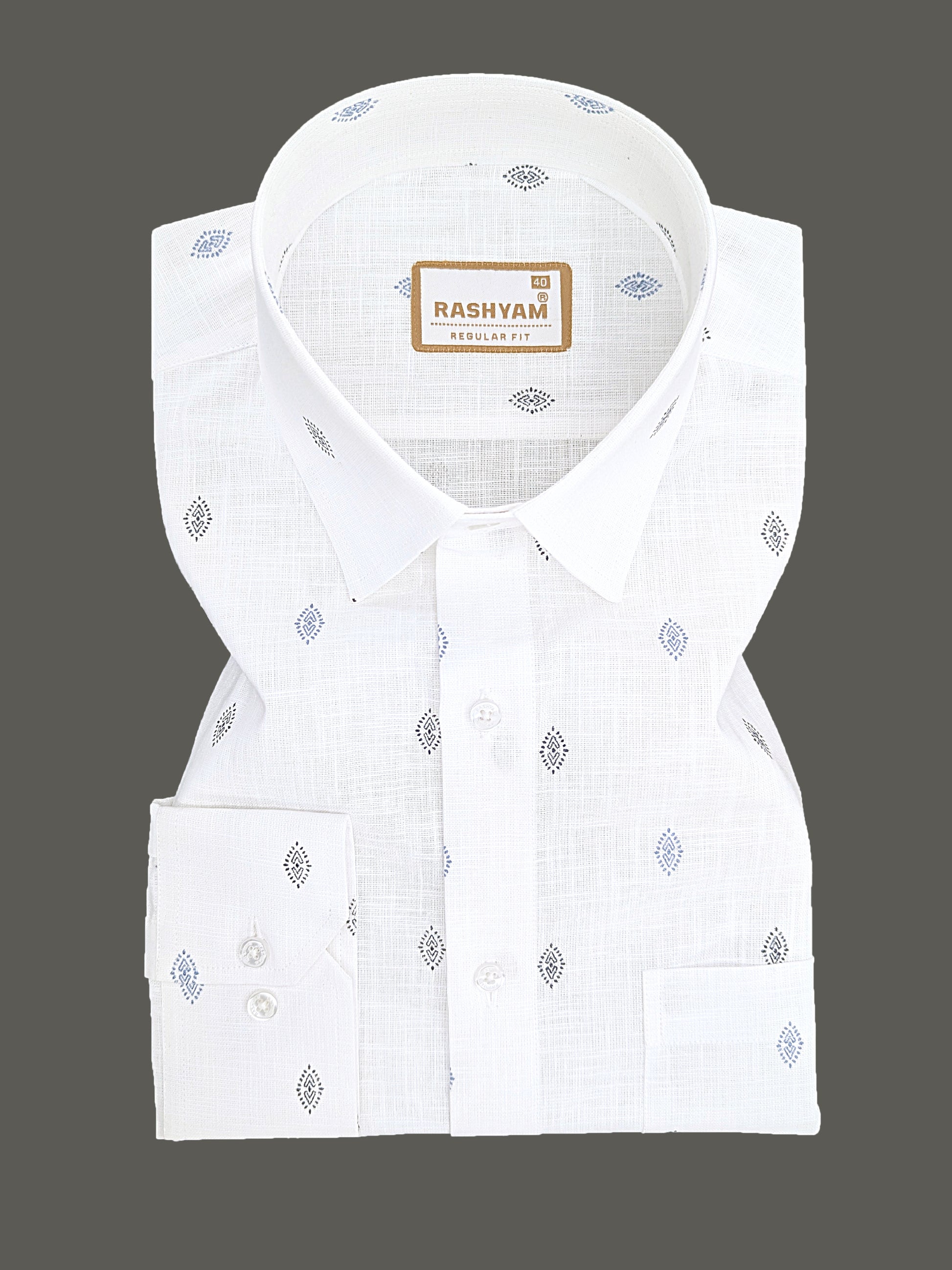 Manarola Premium Linen Cotton Navy Tribal Eye Motif Print Formal Shirt