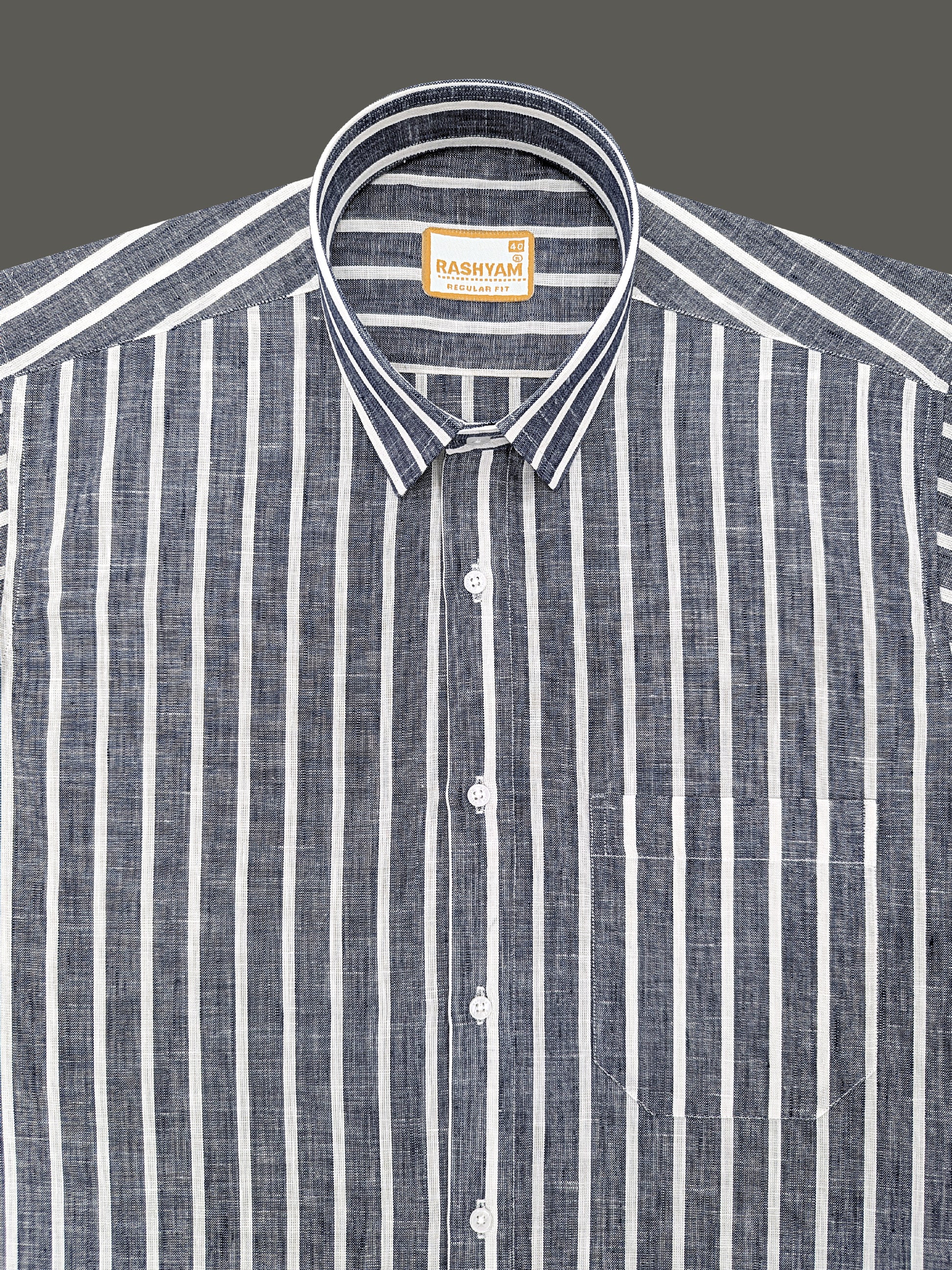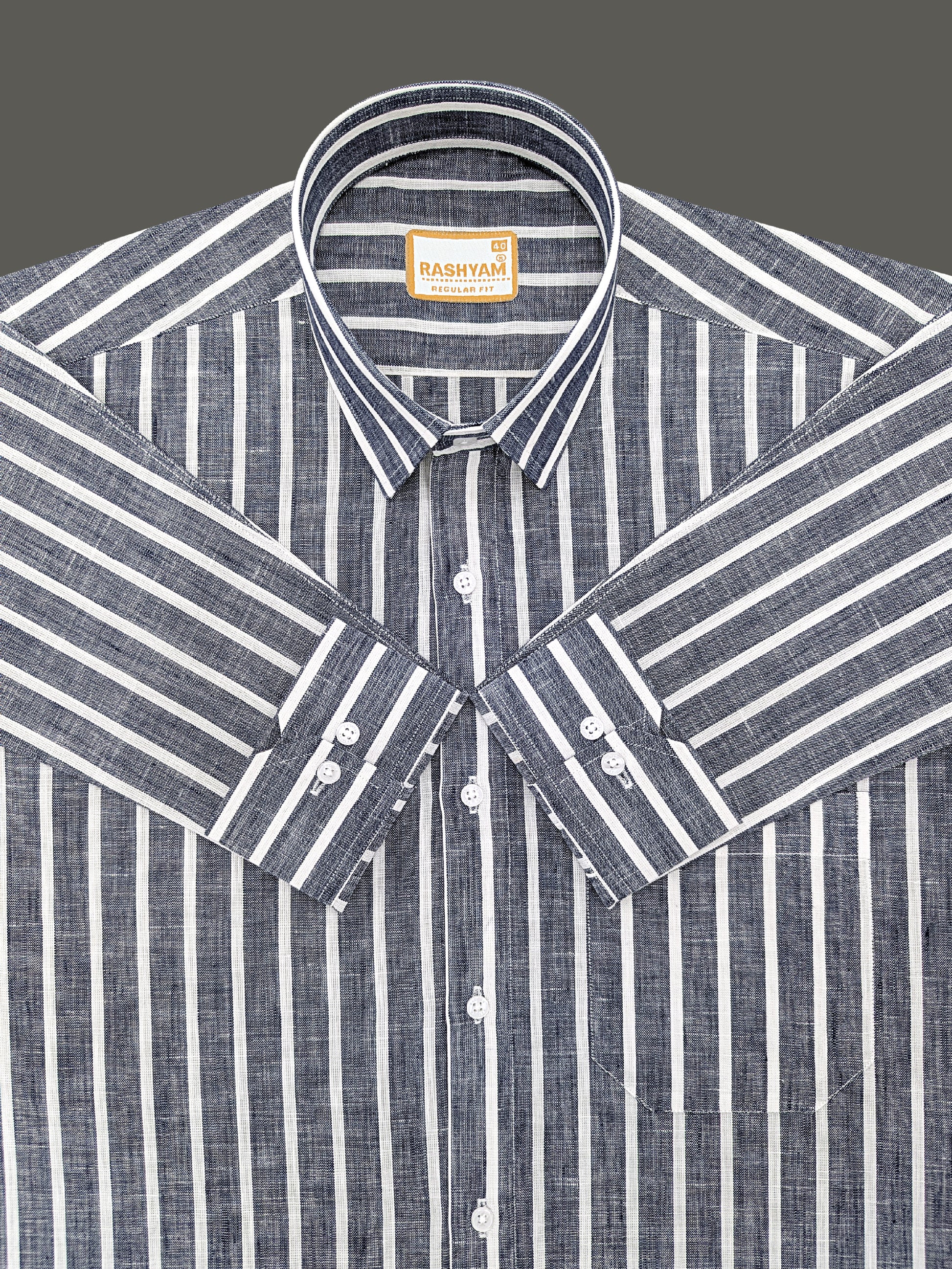 Manarola Premium Linen Cotton White Line On Navy Blue Formal Shirt For men