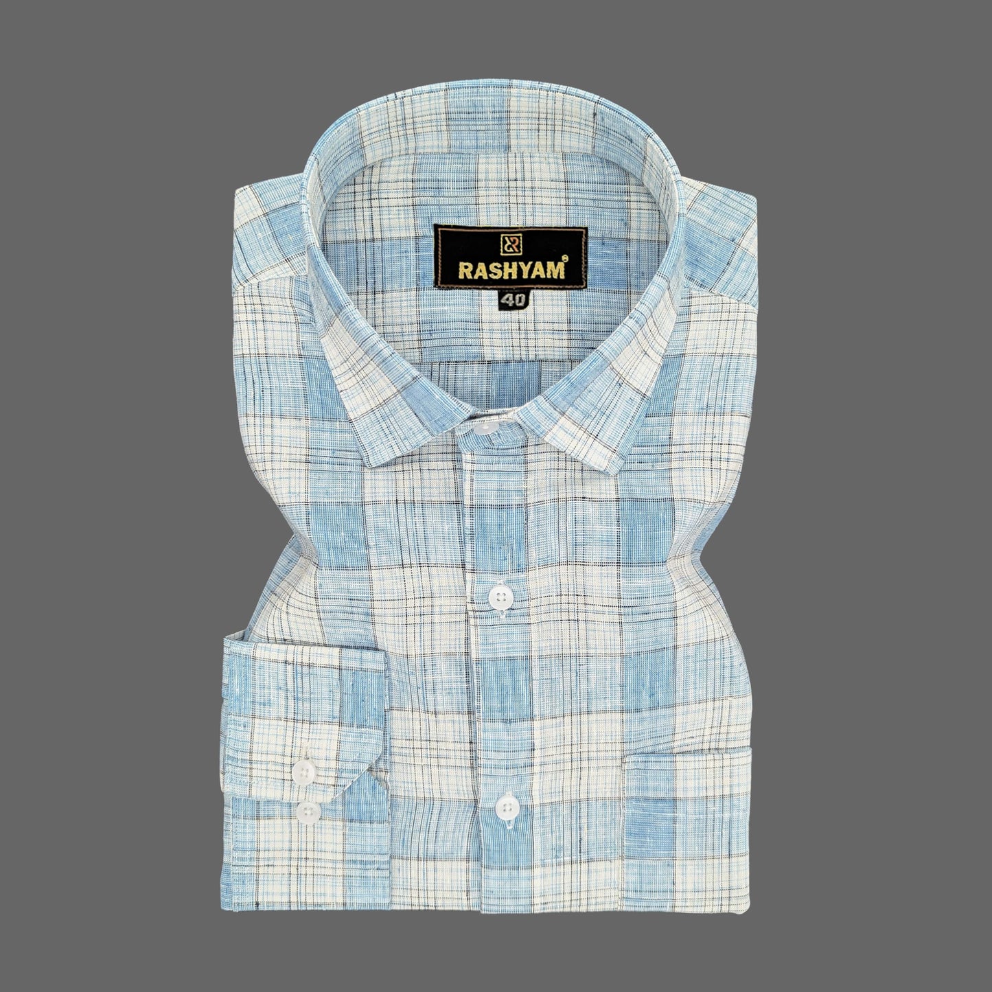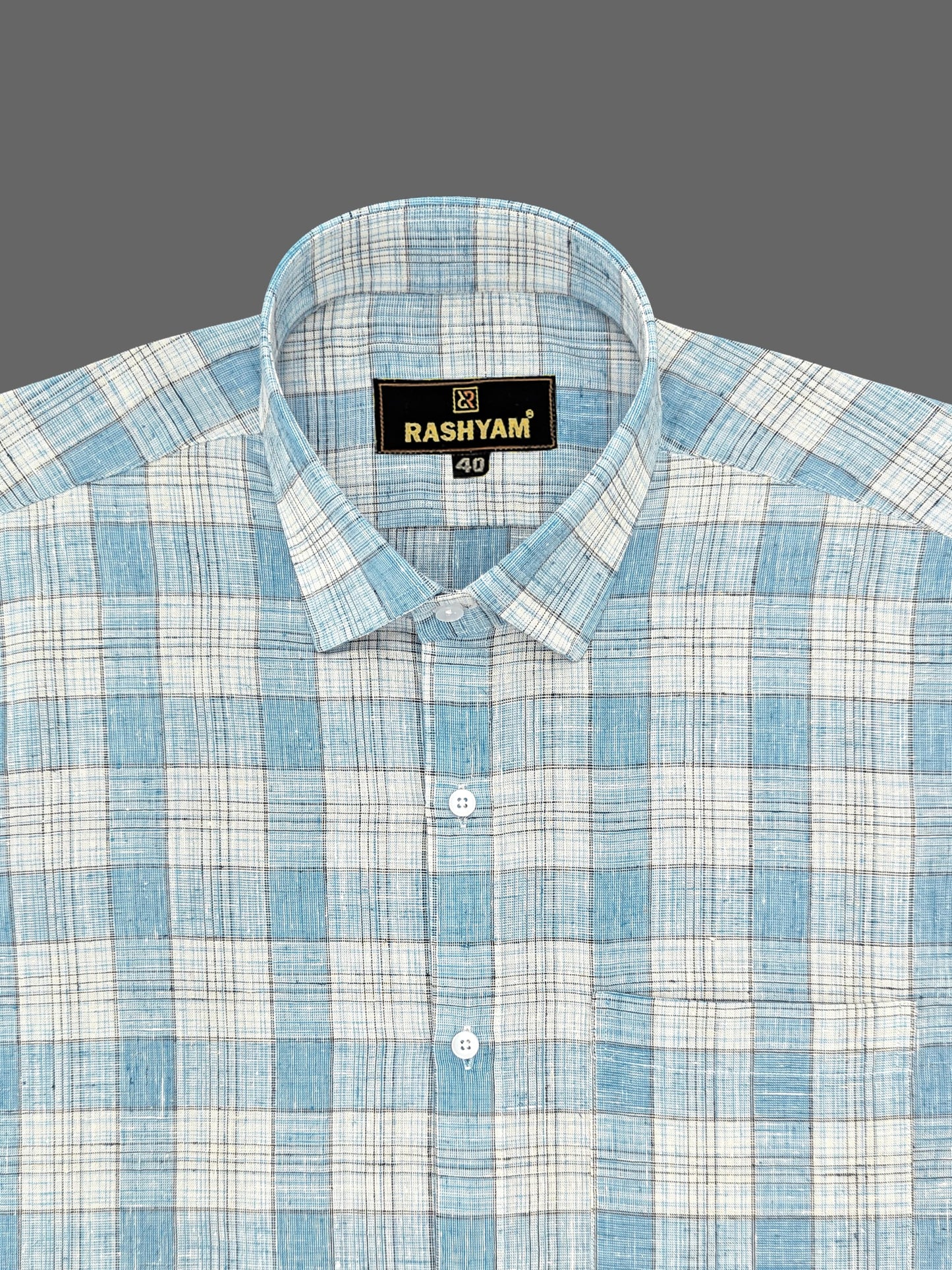 Premium Linen Cotton Greenish Cyan With Blue Checks Shirt For Men
