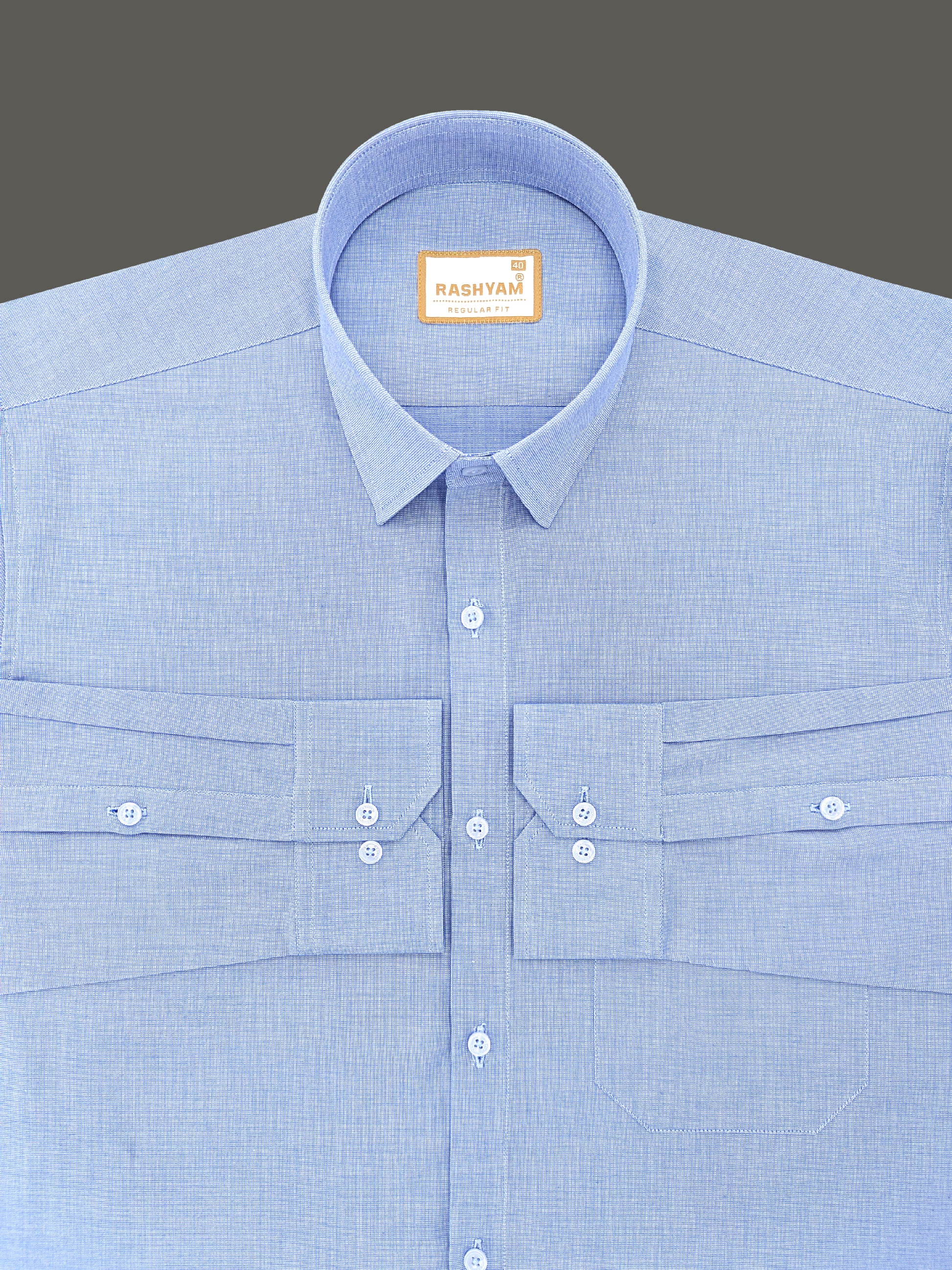 Merlino French Blue Luxury Giza Cotton Formal Shirt For Men