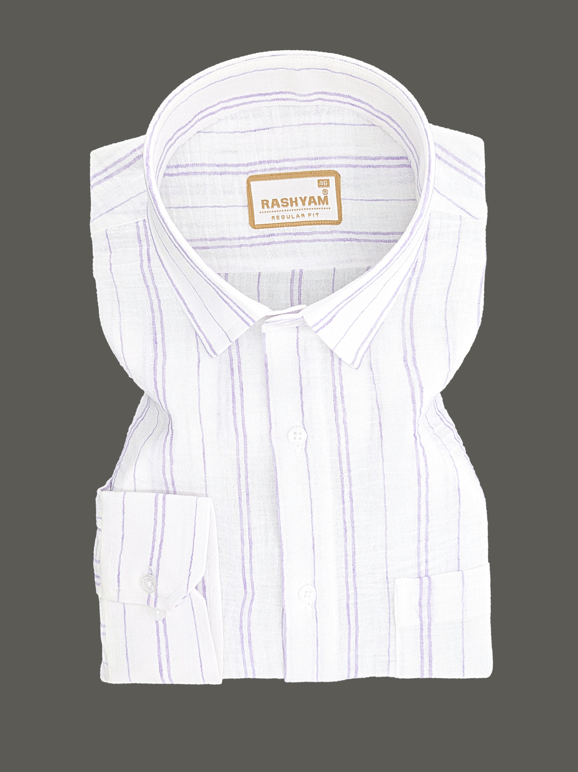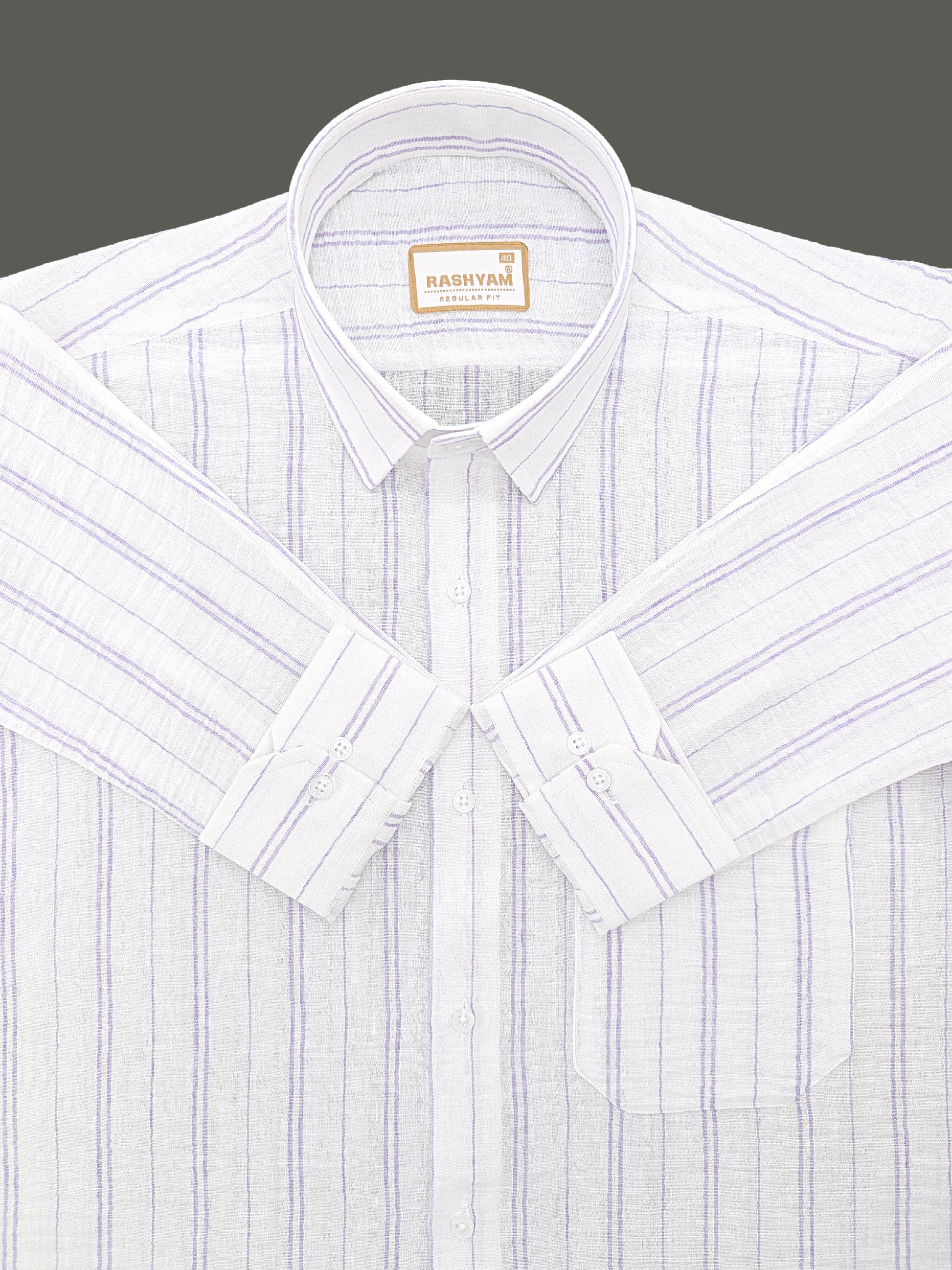 Milano Light Purple Double Line On White Formal Shirt For Men