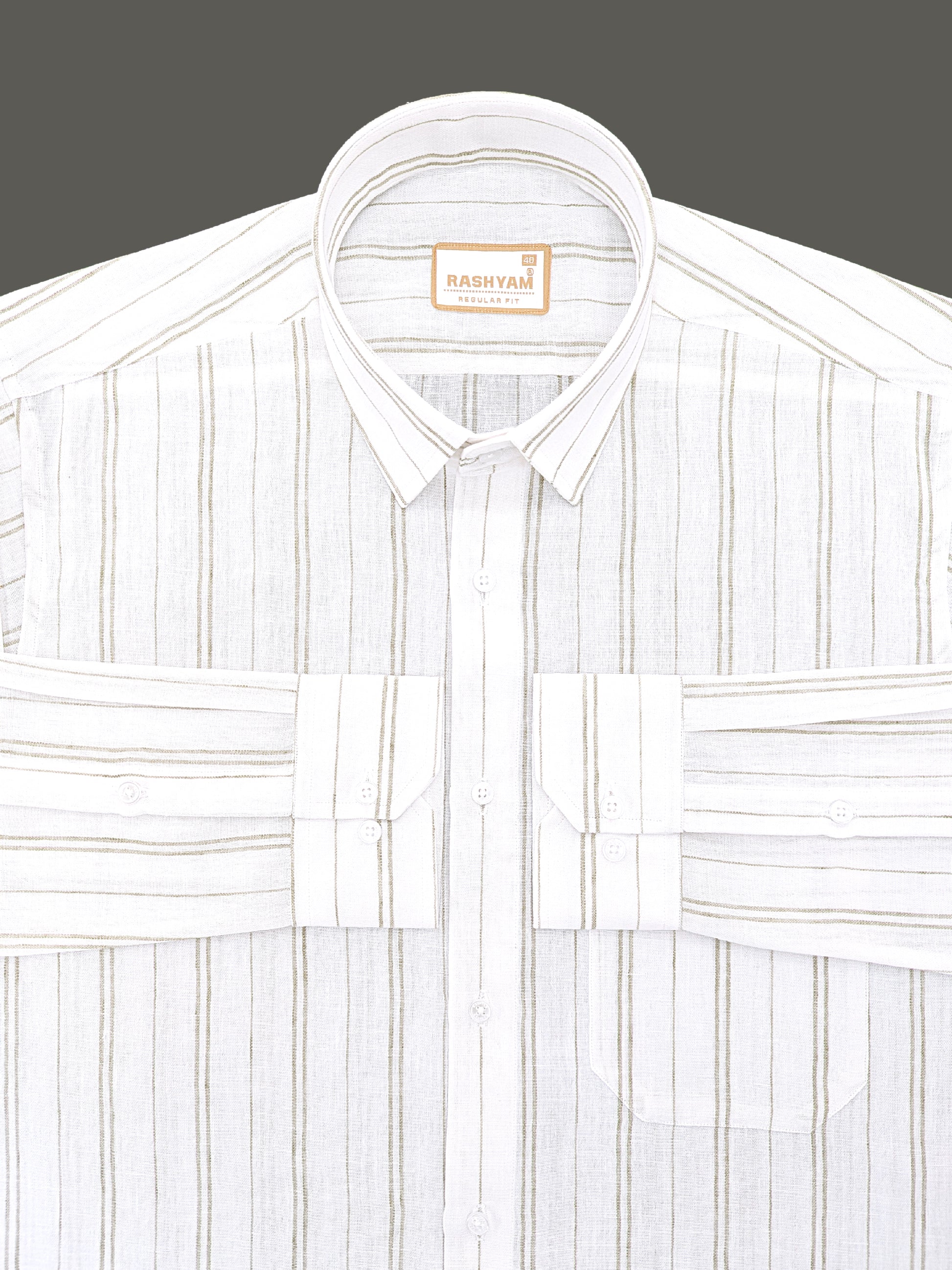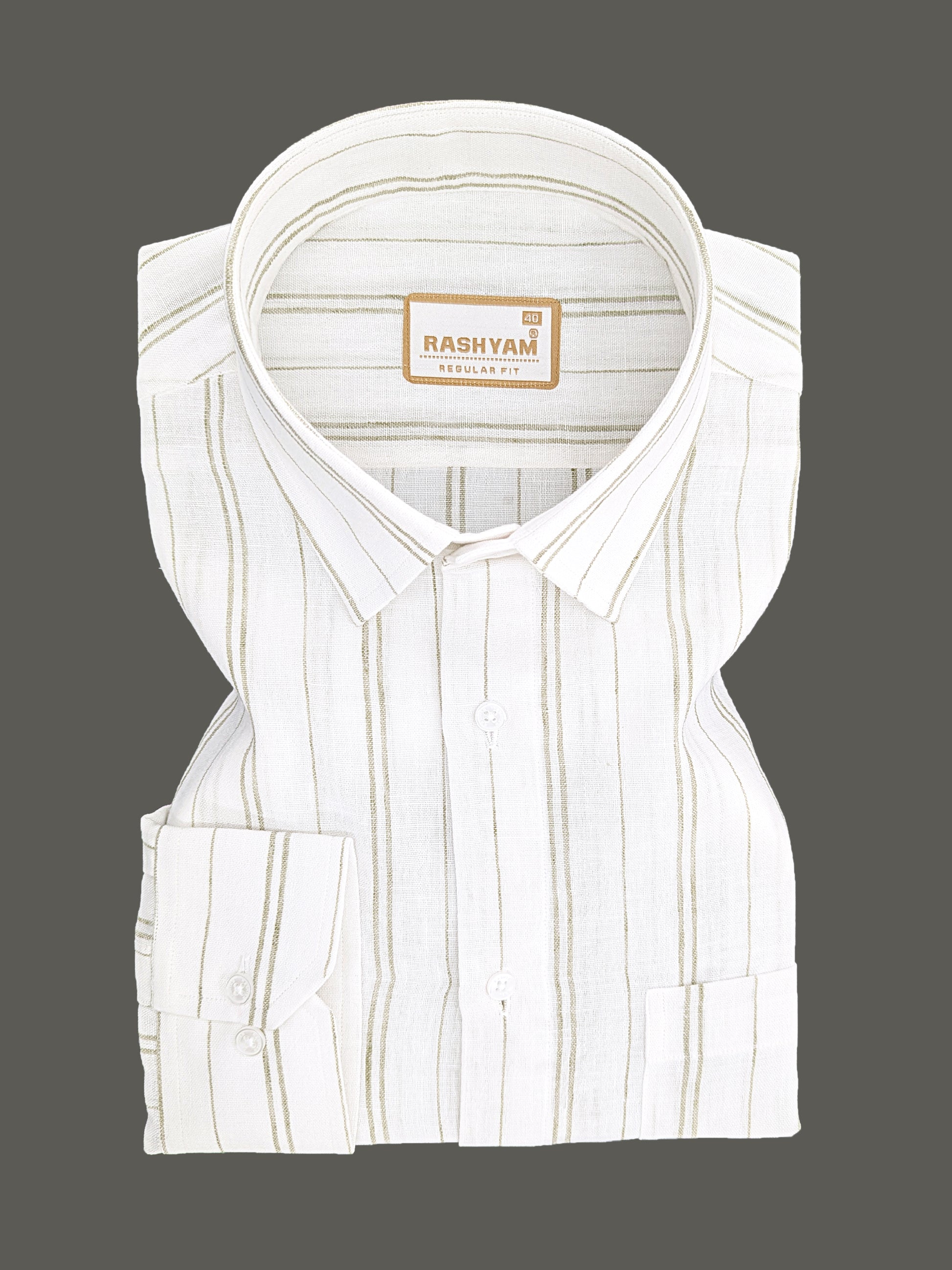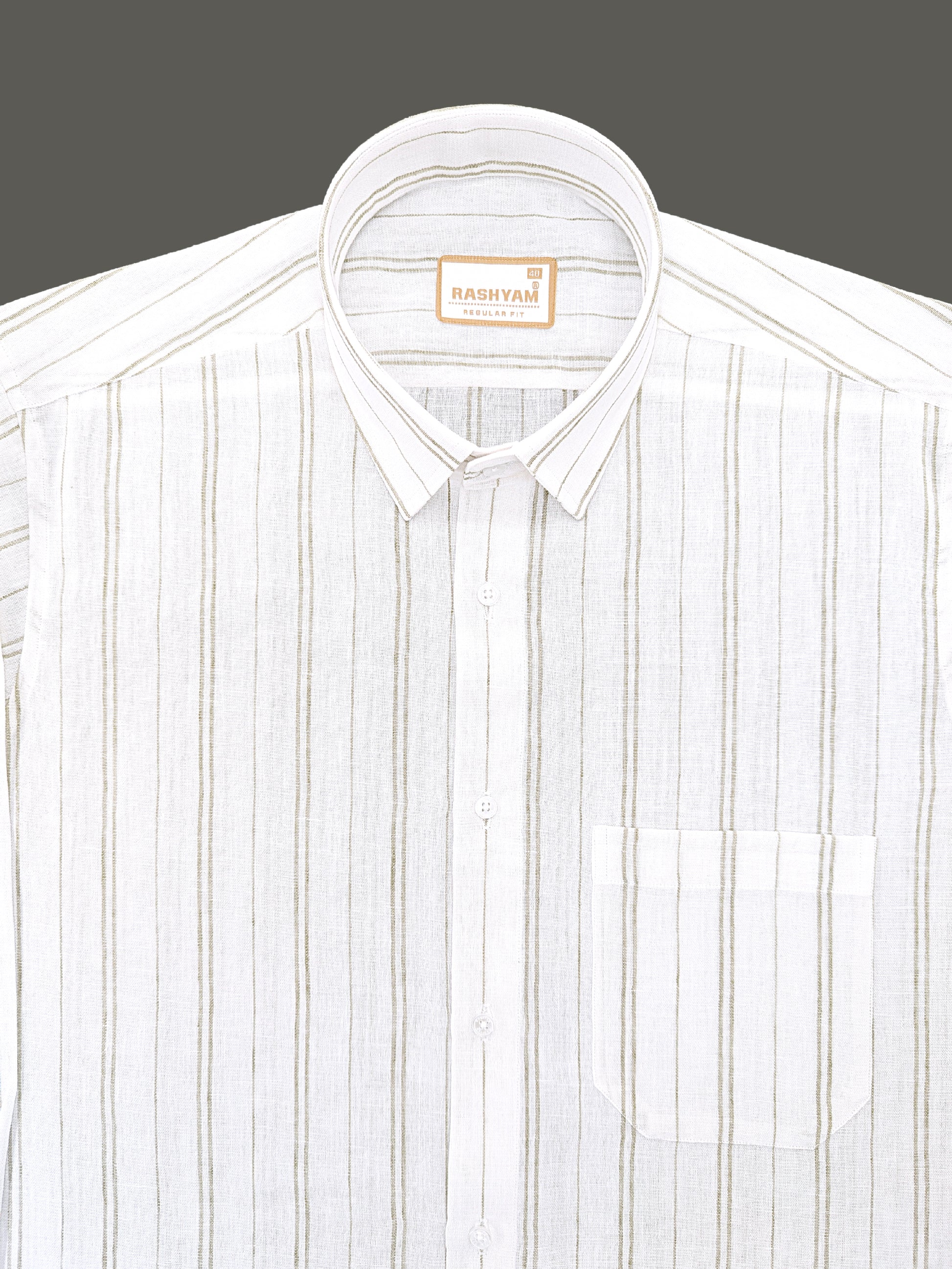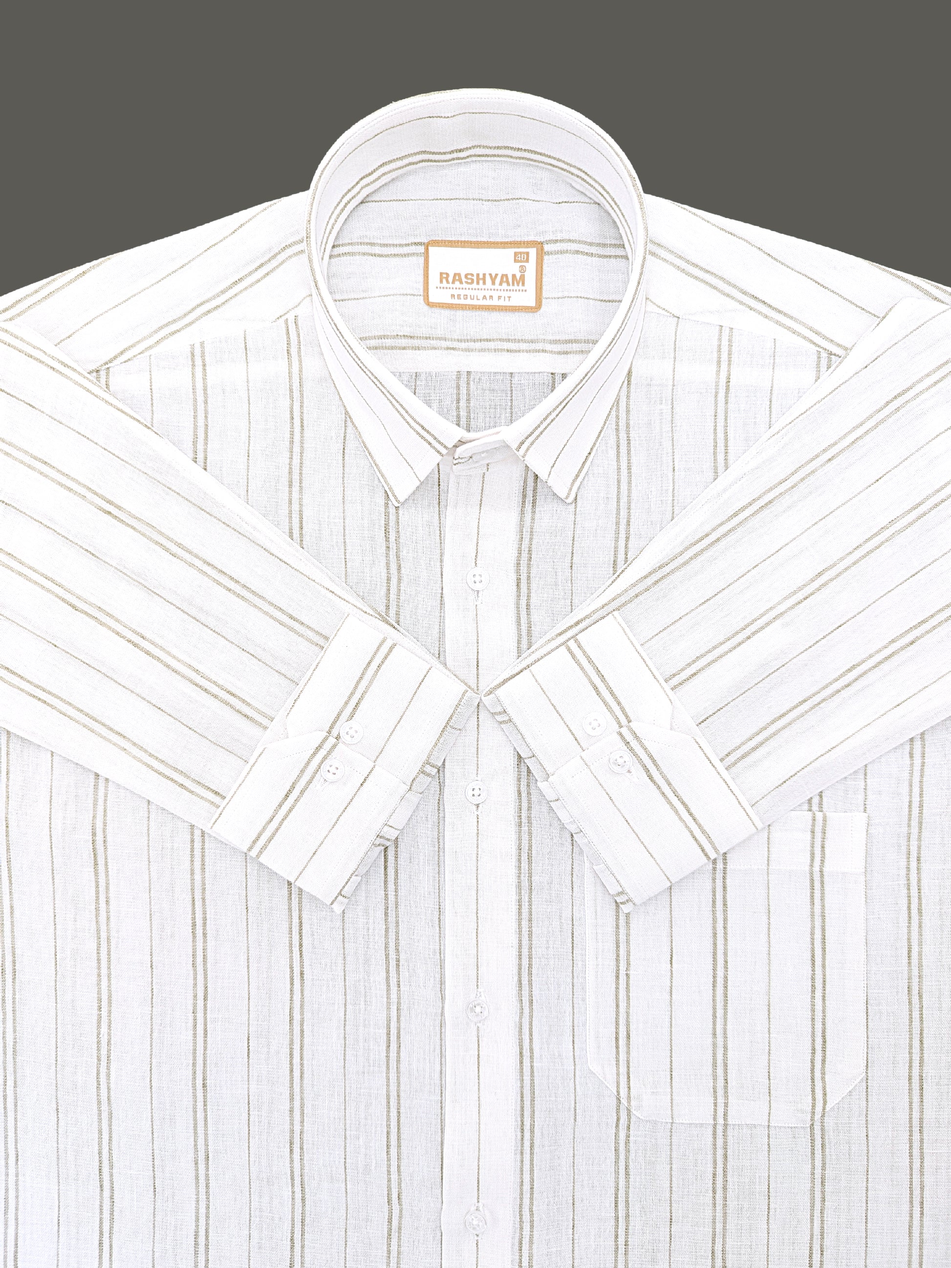 Premium Linen Cotton Bluish Light Line On Cream Shirt For Men