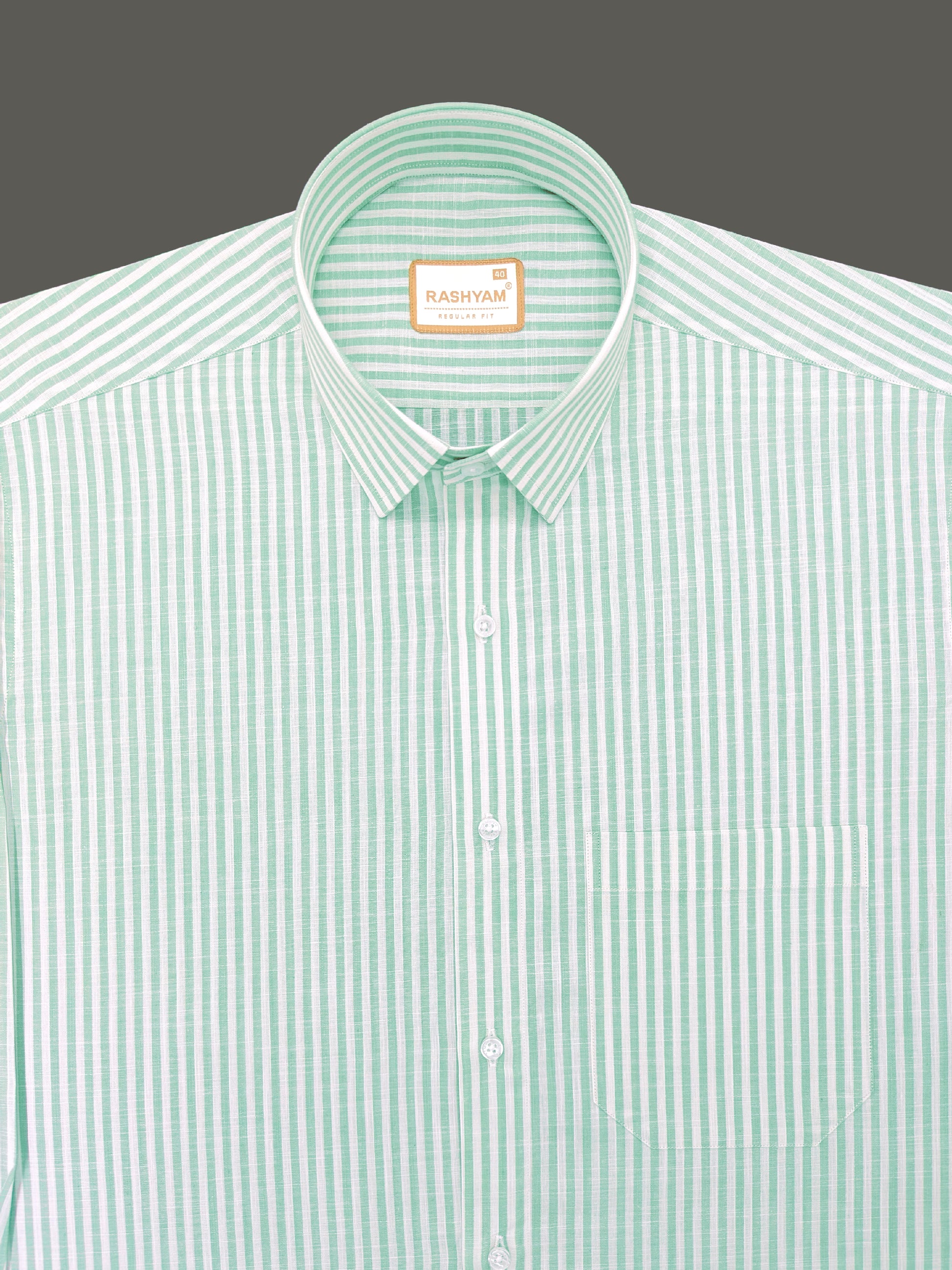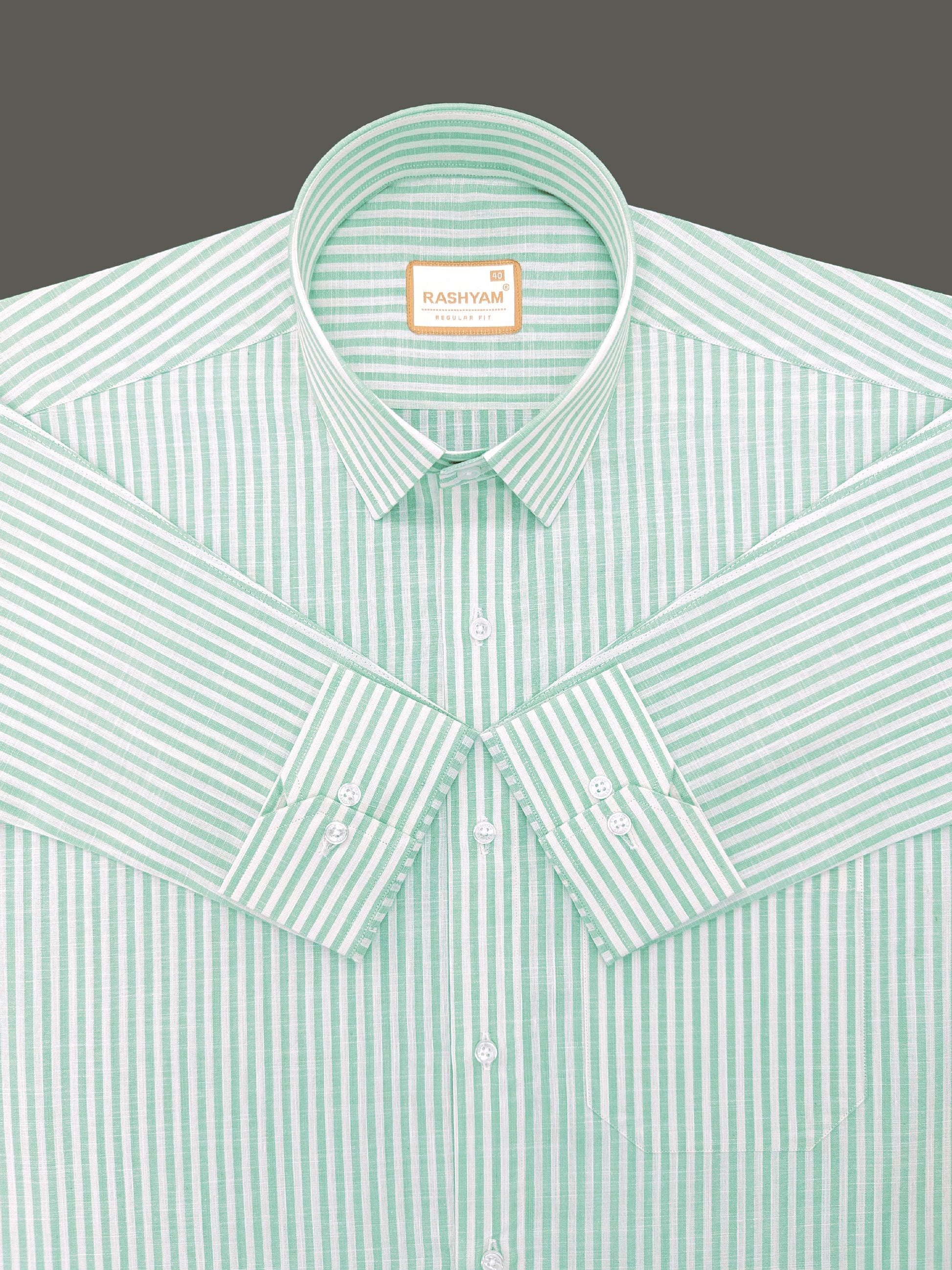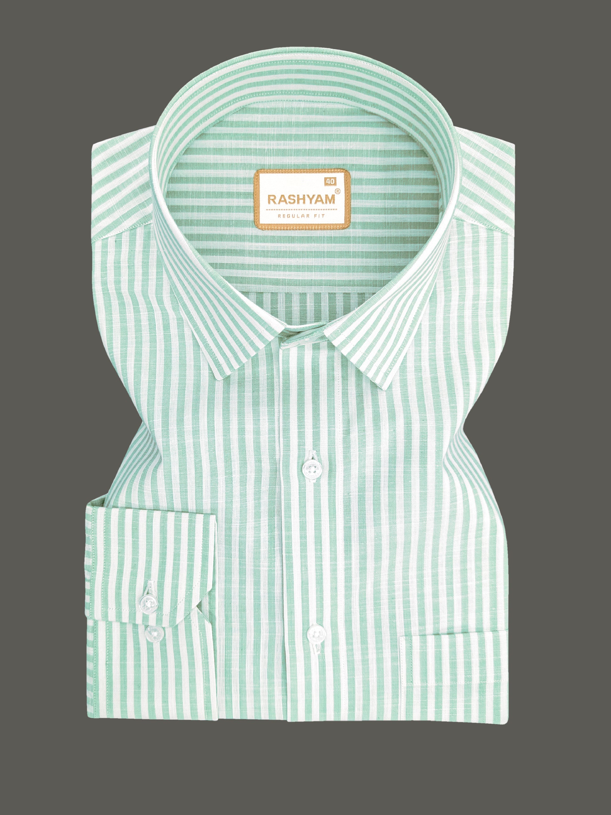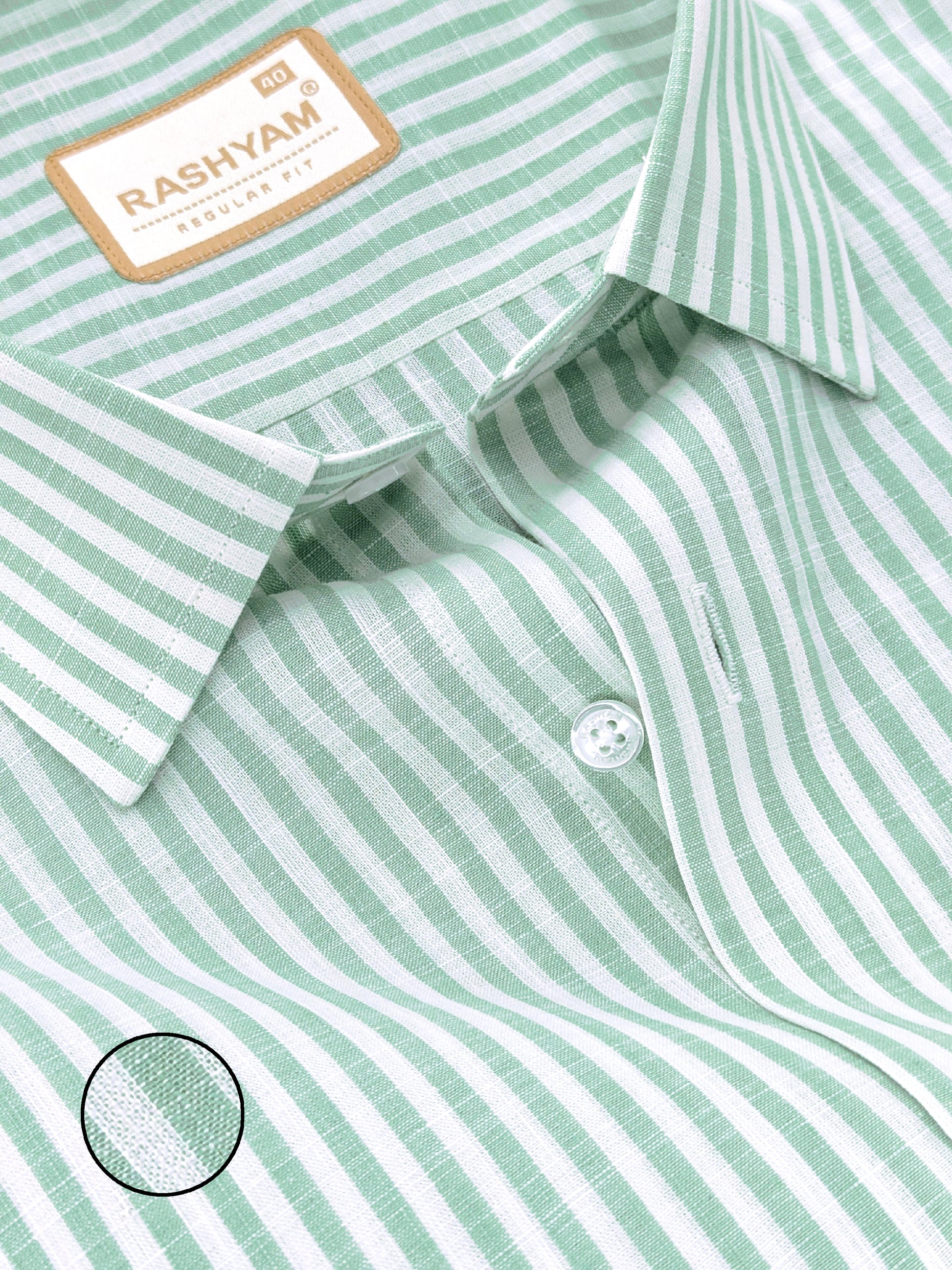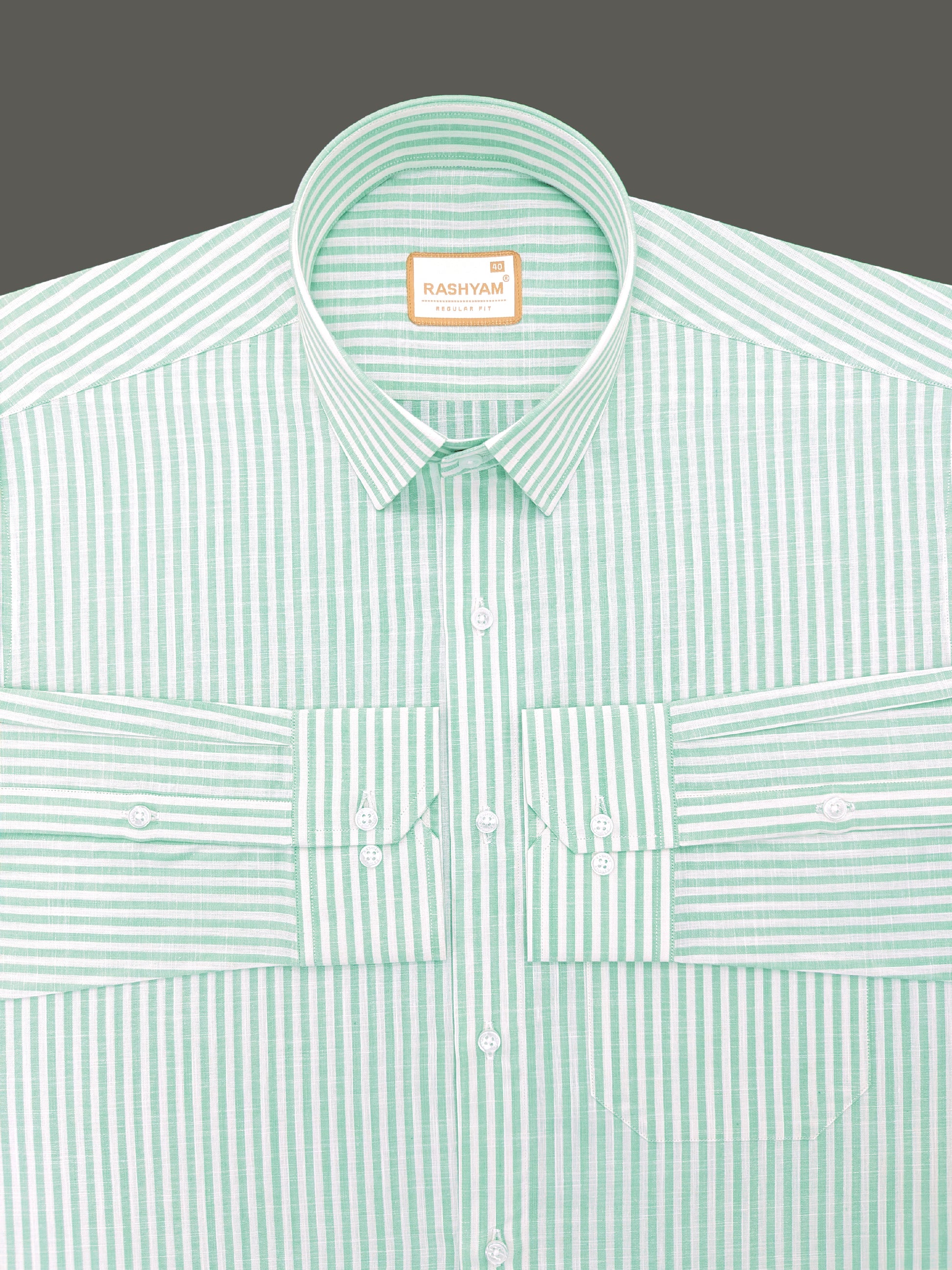 Mint Green Stripe On White Luxurious Italian Linen Shirt