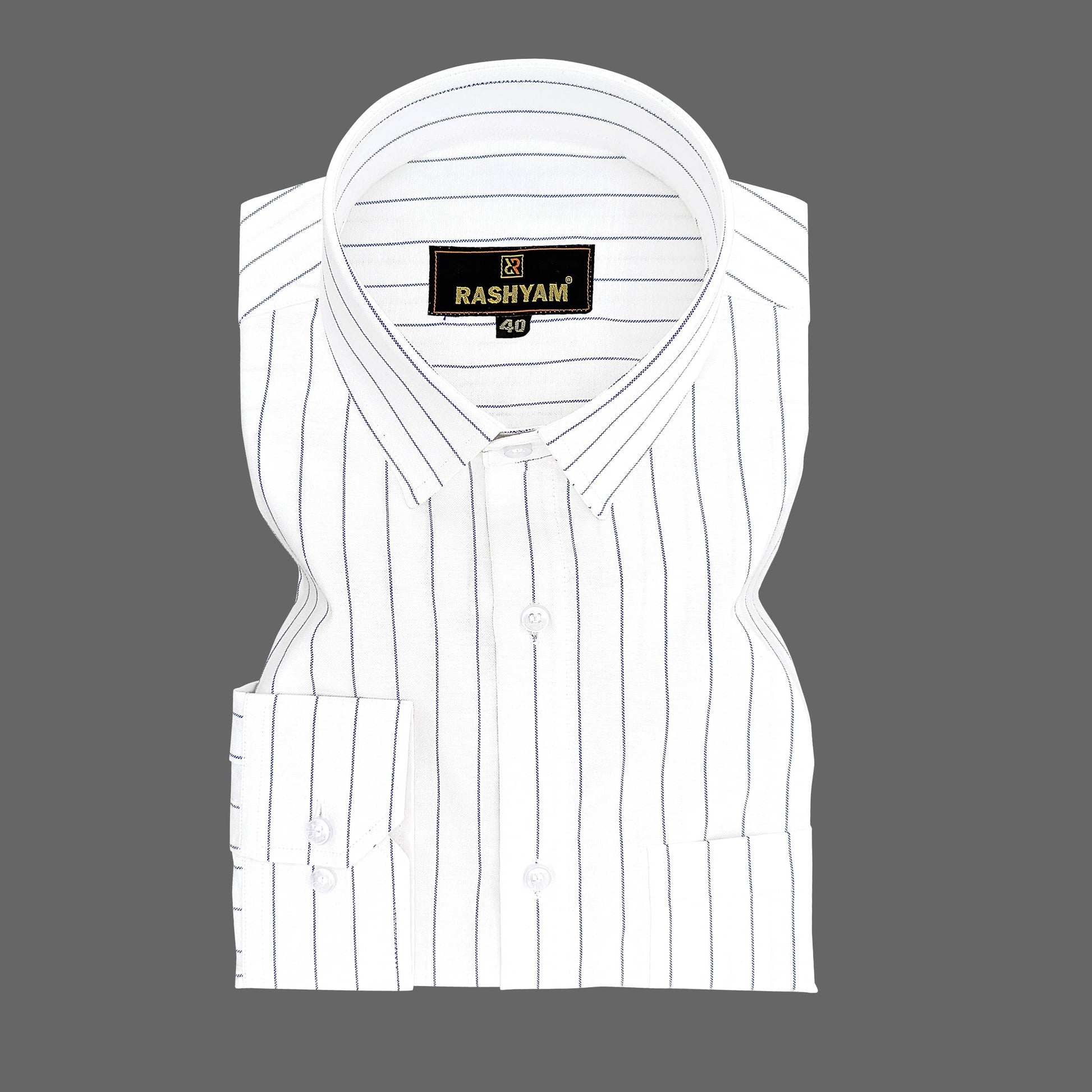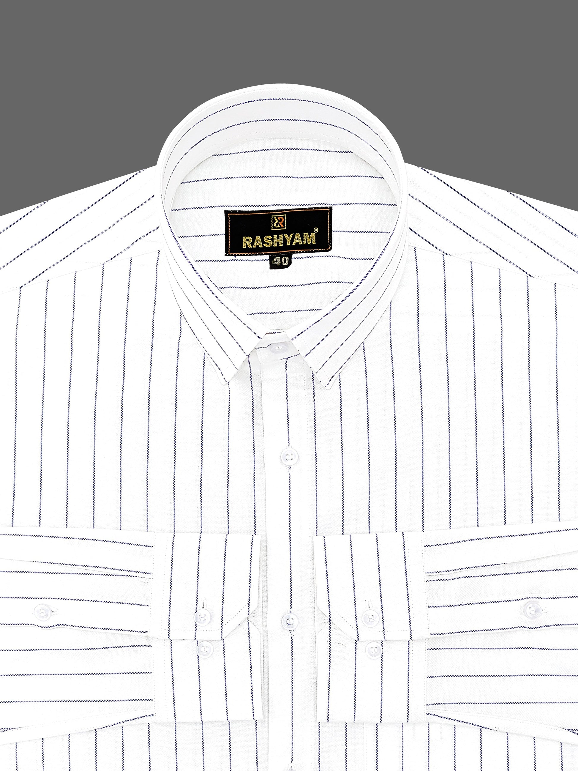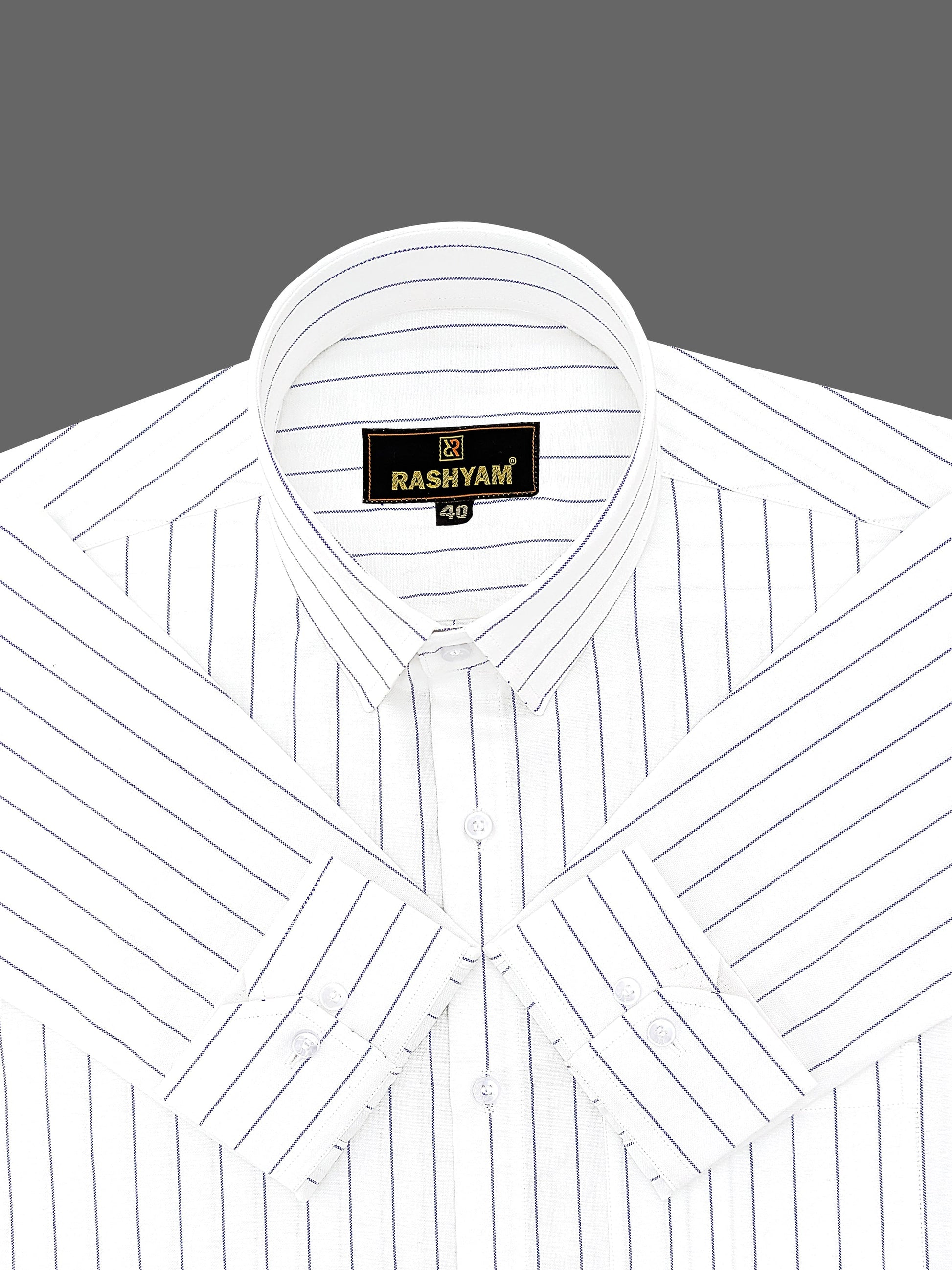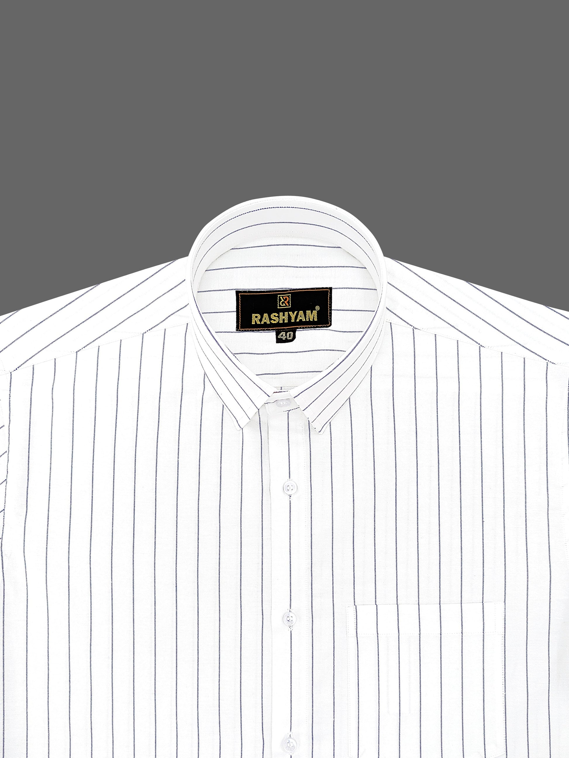Navy Stripe On White Luxury Premium Cotton Formal Shirt For Men
