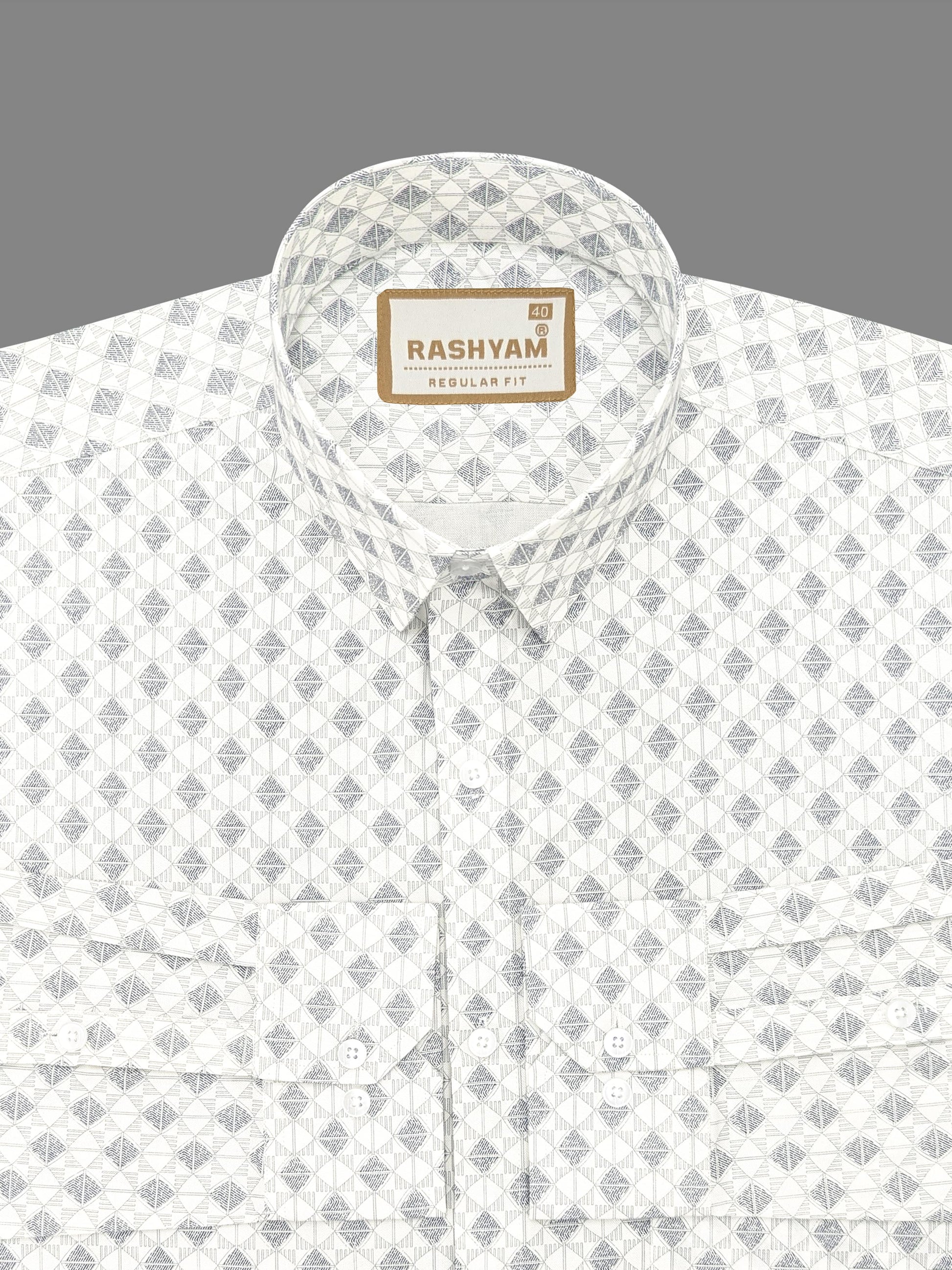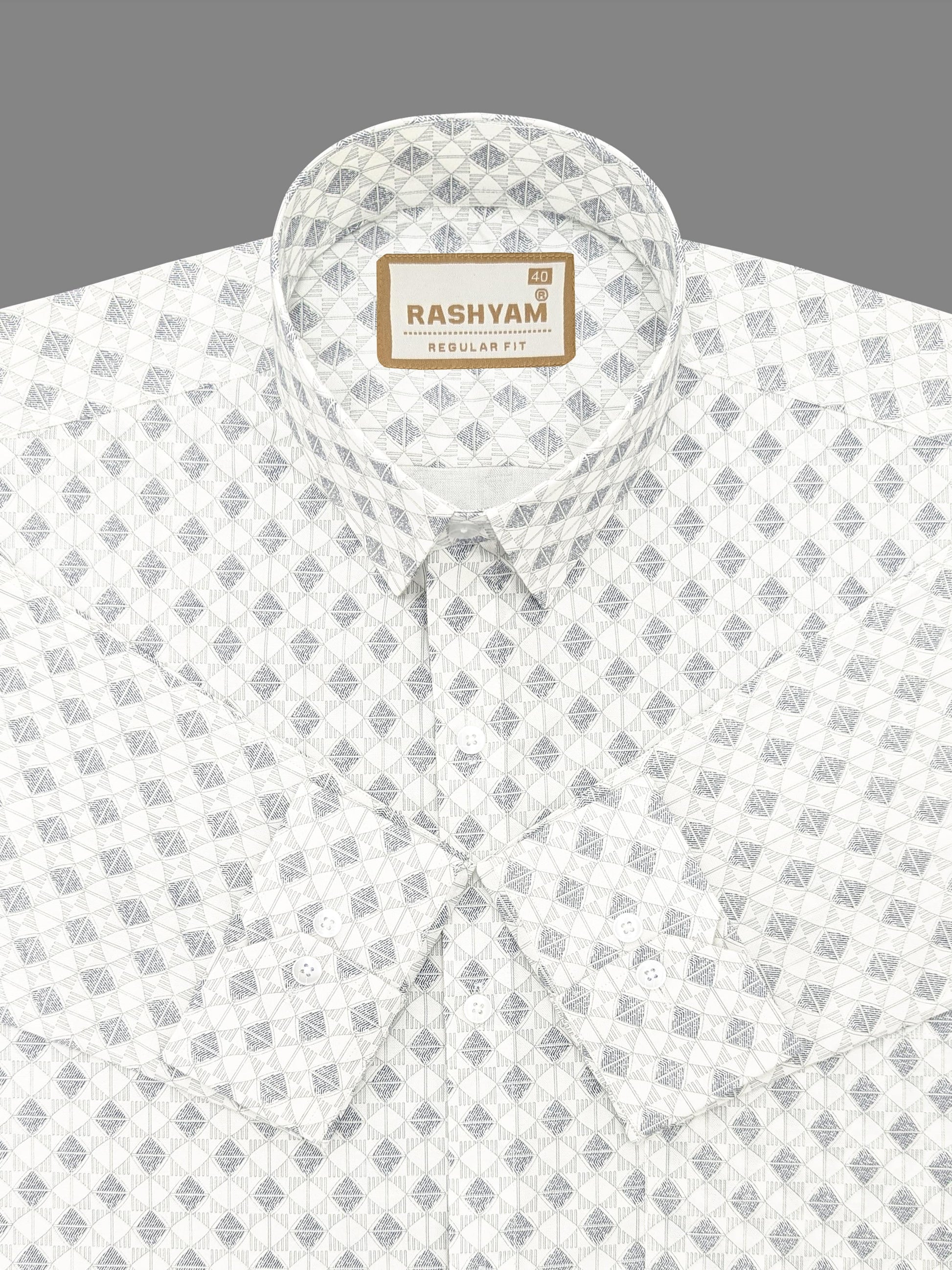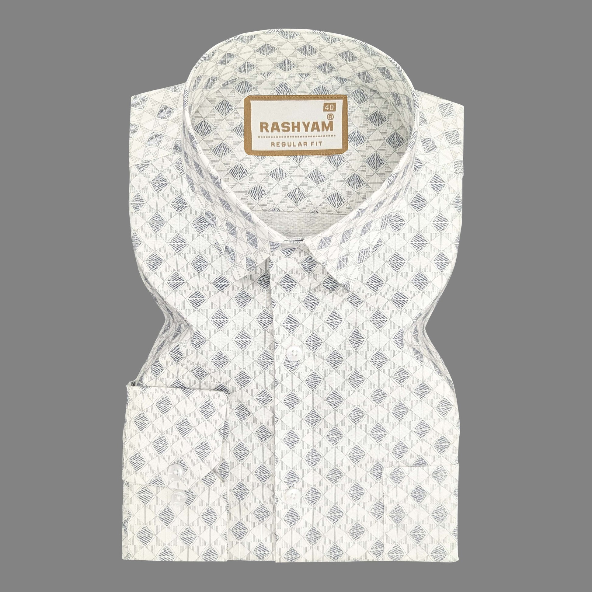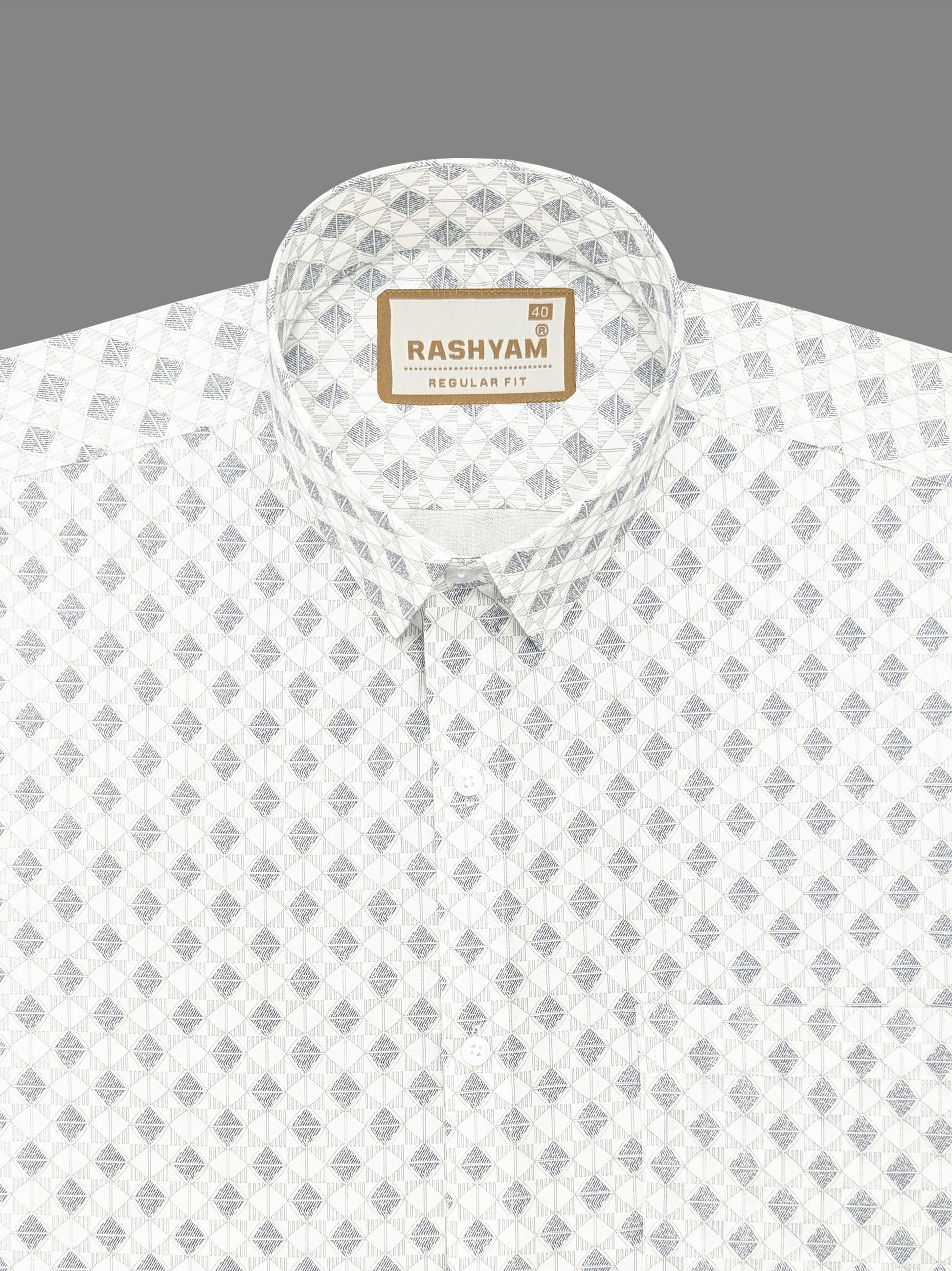 Pacentro Abstract Print On MintCream Formal Giza Cotton Shirt