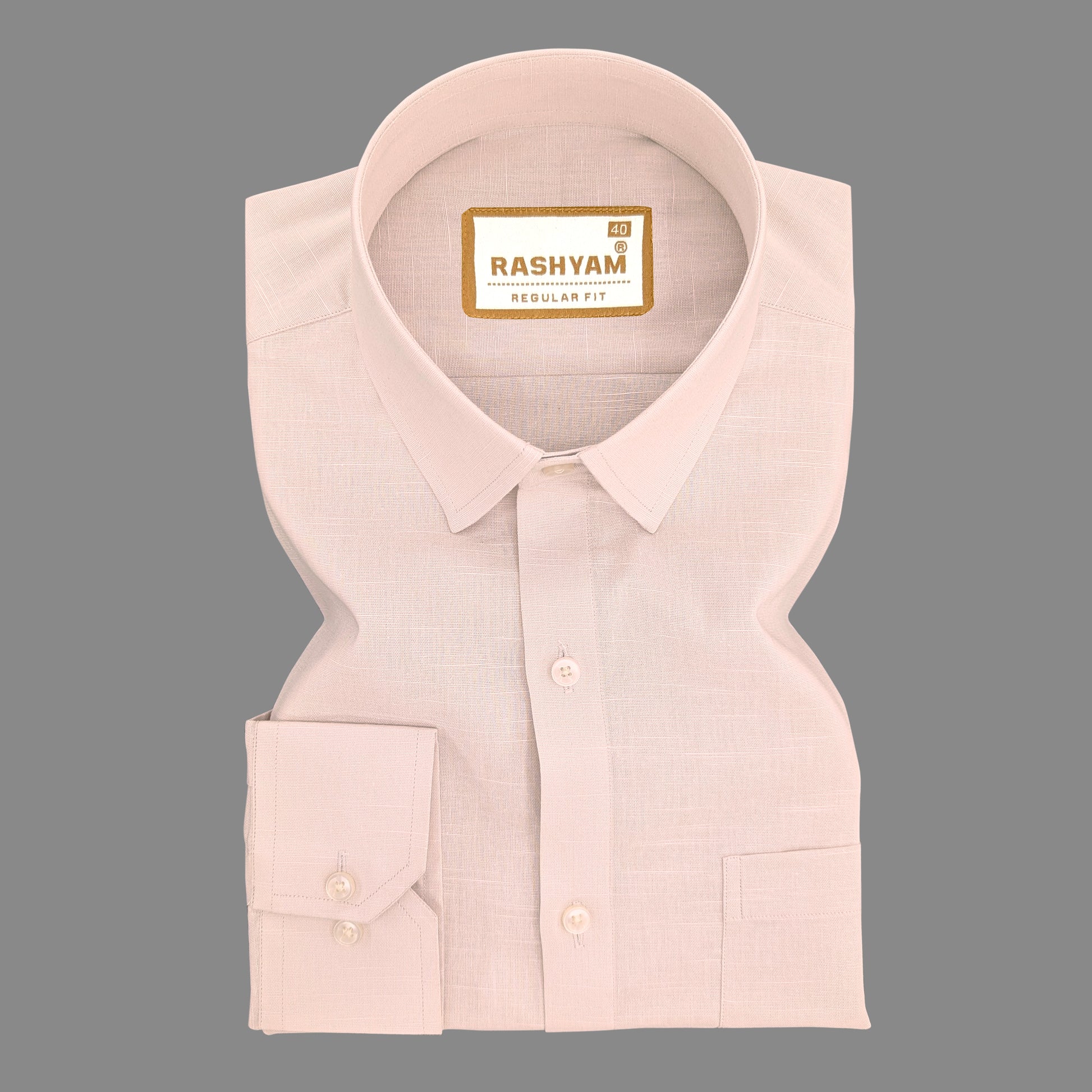 Premium Linen Cotton Bluish Light Line On Cream Shirt For Men