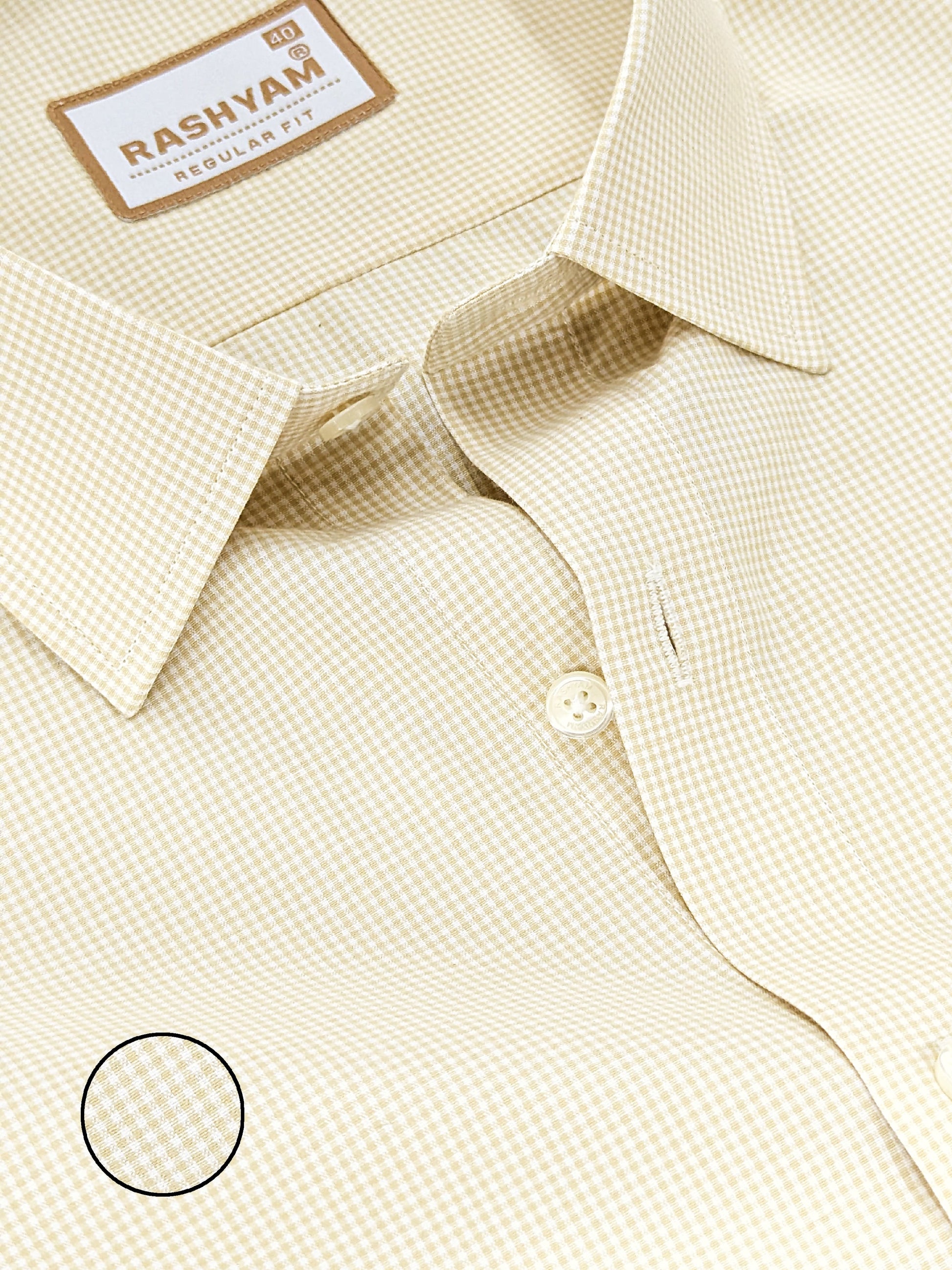 Portofino Premium Cotton Almond Gingham Checks Formal Shirt For Men