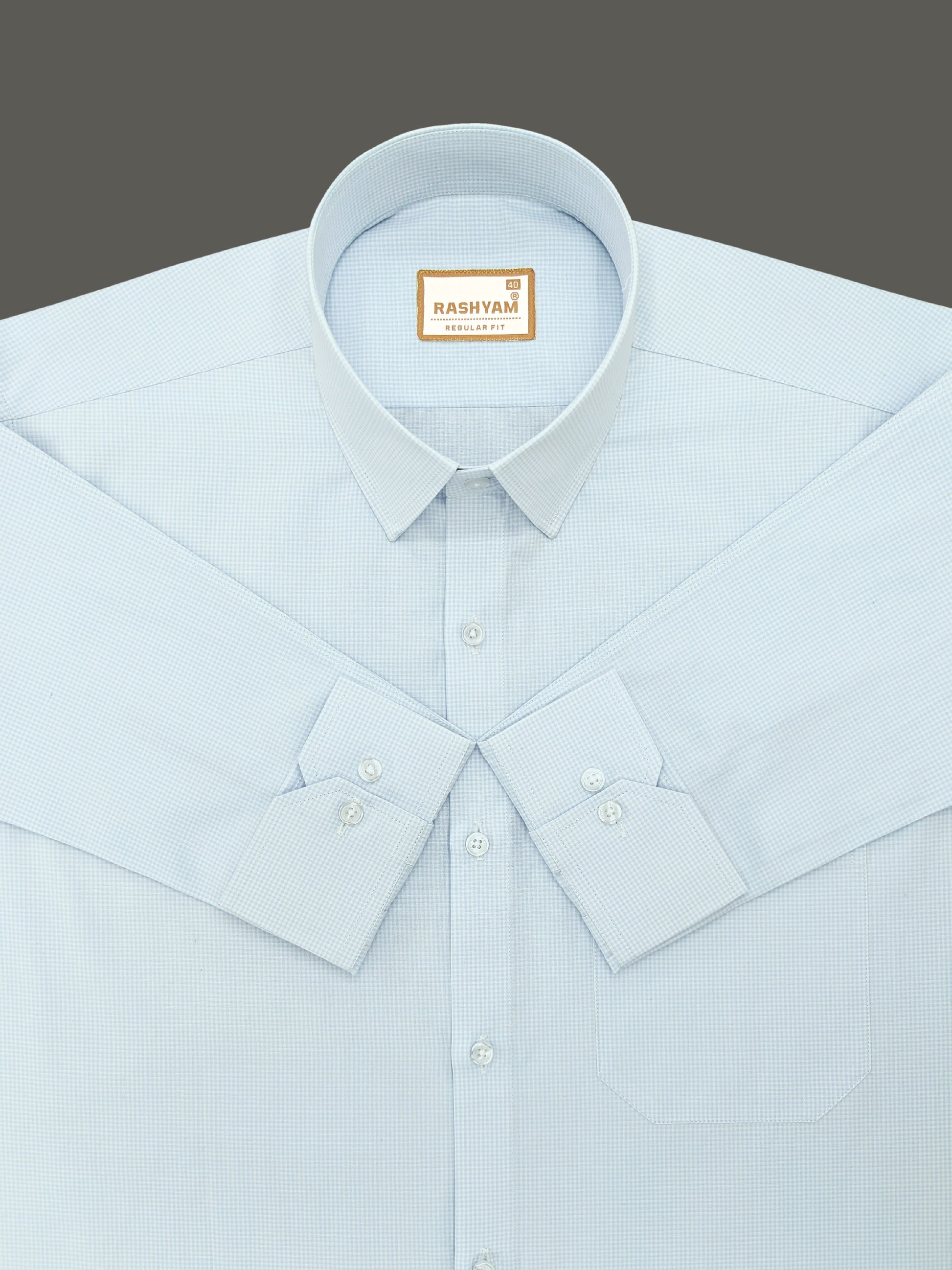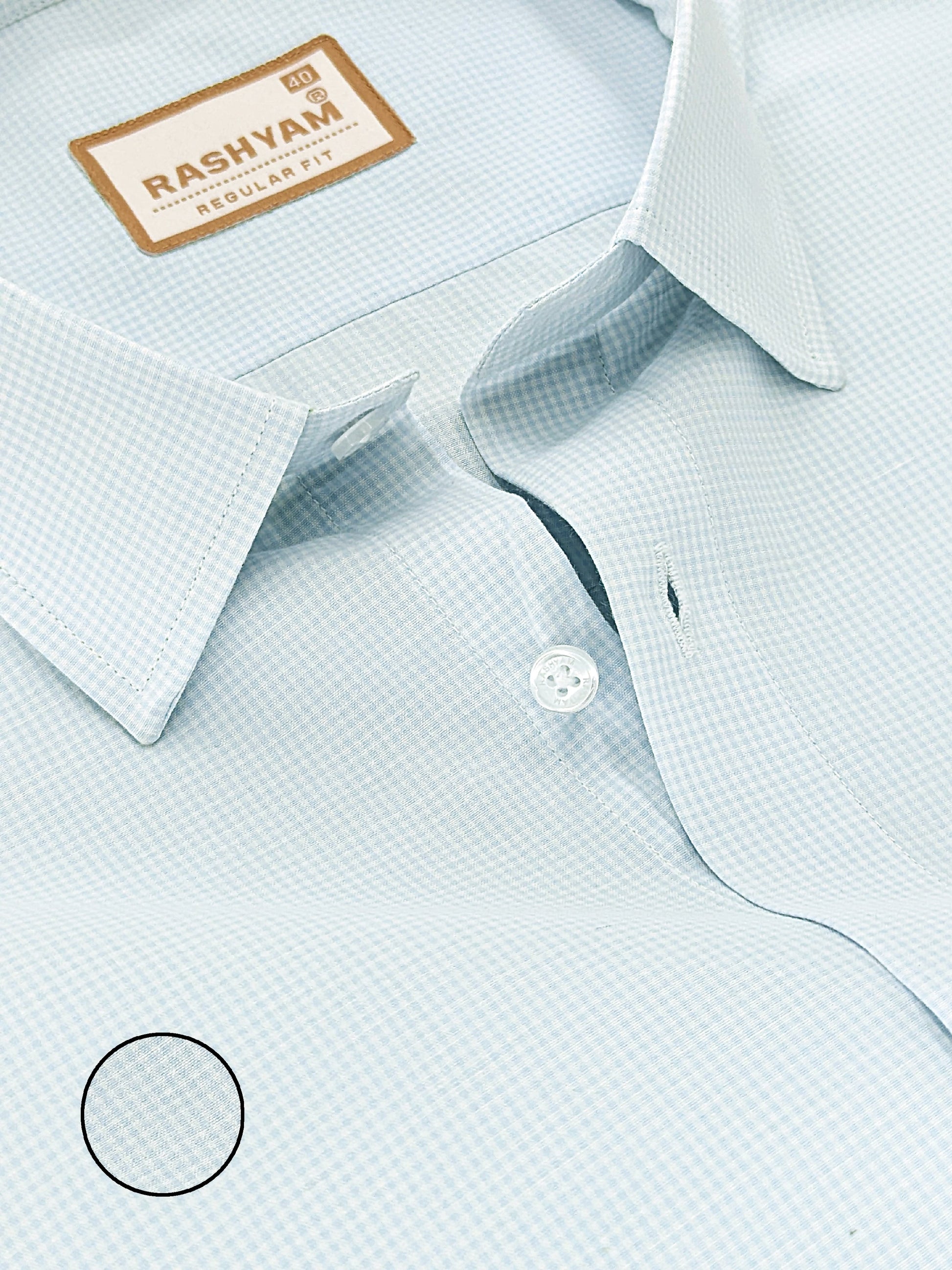 Portofino Premium Cotton Cyan Blue Gingham Checks Formal Shirt For Men