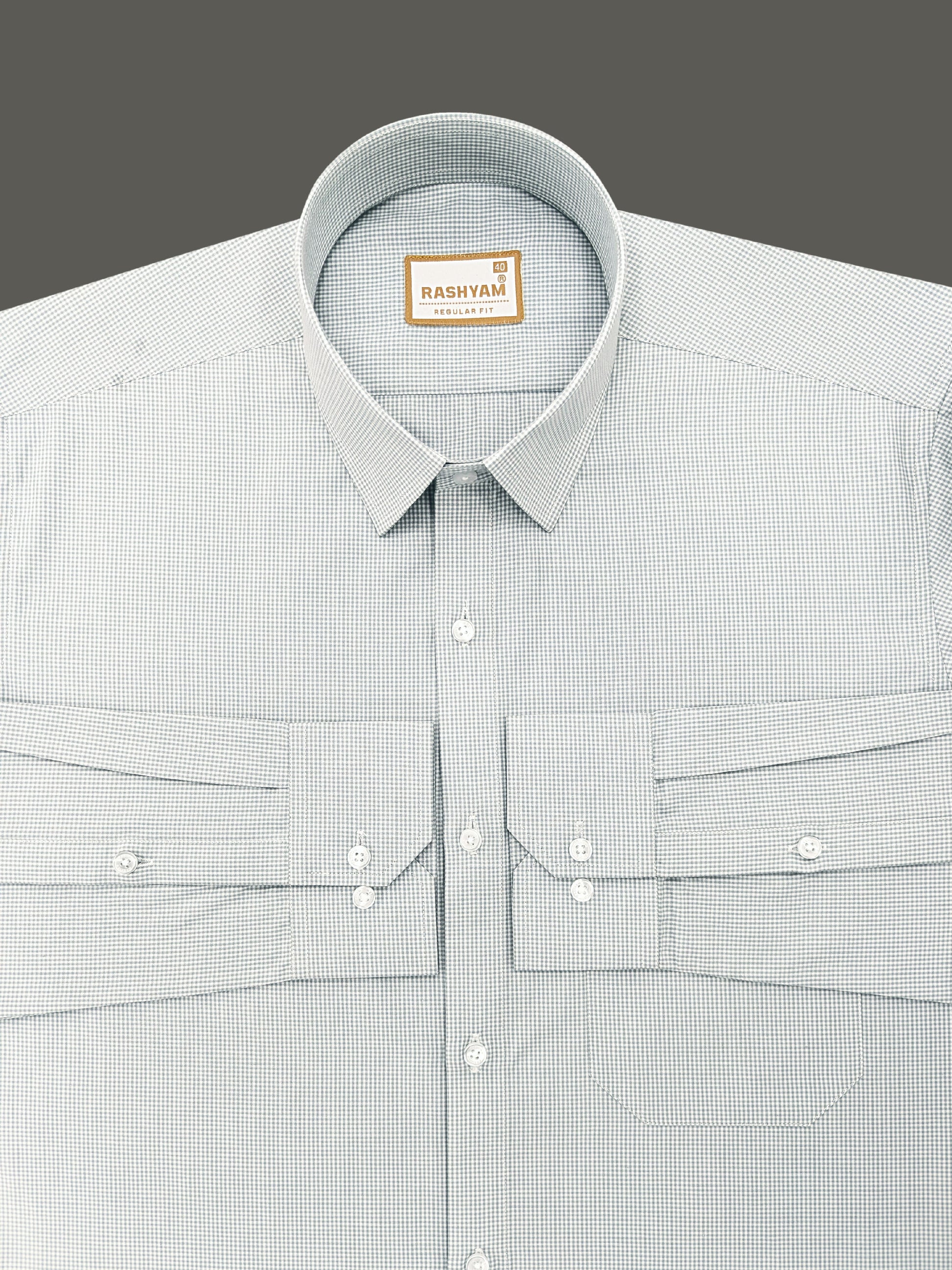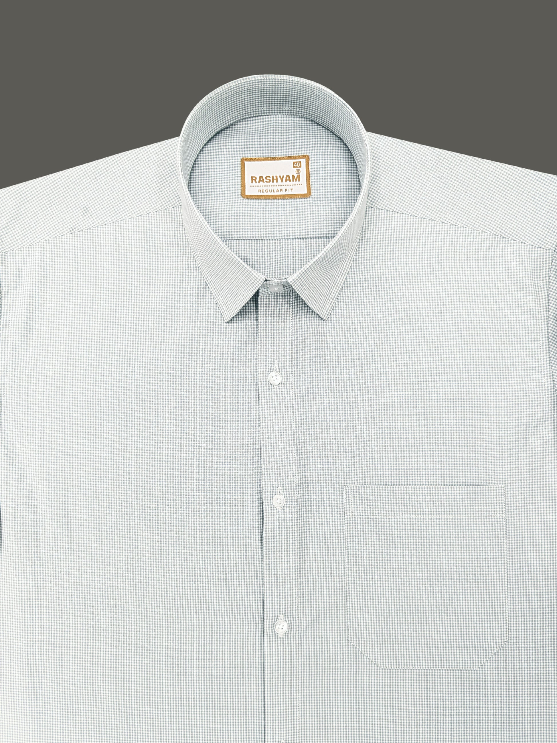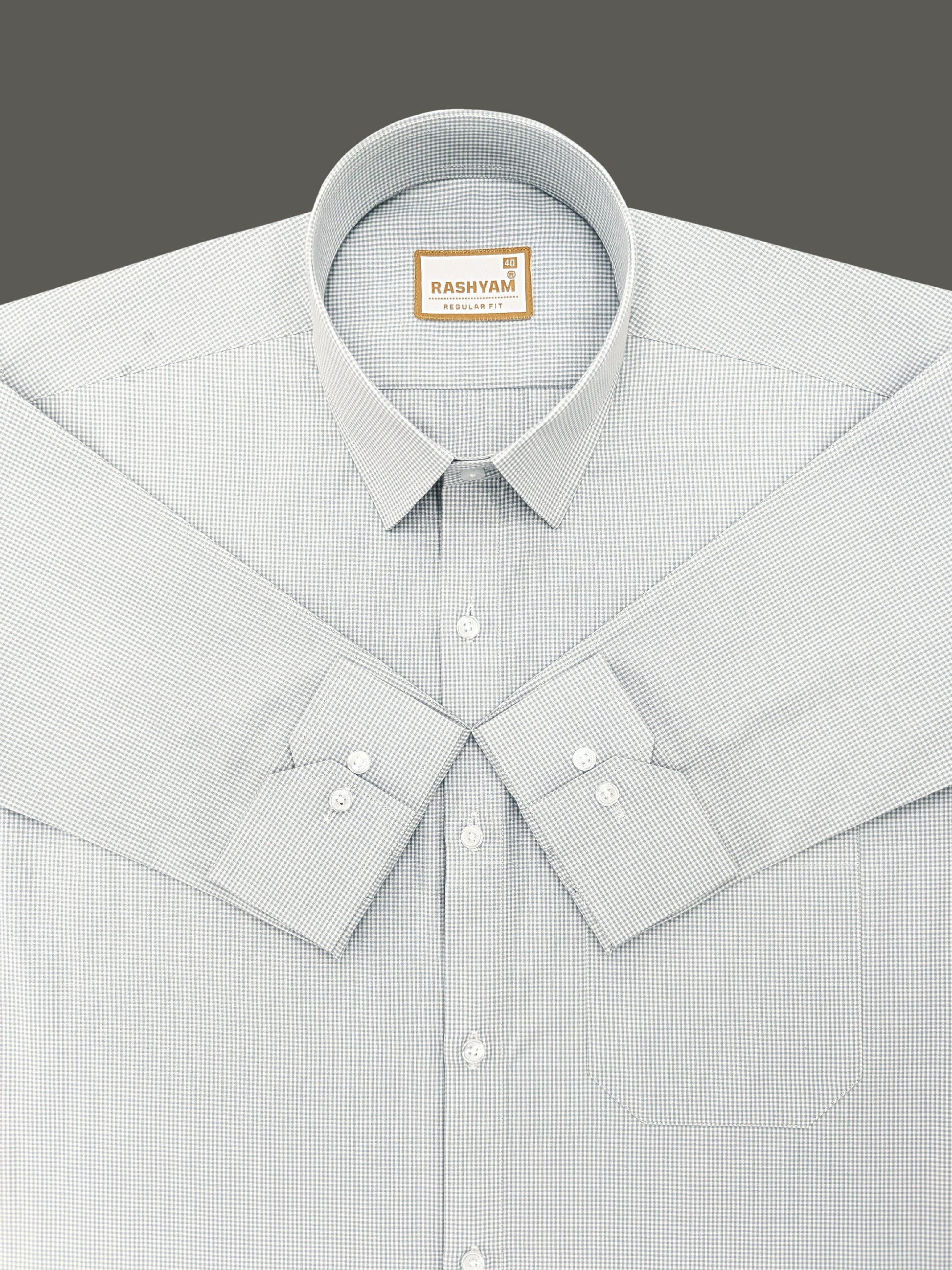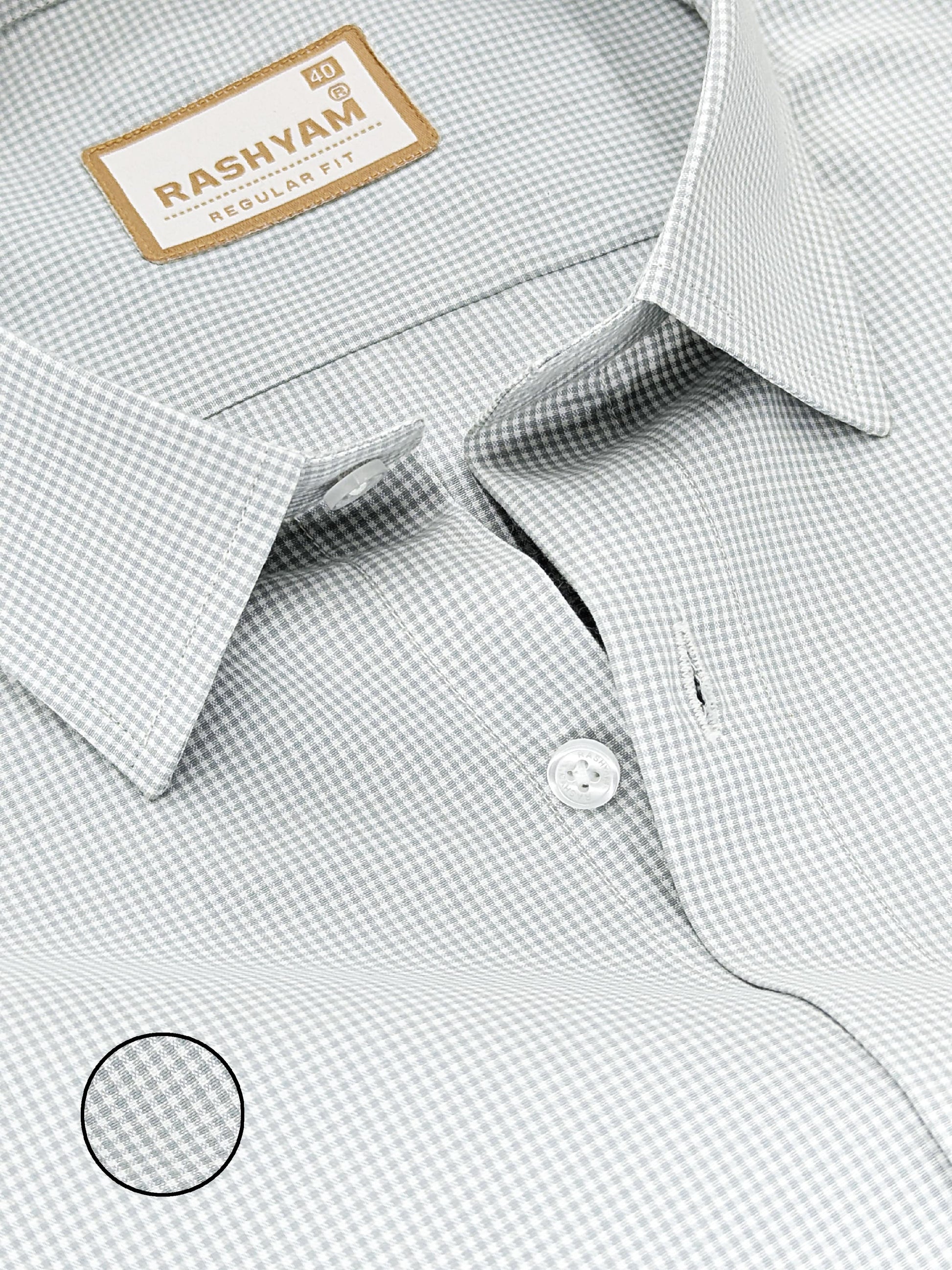 Portofino Premium Cotton Light Grey Gingham Checks Formal Shirt For Men