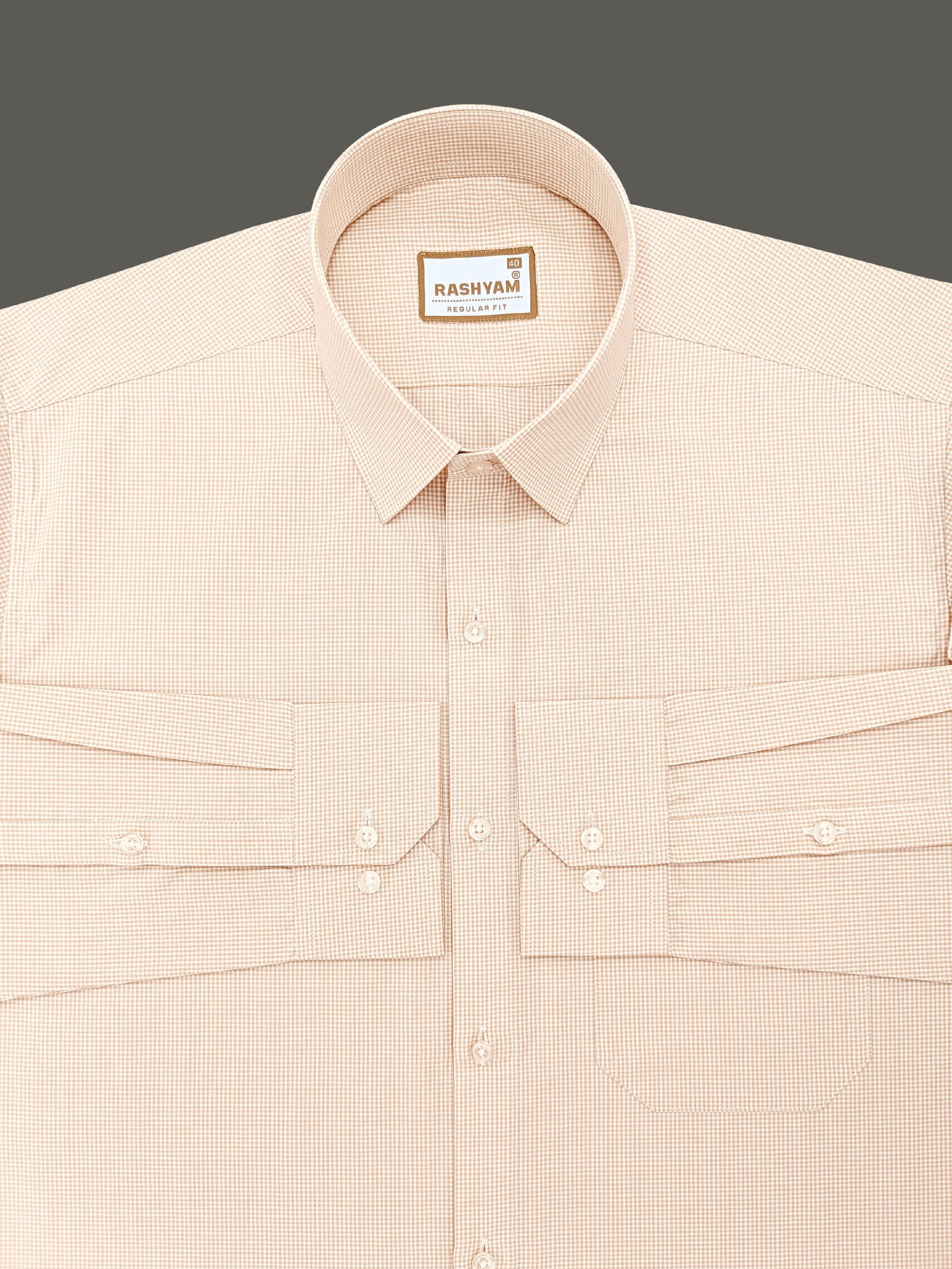 Portofino Premium Cotton Persian Orange Gingham Checks Formal Shirt For Men